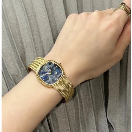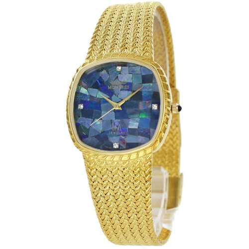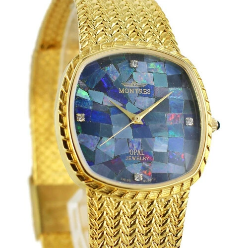 Montres Watch Men's Natural Stone Opal Dial Blue Stainless Steel Gold Band Used