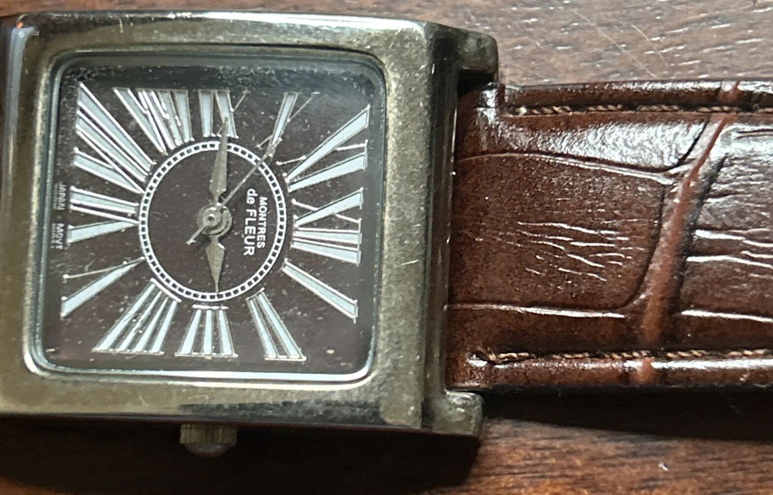 Montres de Fluer 011170 Womens Square FBlack Face Working Orig Leather Strap