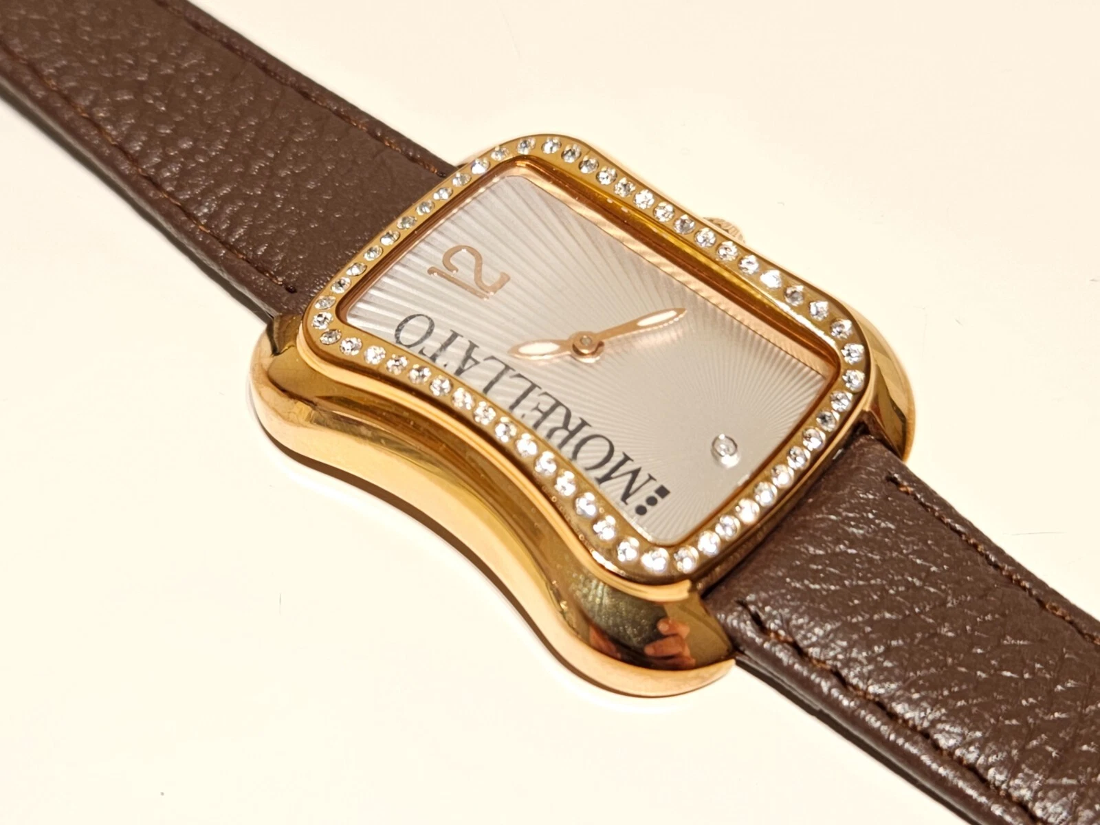 RETRO LUXURY PINK GOLD MEN'S LADIES QUARTZ WATCH"MORELLATO" WITH NATURAL DIAMOND