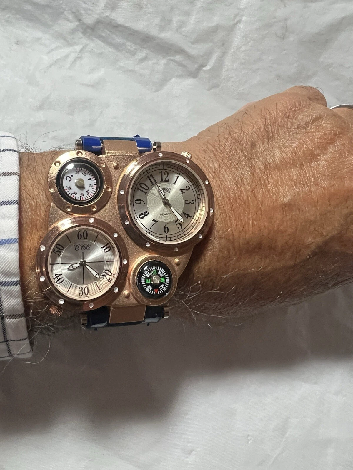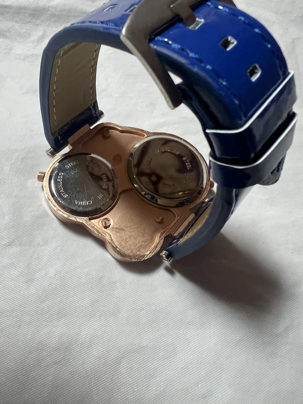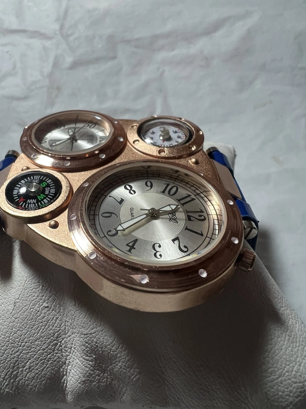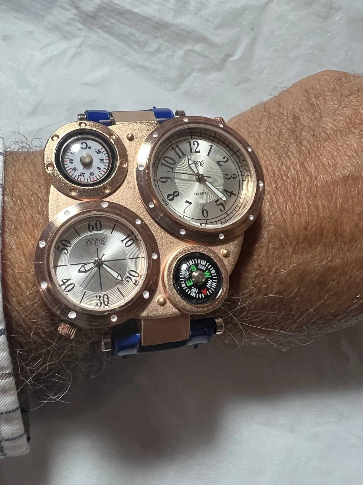 CCe,TWO Zone, more functions,rose Gold,NEW Battres, blue nylon band, men’s watch