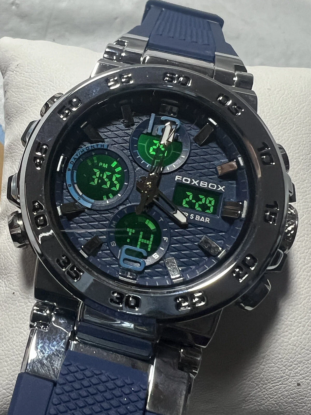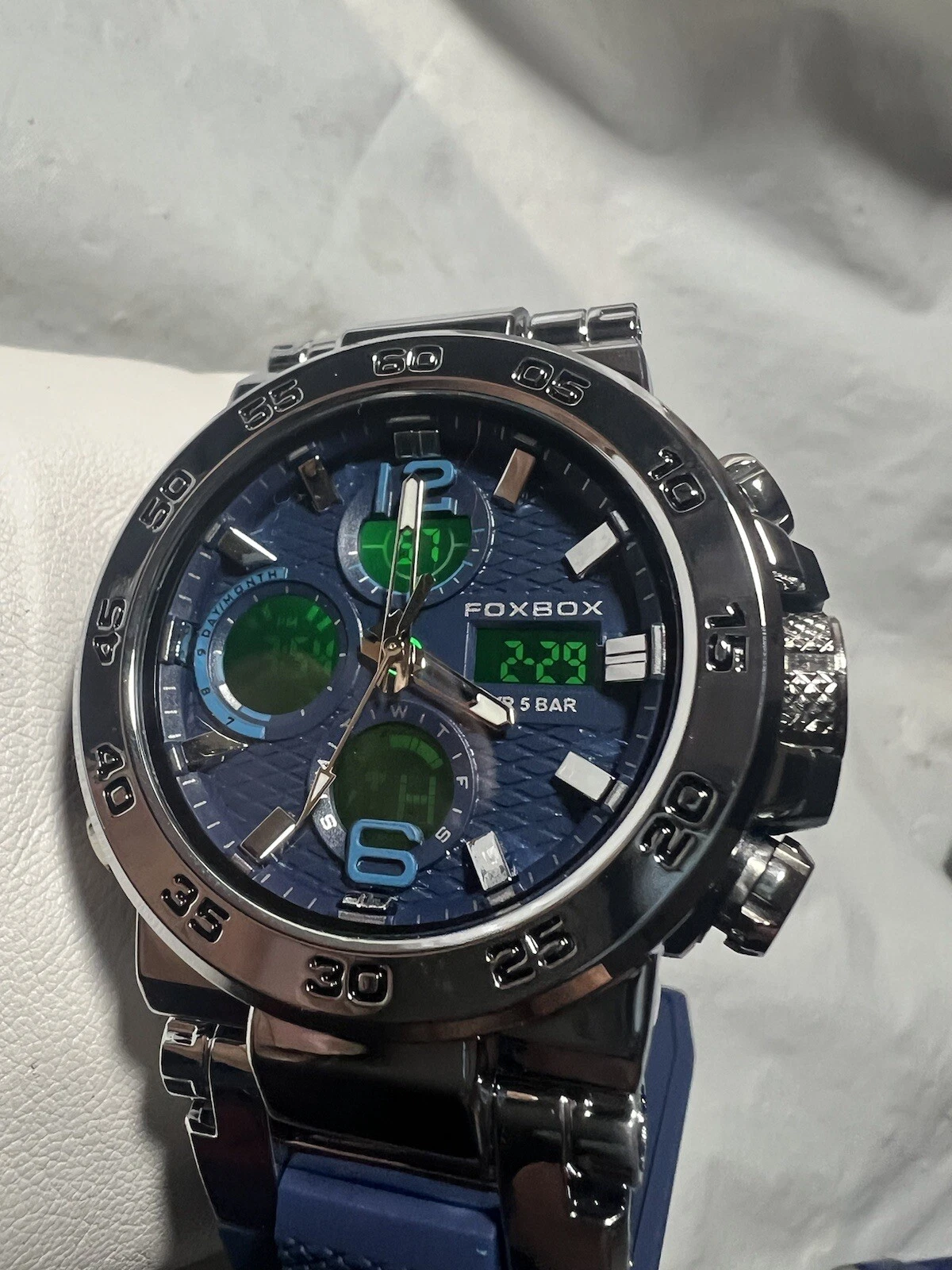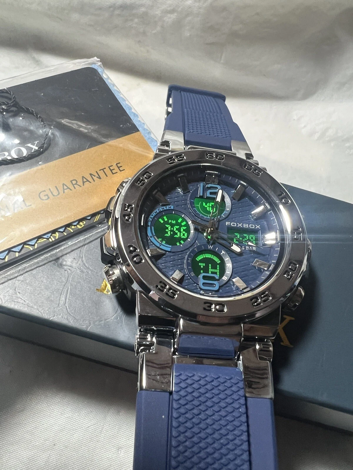 FOXBOX Digital And Analog new design, WR50M, Chronograph Date Alarm Light&more