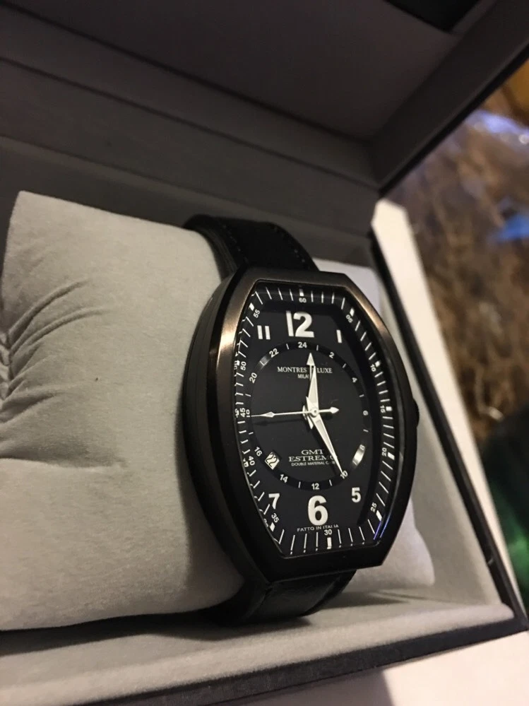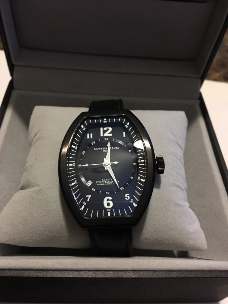 Montres De Luxe Watch Estremo gmt Ladys Steel black Dial Date new