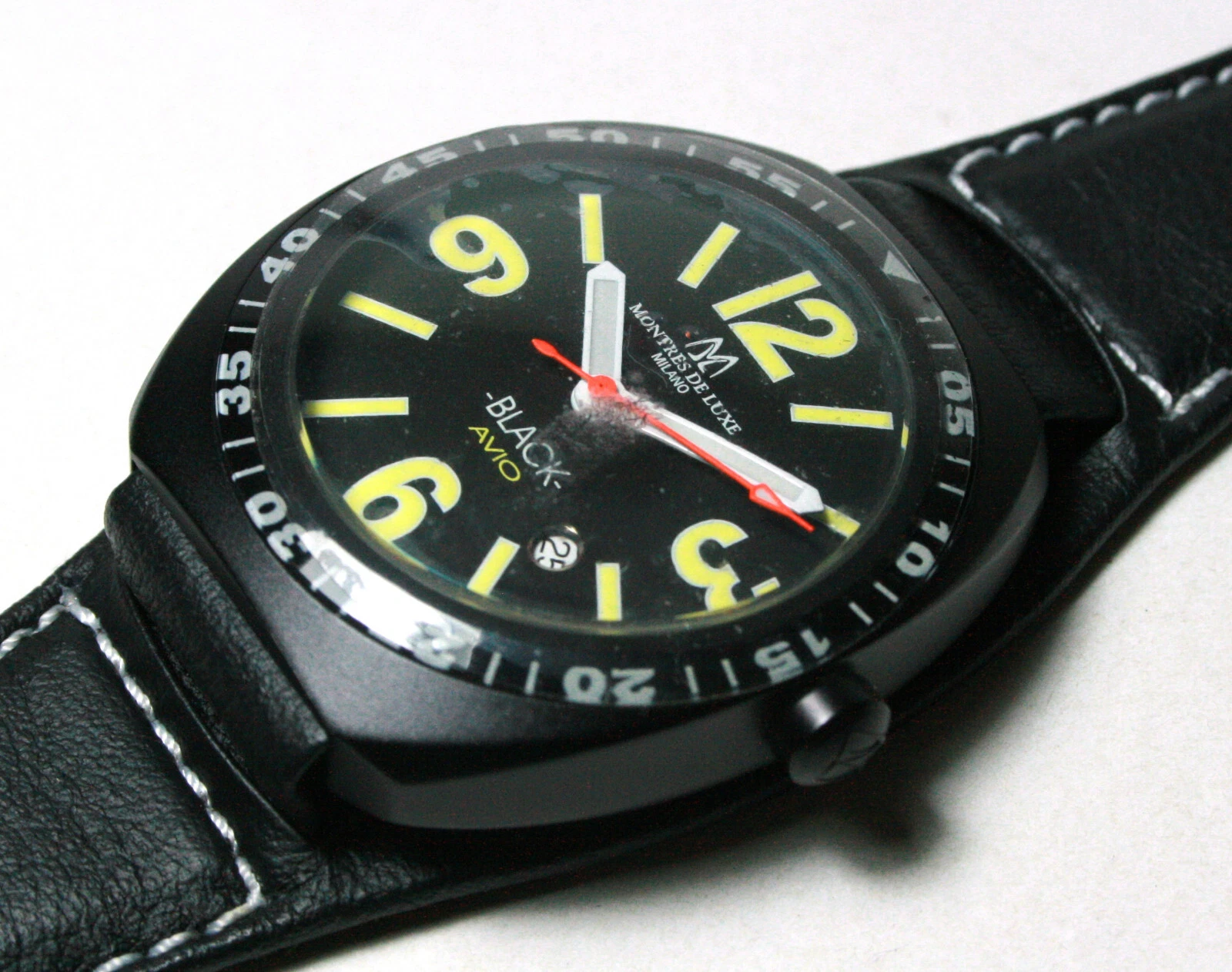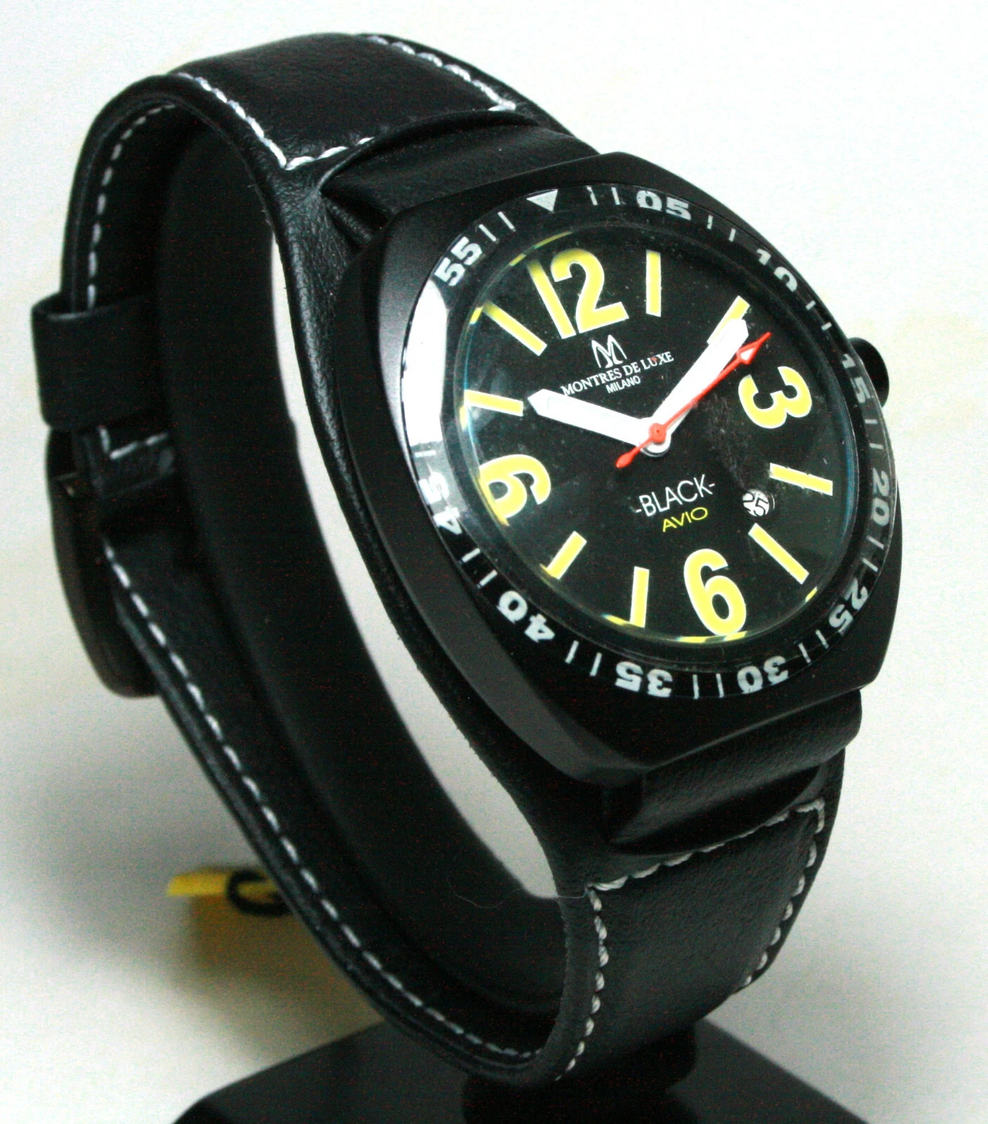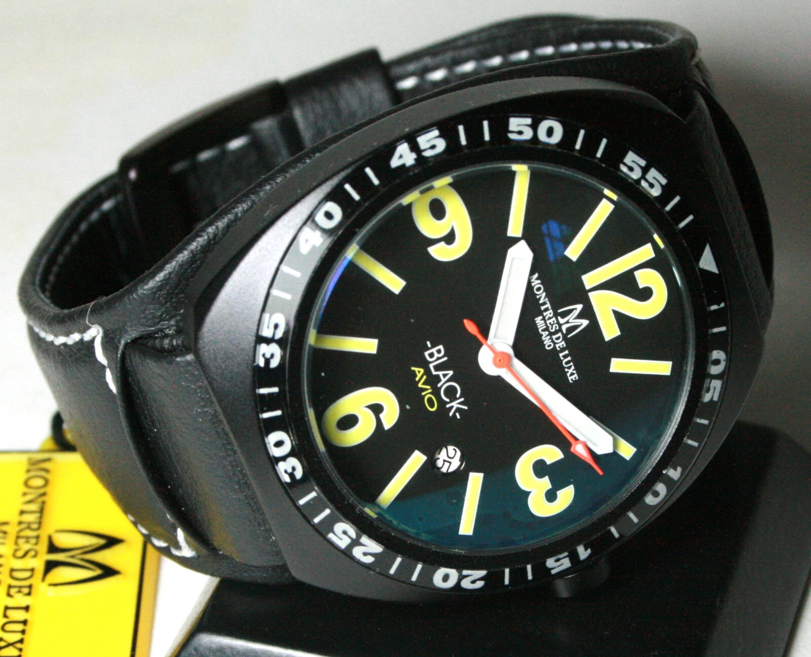 MONTRES DE LUXE, BLACK AVIO, 3HAND/DATE, 40MM, 5ATM