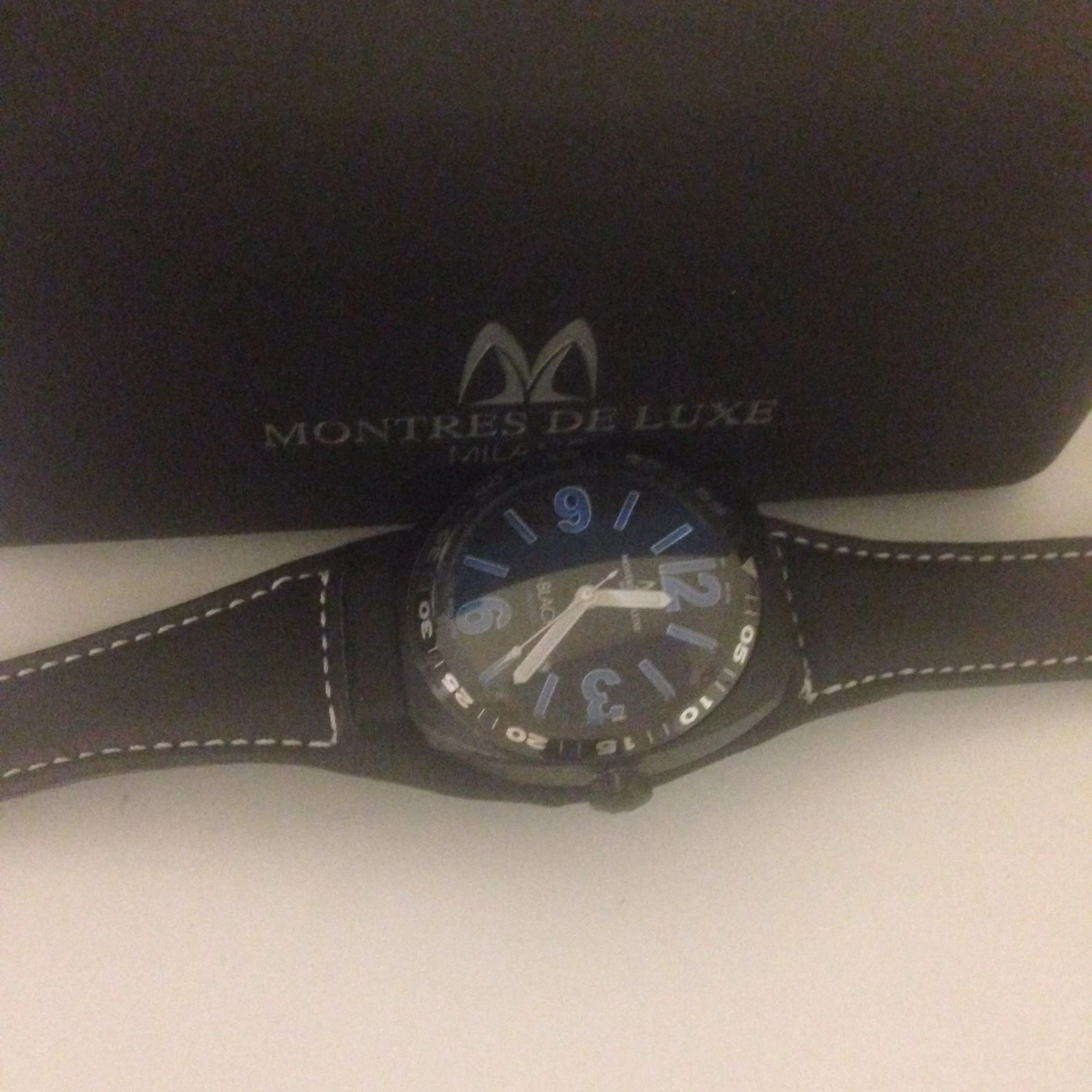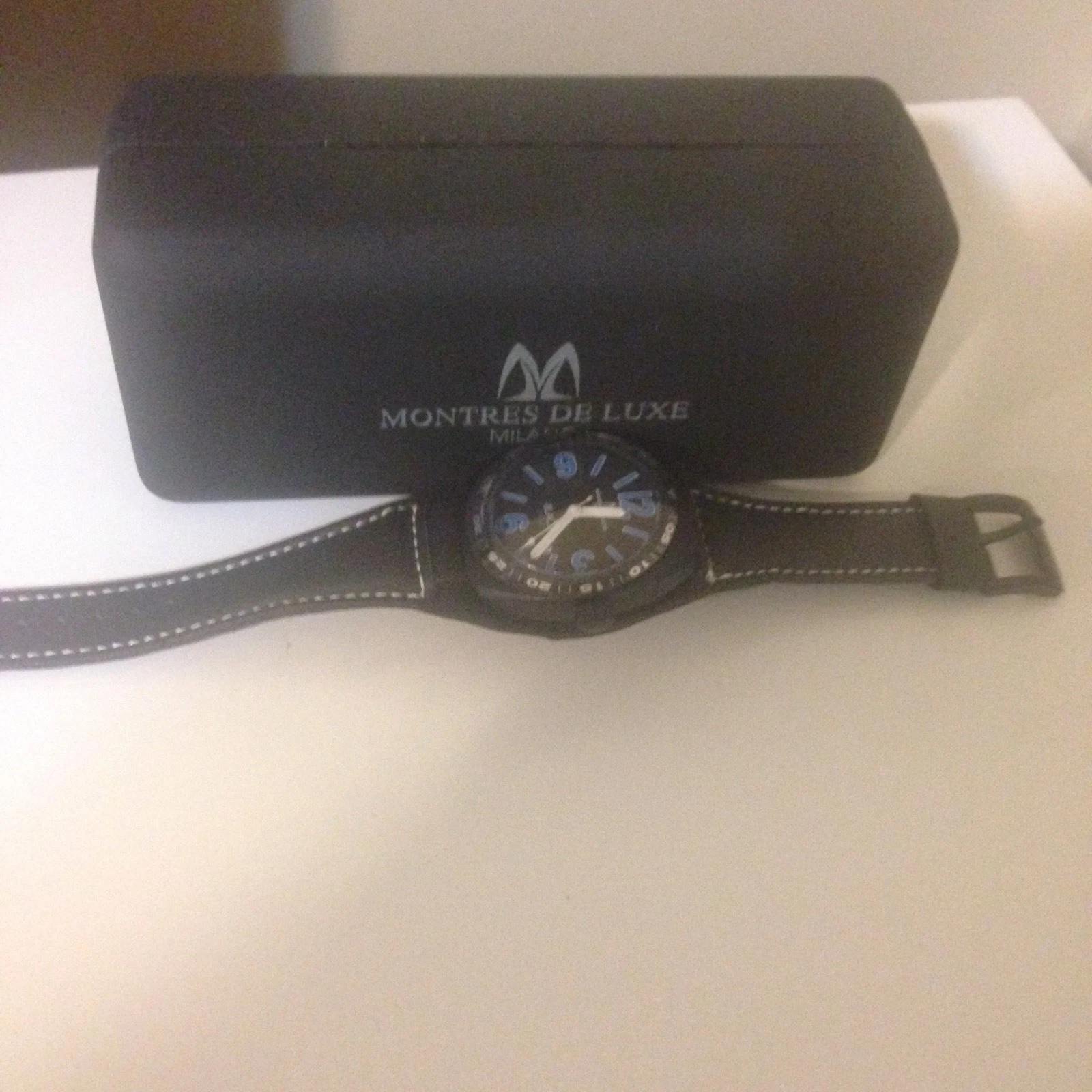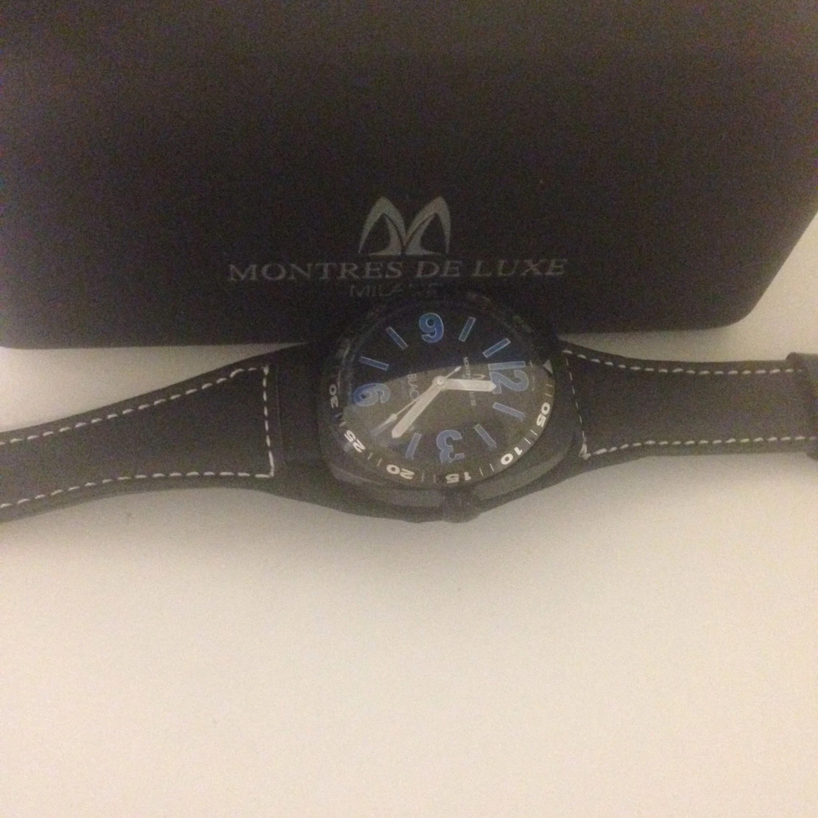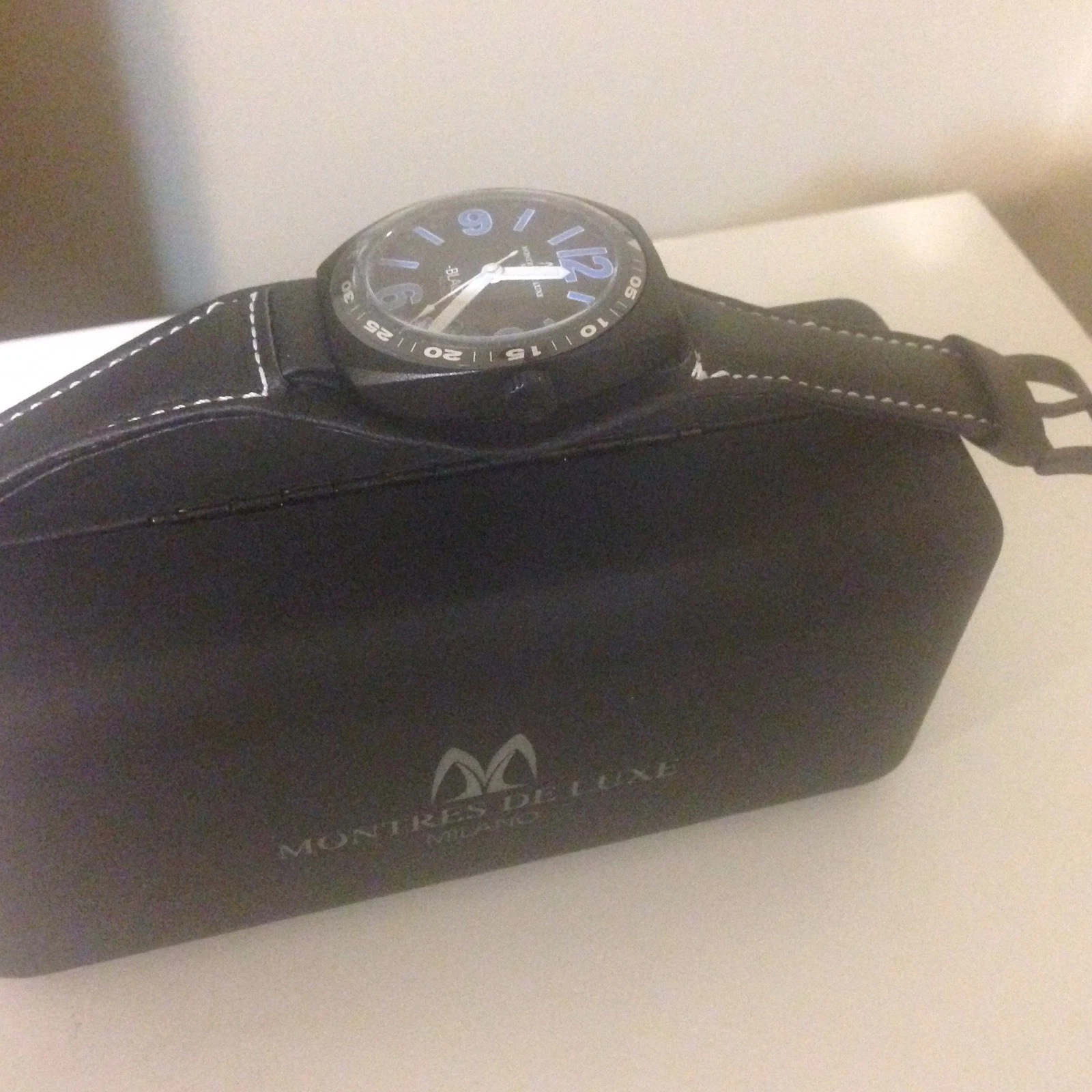 Montres de Luxe Men's Avio Black Luminous Leather Watch new