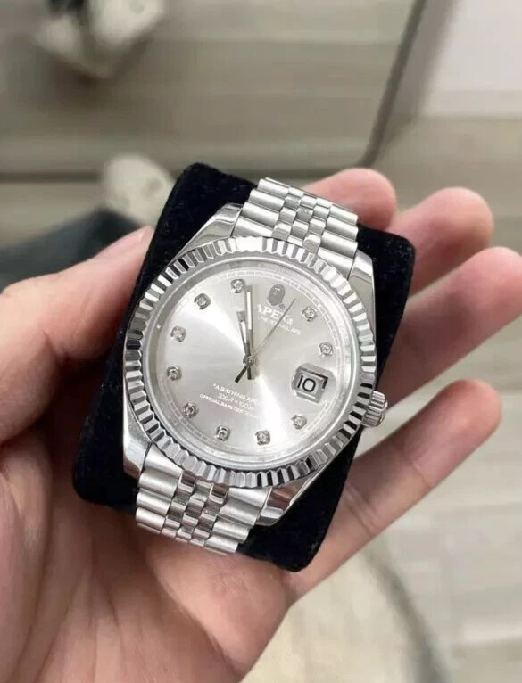 A Bathing Ape Bapex Type 6 Date Just Silver Men's Watch Working Mint