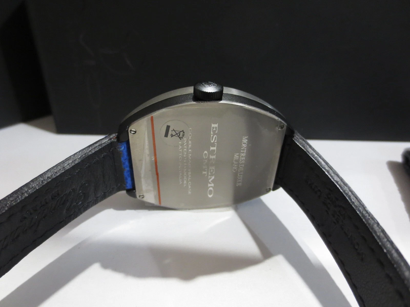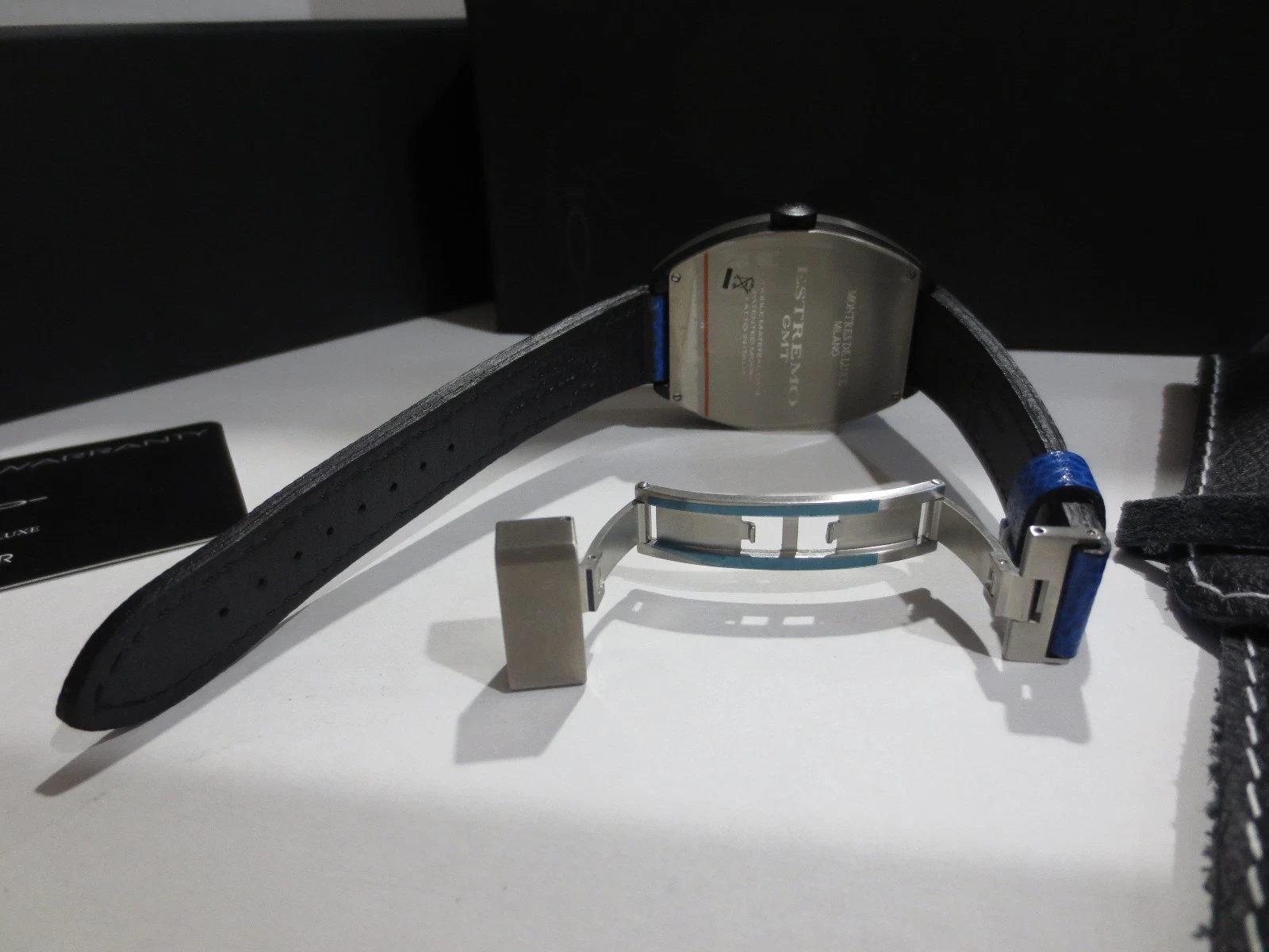 Montres De Luxe Men's EXN 9601 Estremo Titanium Blue Lizard Leather Date Watch