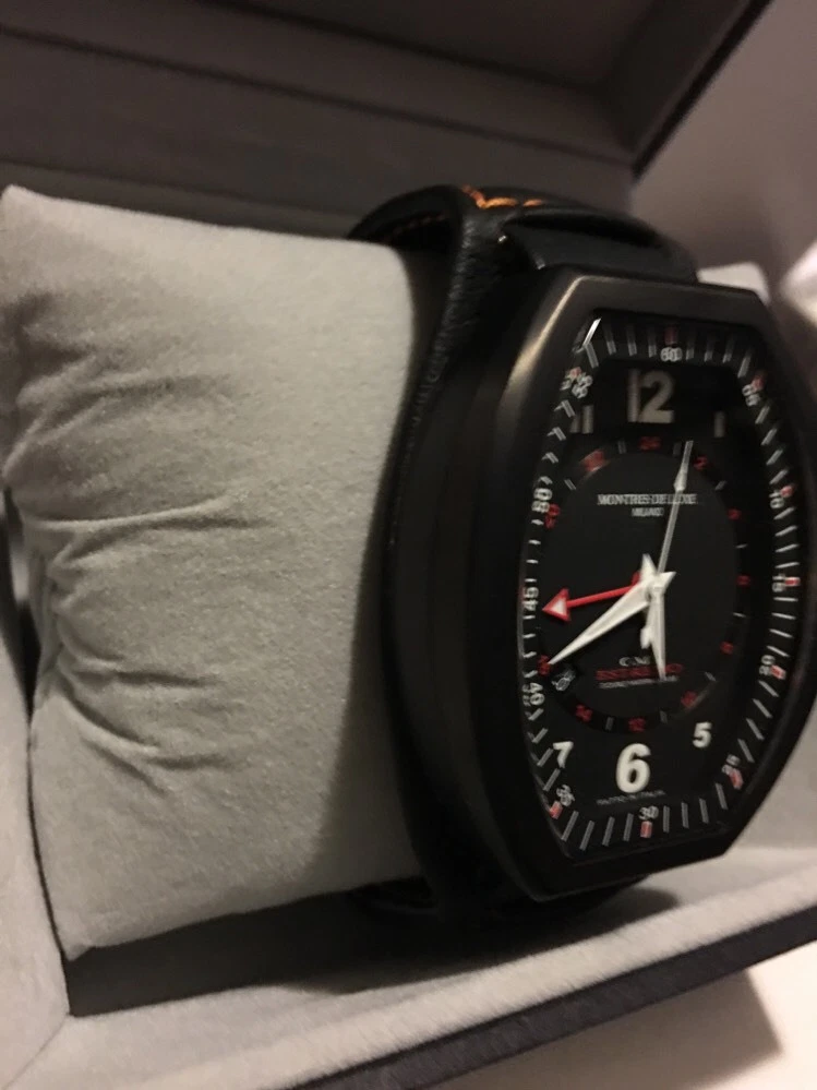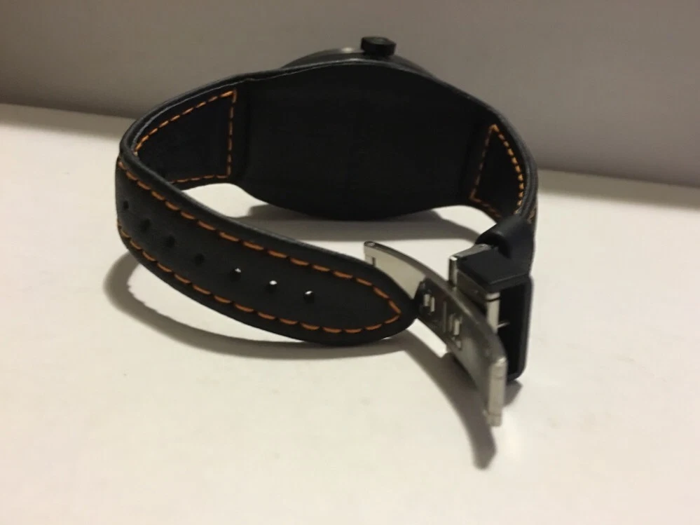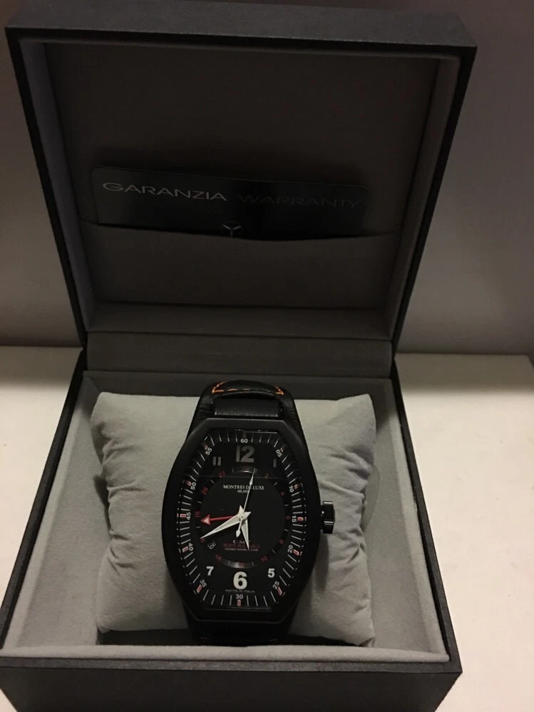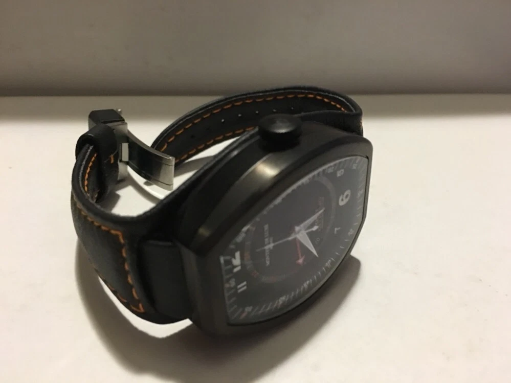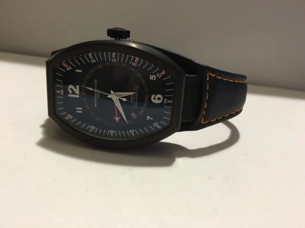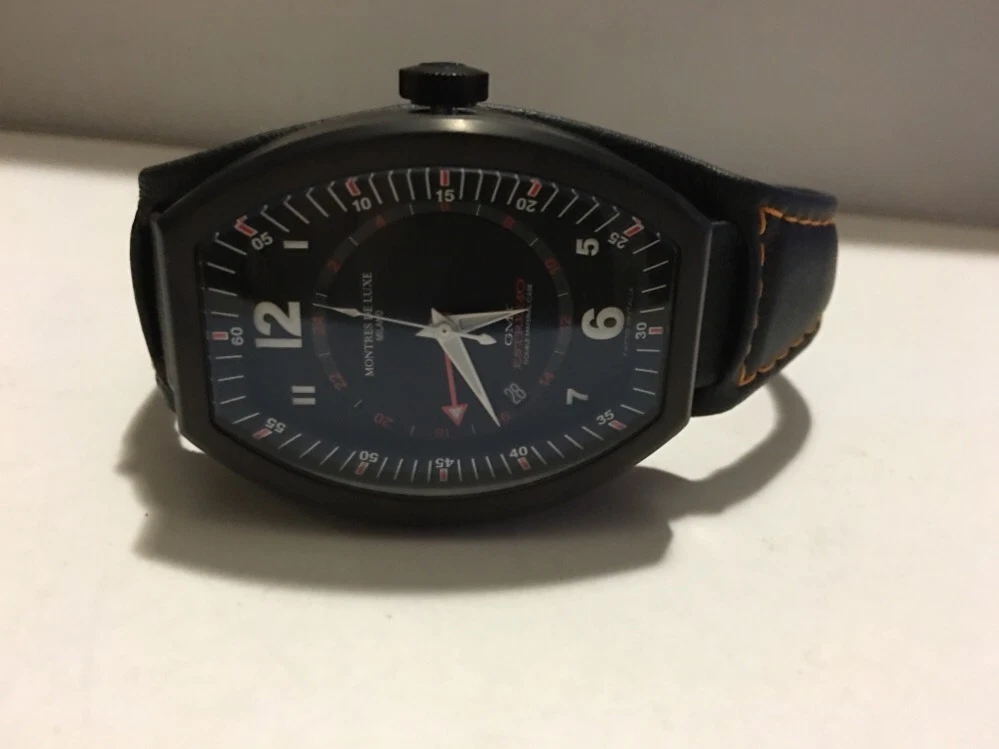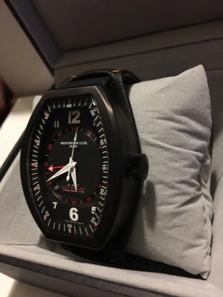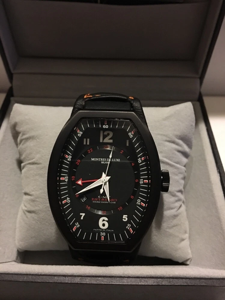 Montres De Luxe Mens GMT Estremo Black white orange Tonneau Leather Watch NEW