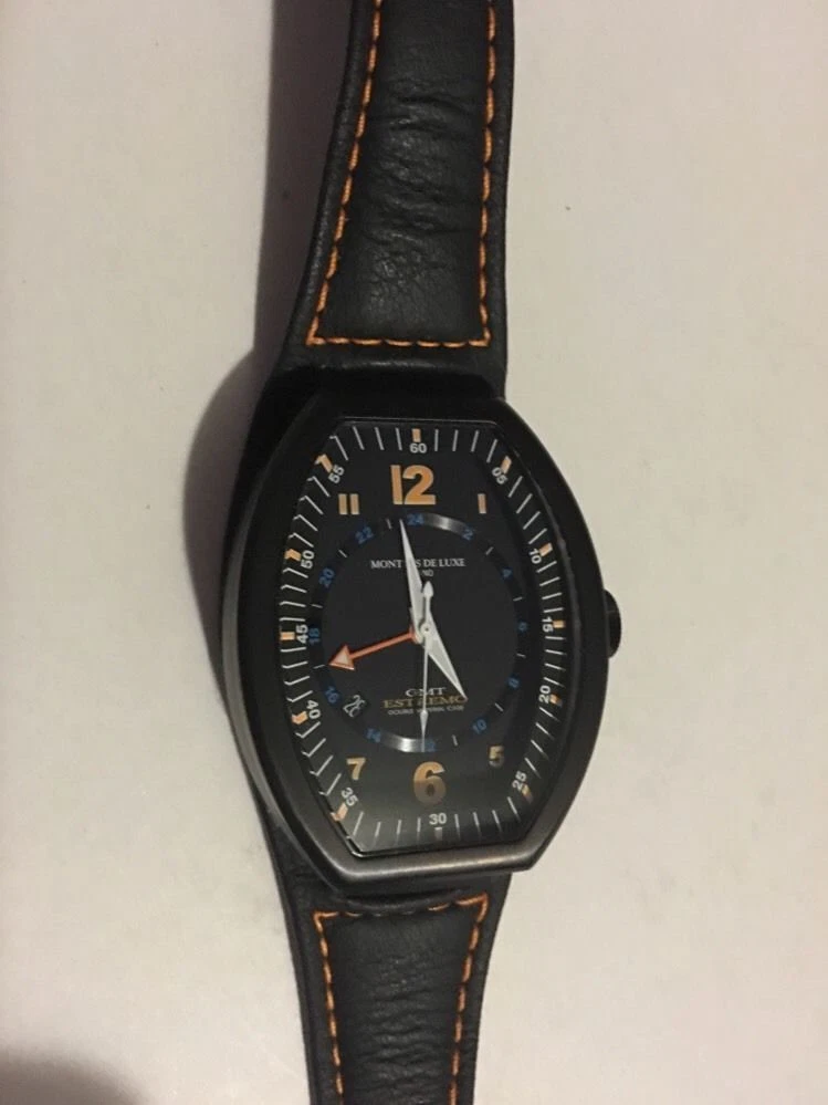 Montres De Luxe Mens GMT Estremo Black orange Tonneau Leather Watch