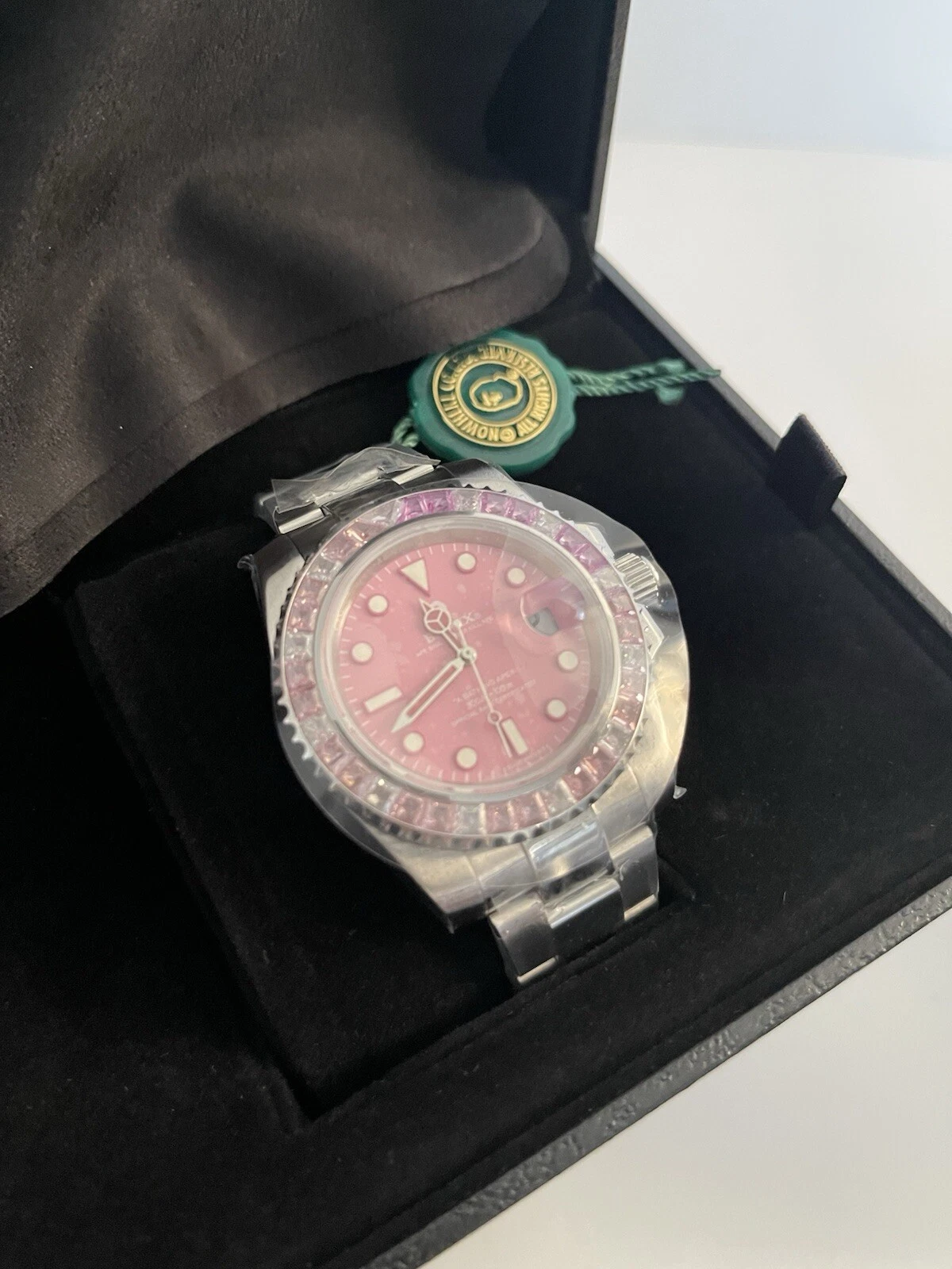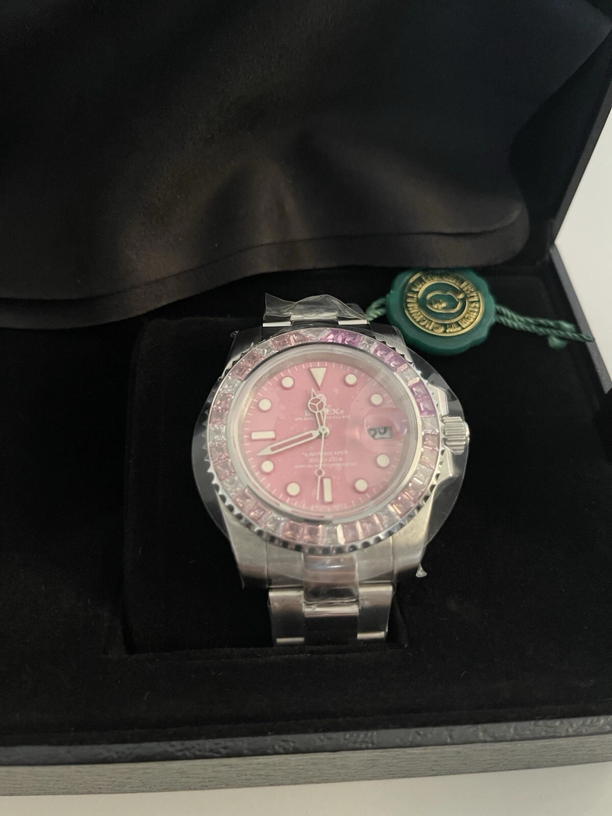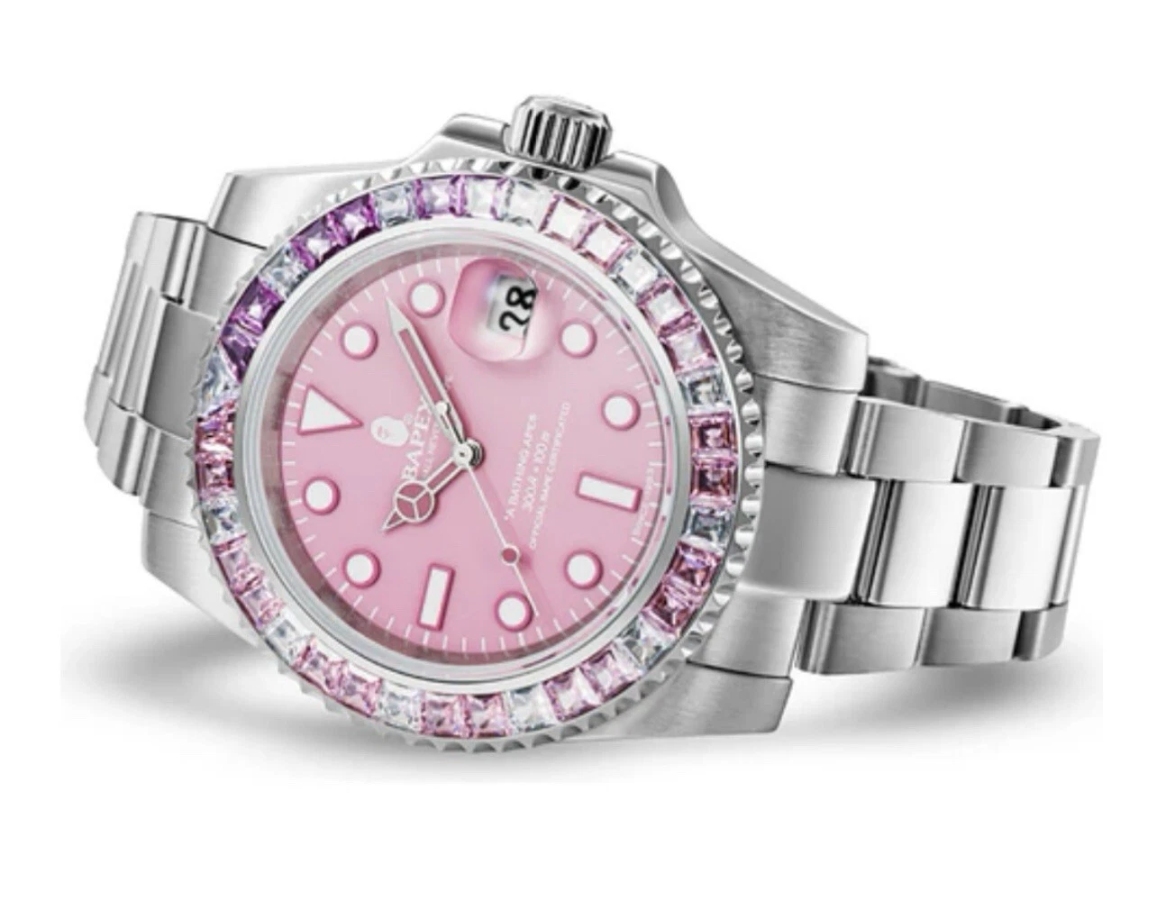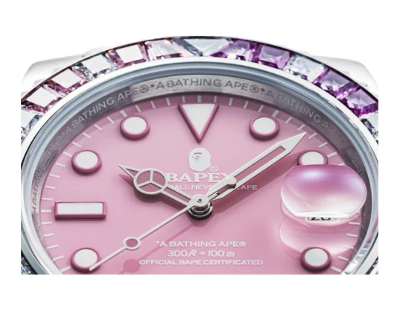 A Bathing Ape Bape Bapex Type 1 Crystal Stone Watch 1J70-187-012 Pink Rare
