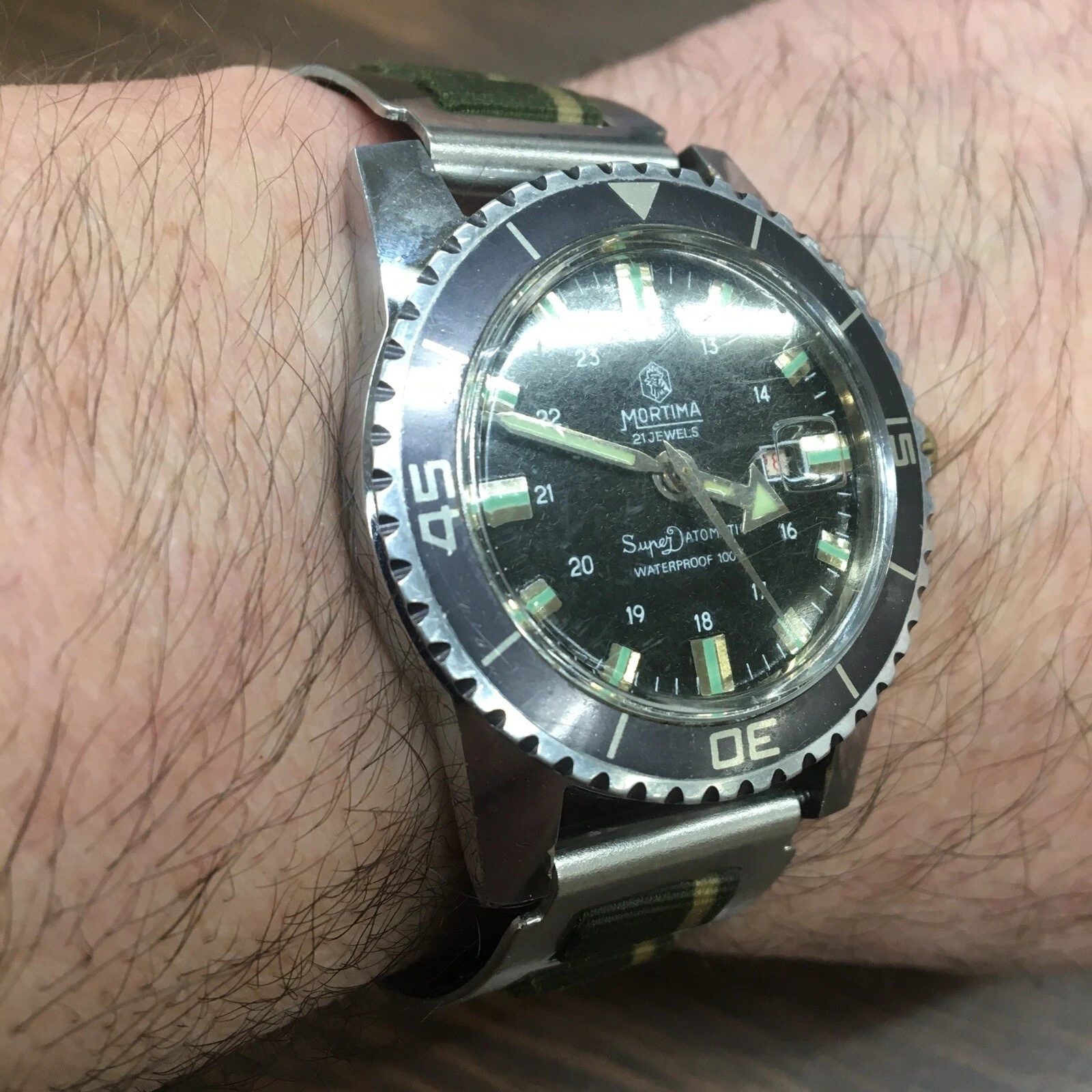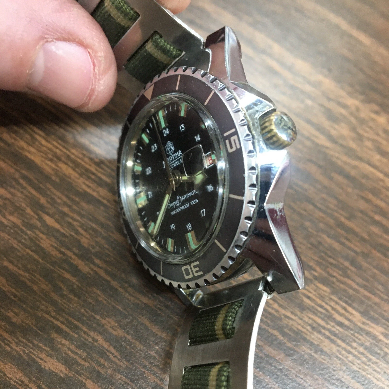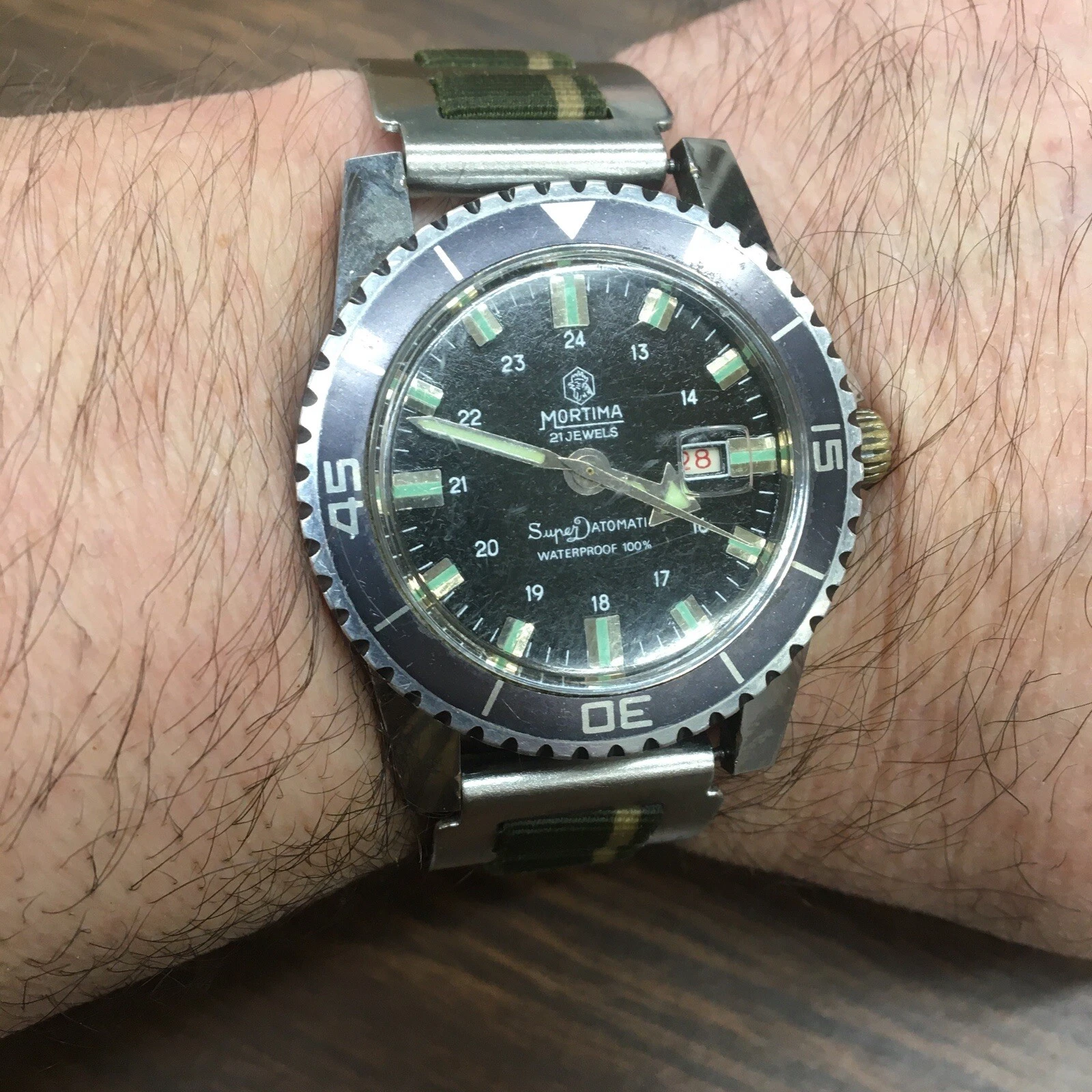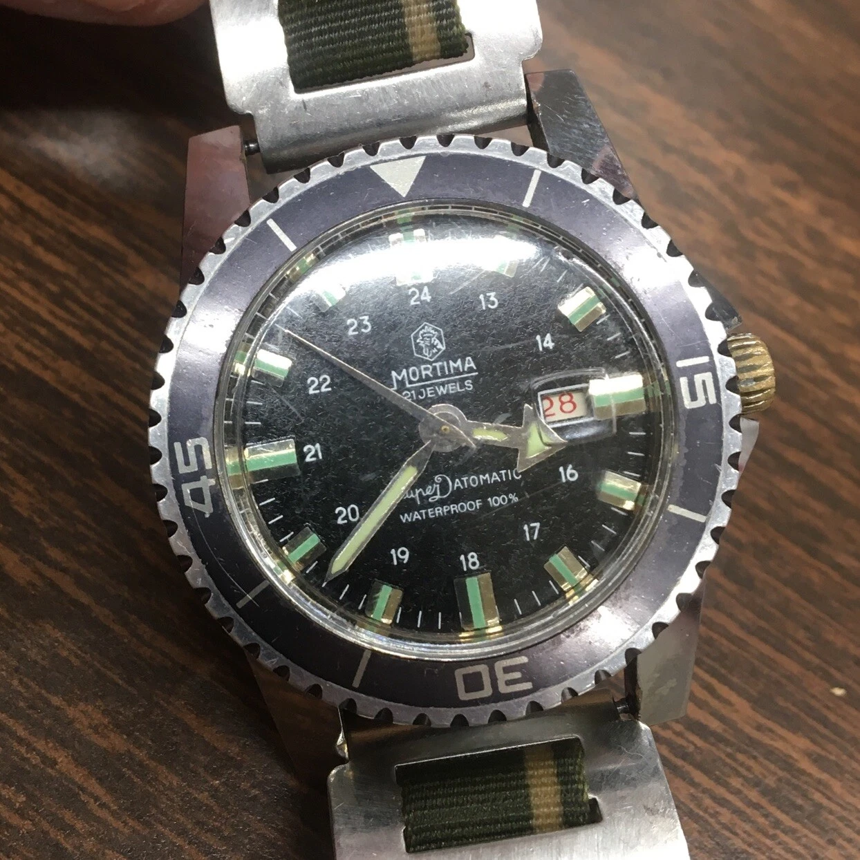 70's Vintage Mortima 21 Jewels Super Datomatic Swiss Men's Diver's Watch WORKS