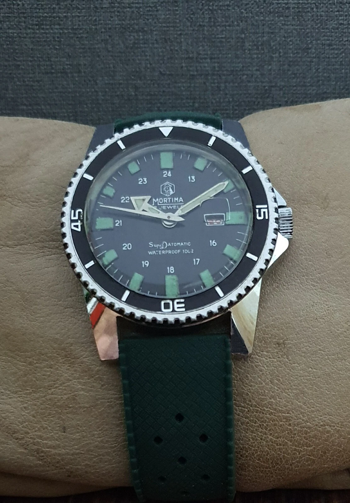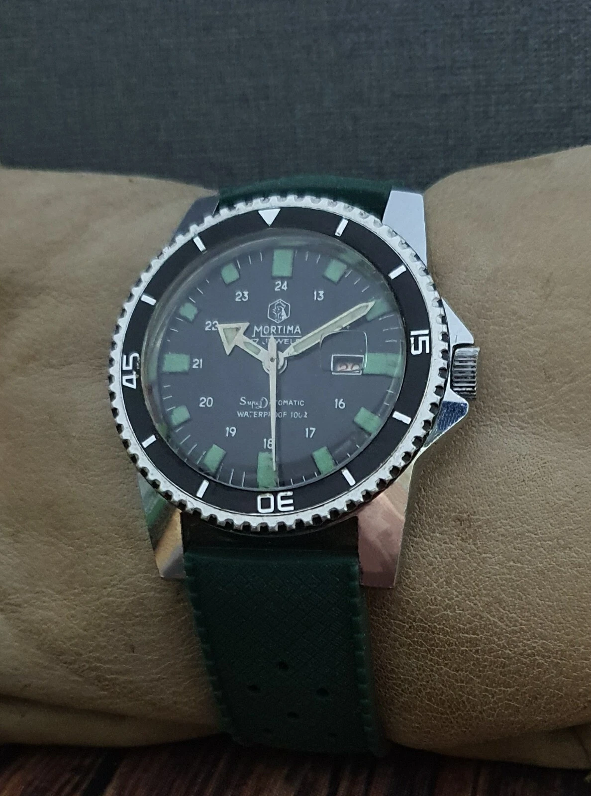 MORTIMA SUPER DATOMATIC DIVER 100m cal. CAT-C66 VINTAGE 70s RARE 17J SWISS WATCH