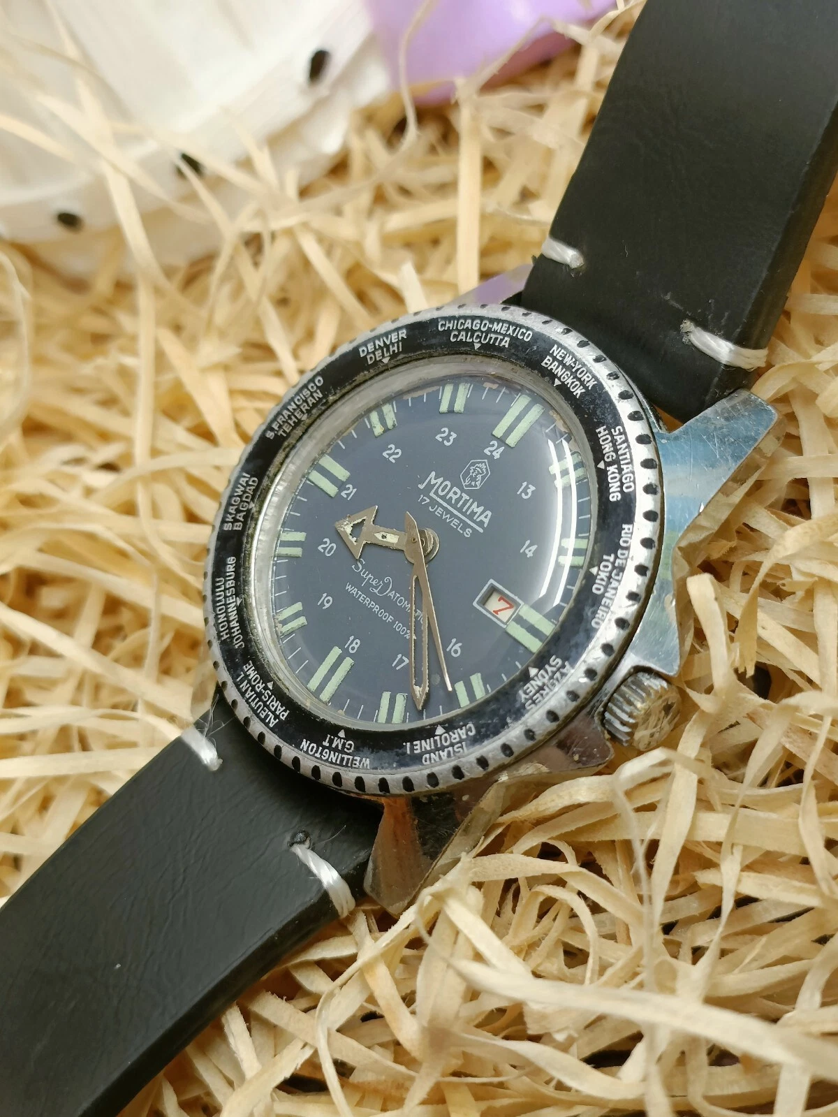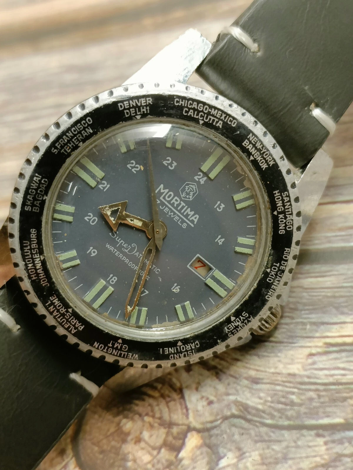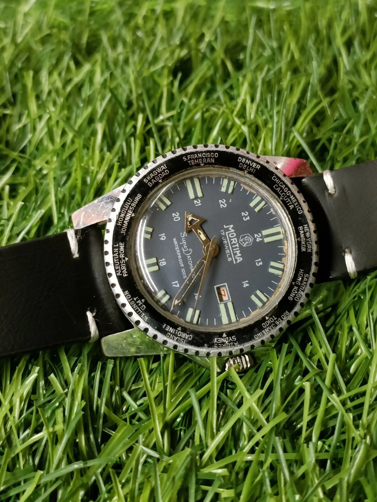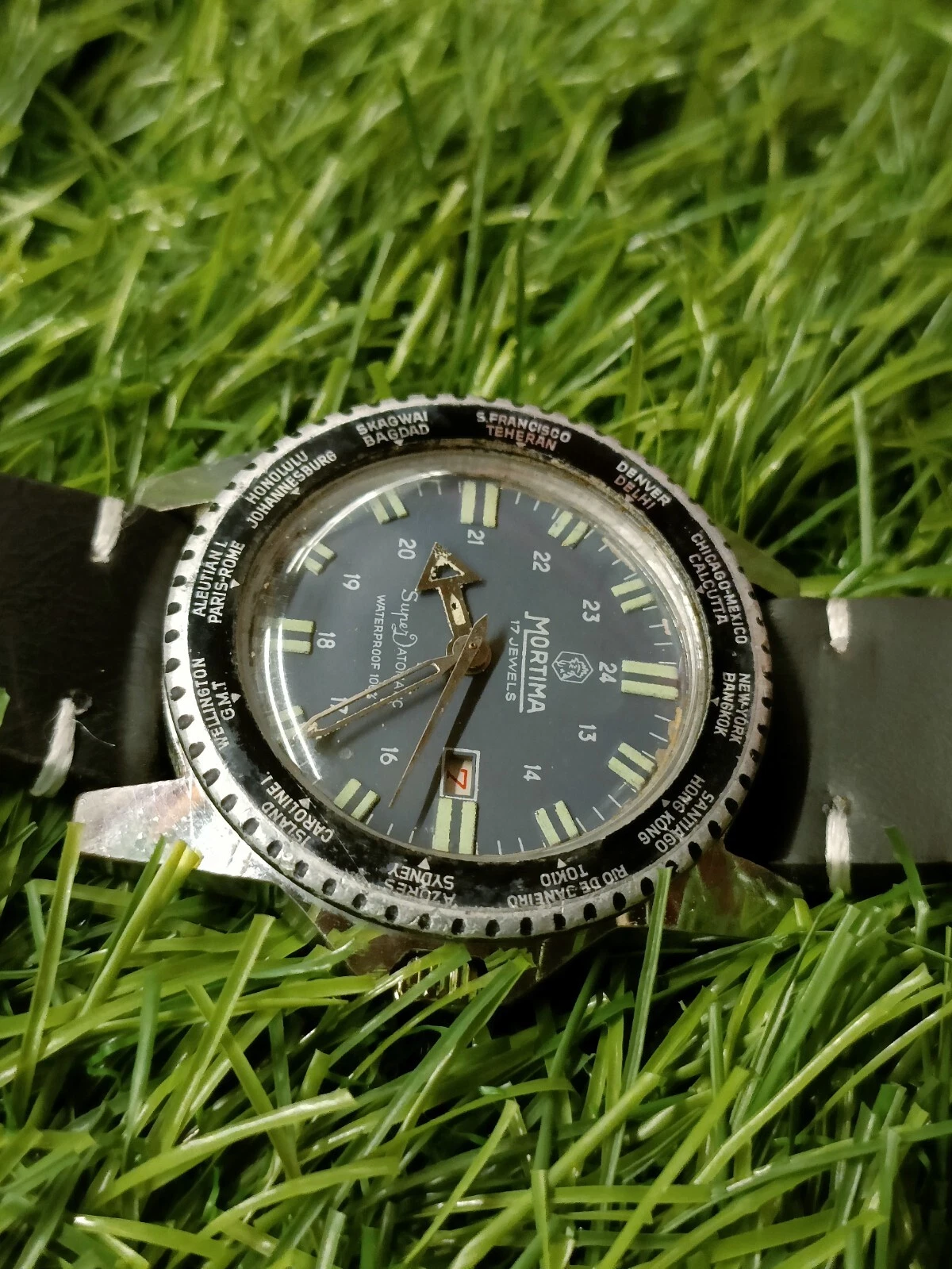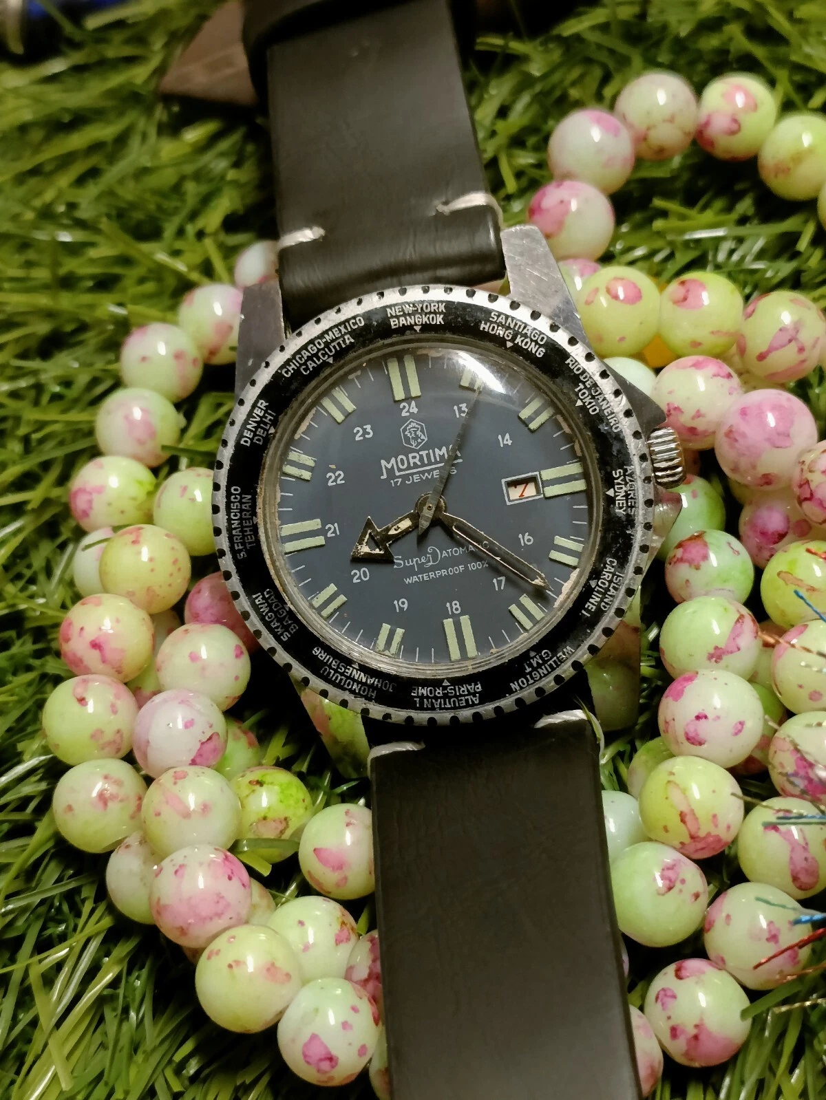 AUTHENTIC MORTIMA 17 JEWELS SUPER DATOMATIC DIVER DATE MEN'S GRAY DIAL VINTAGE