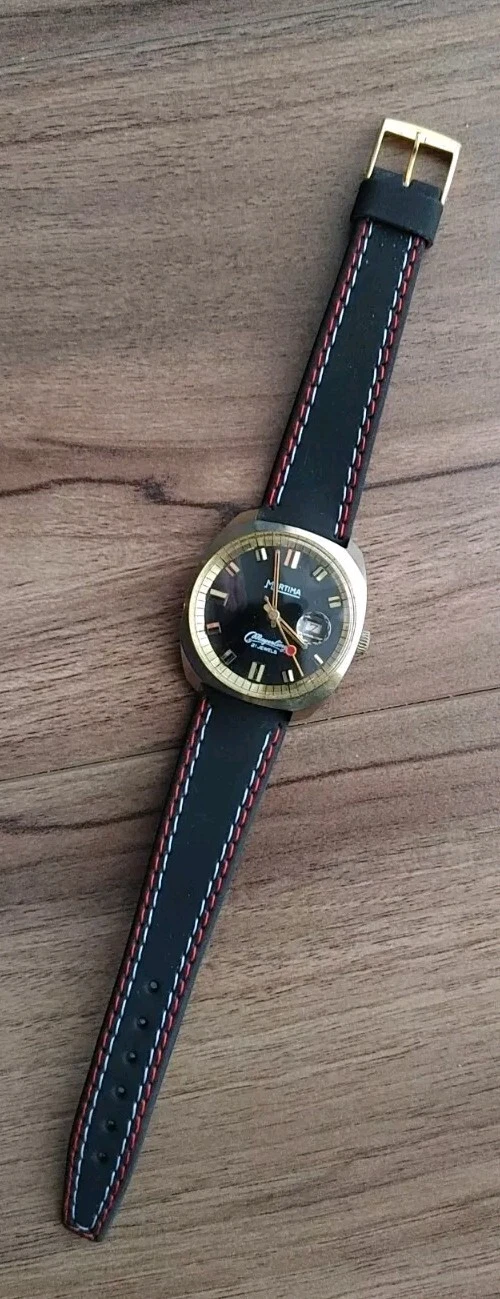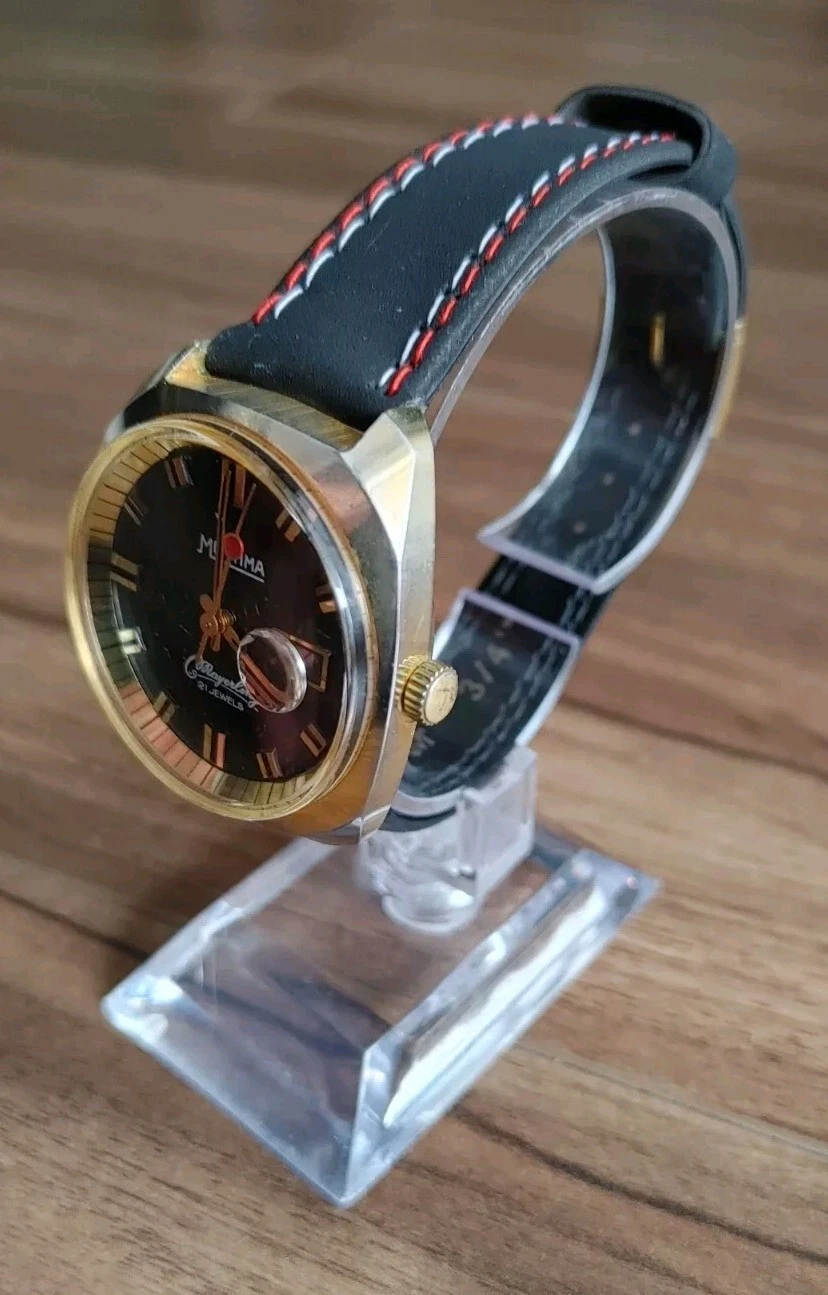 1970s Men's 21J Mortima Mayerling Calendar Luxe-Black Dial-Date-Runs Great