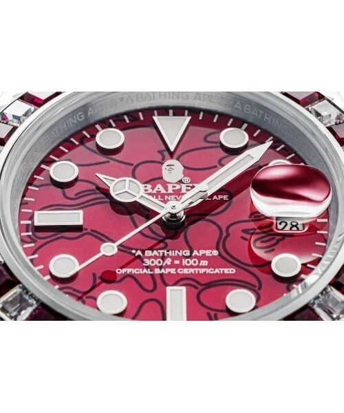 A BATHING APE Men's Watch TYPE 1 BAPEX CRYSTAL STONE COLOR BURGUNDY