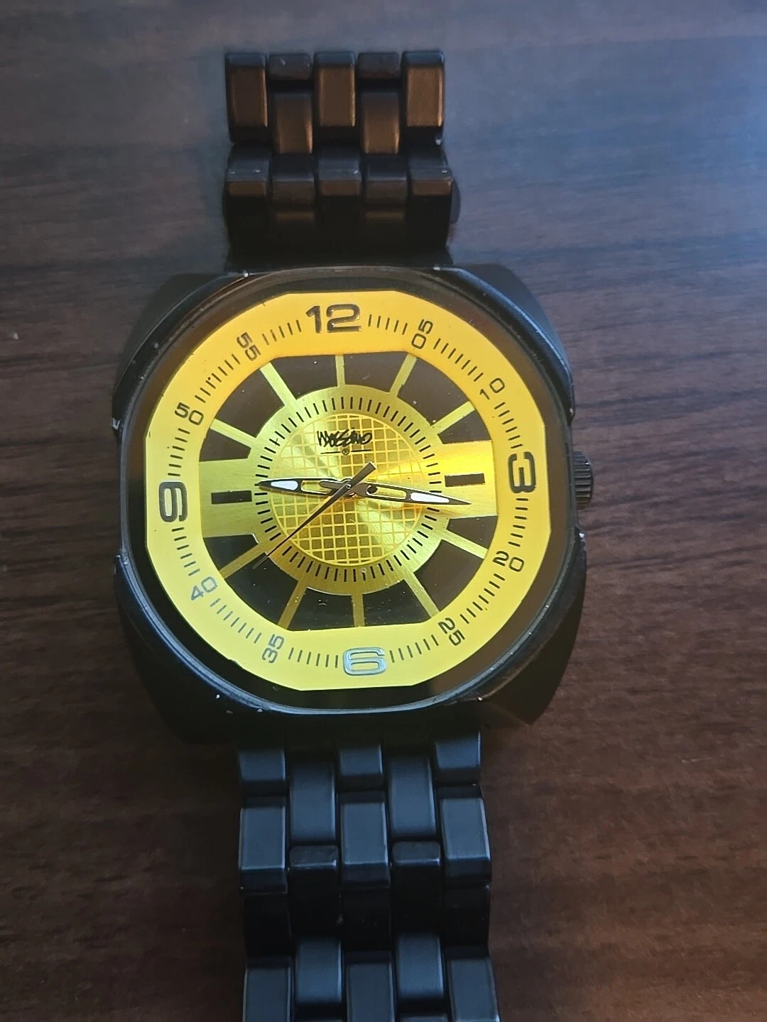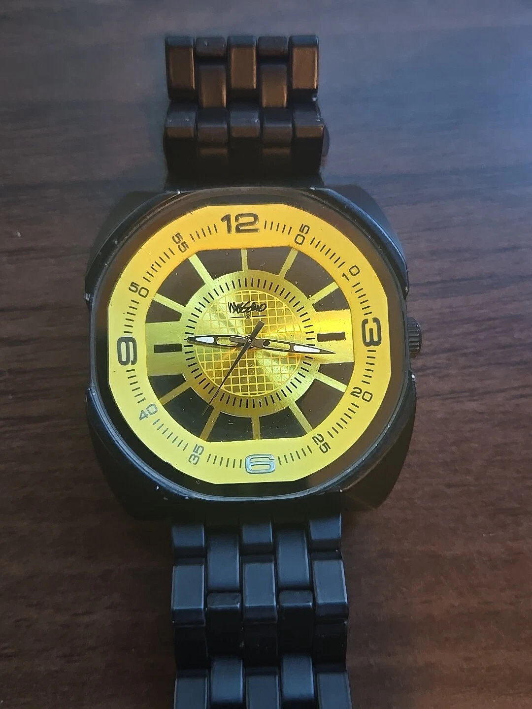 Mens Mossimo MM90290 S60-11 Large Face Watch Black & Yellow