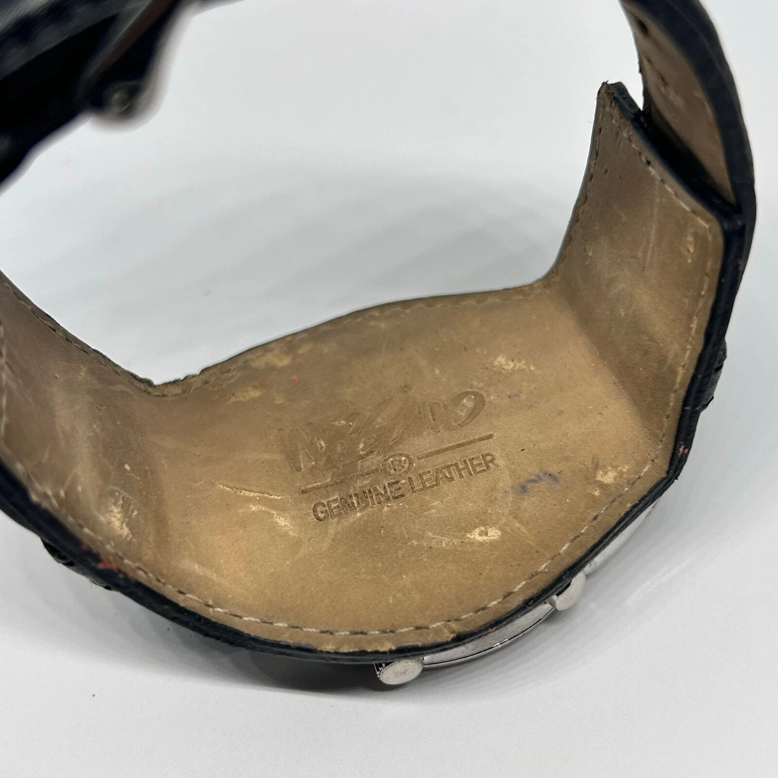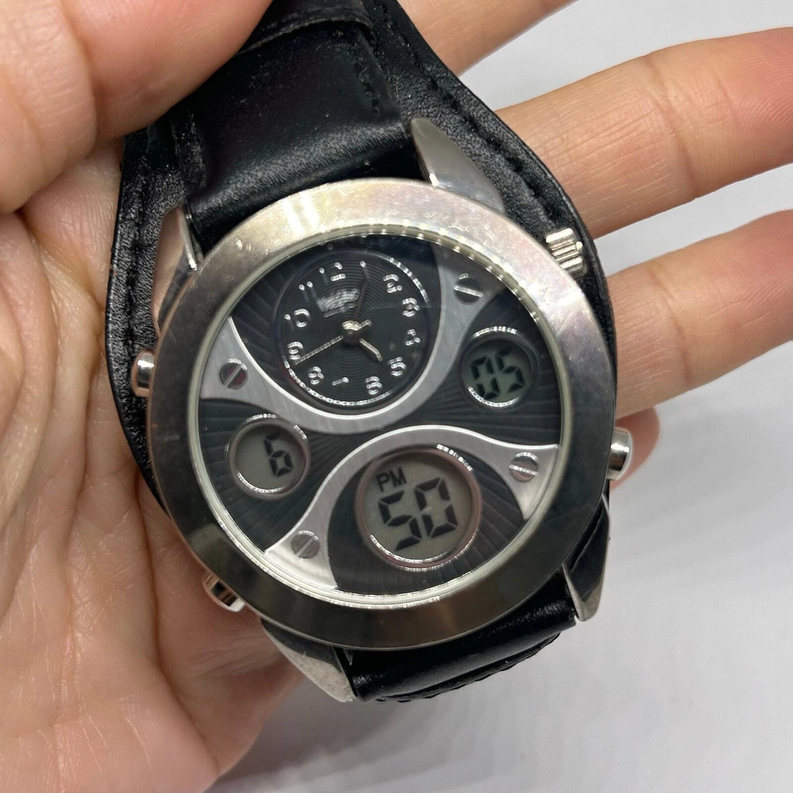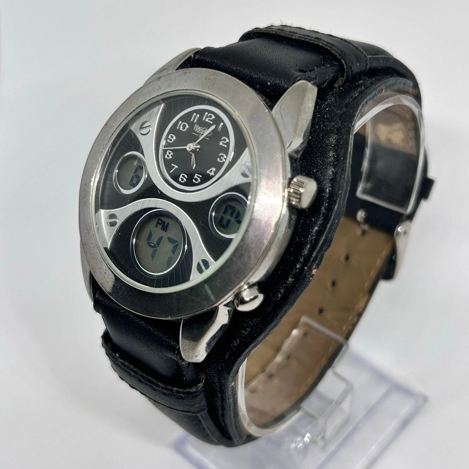 Mossimo Silver Tone Black Genuine Leather Men’s Watch New Battery