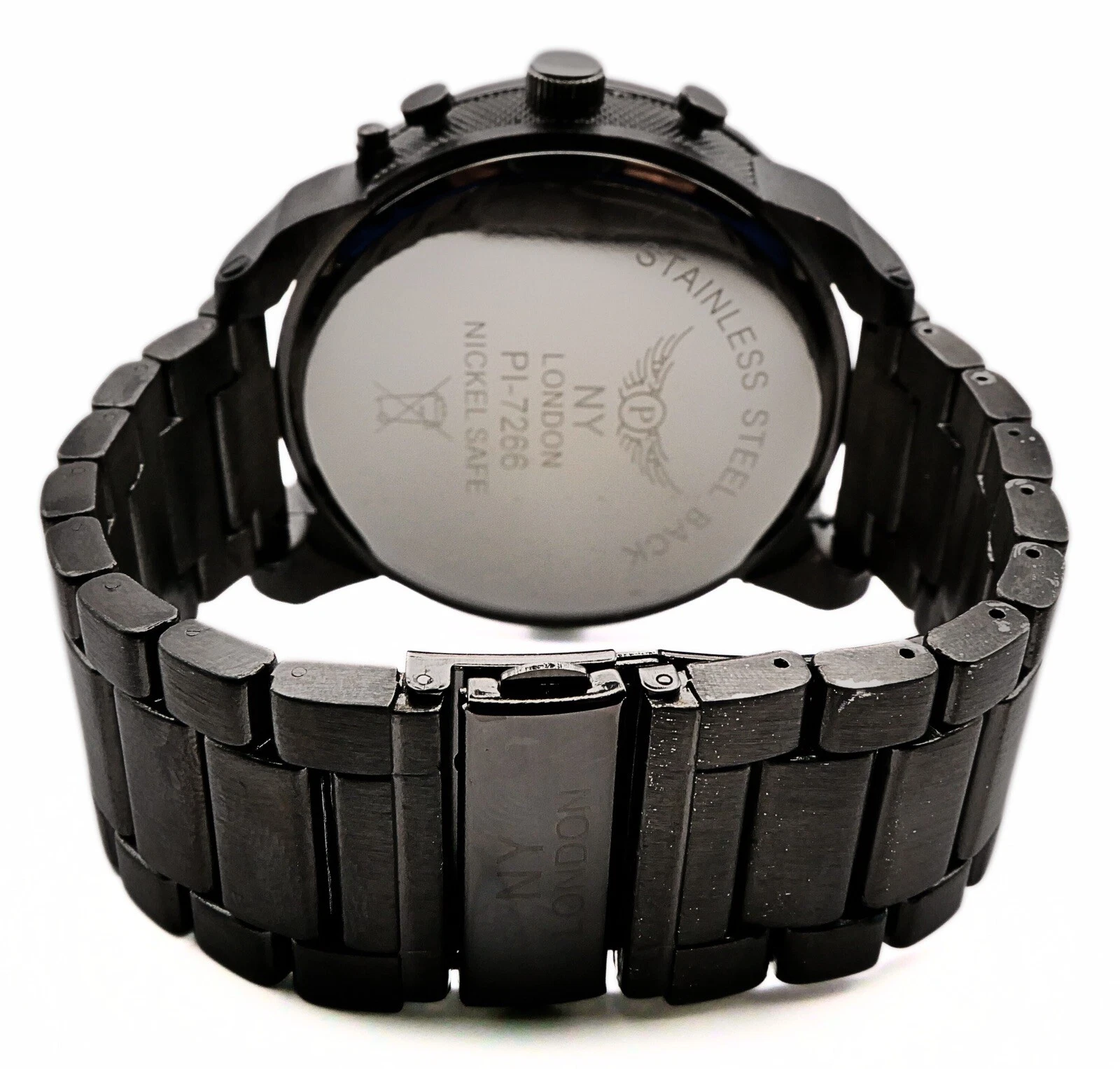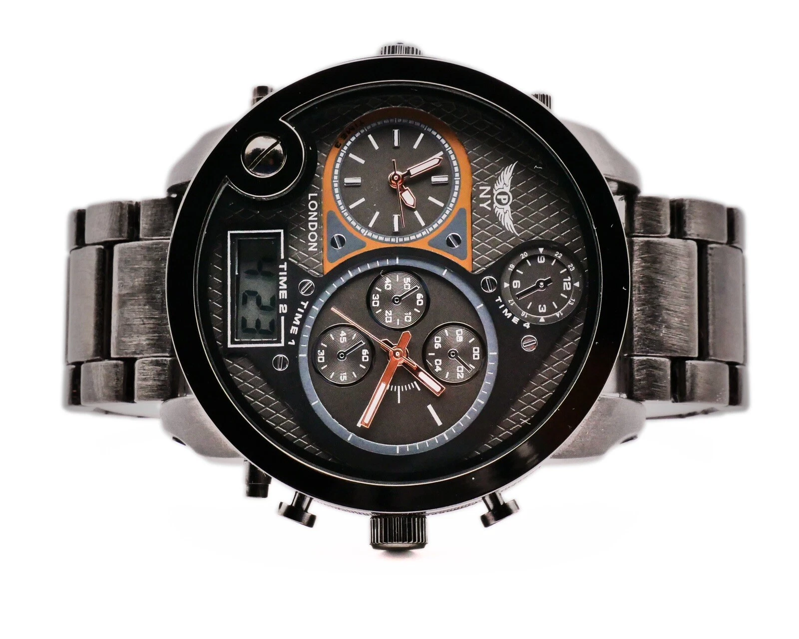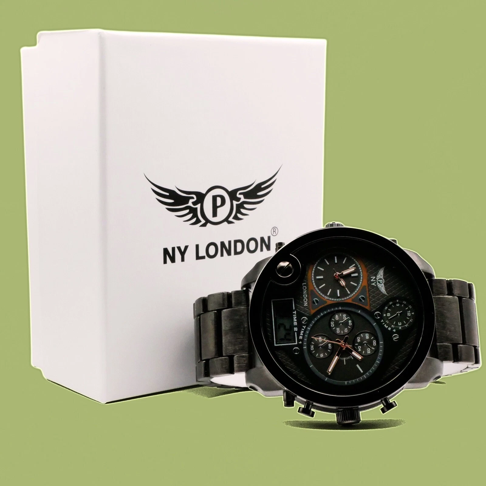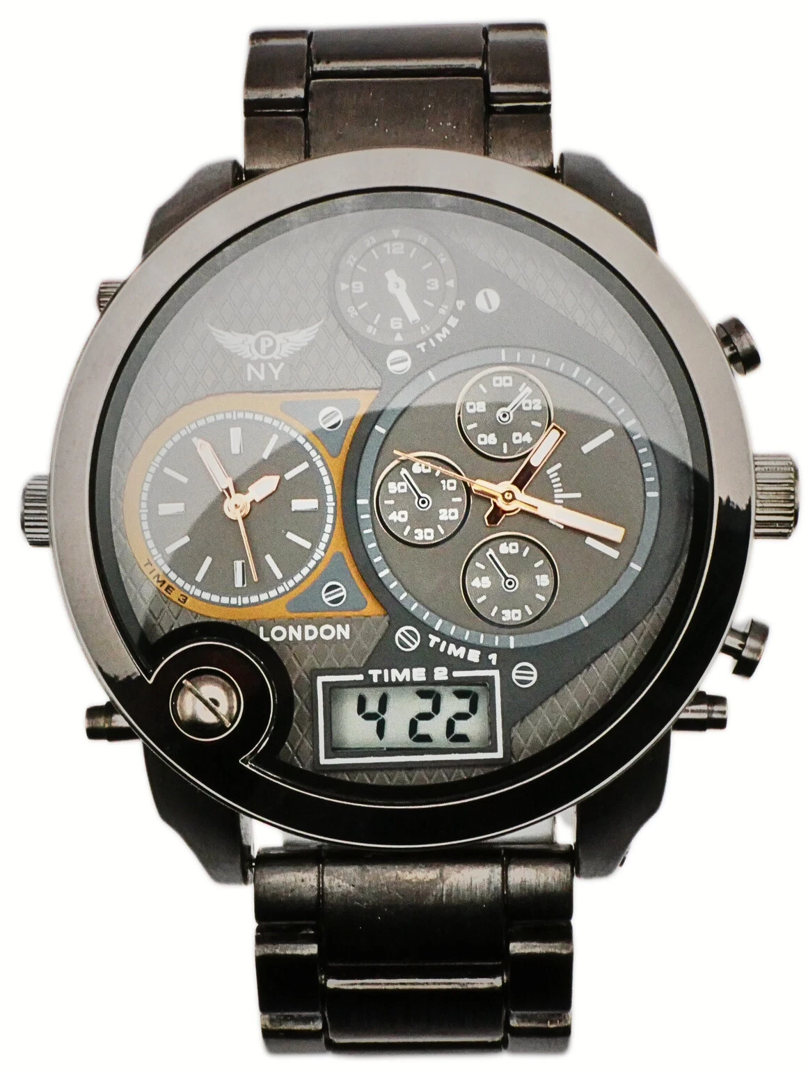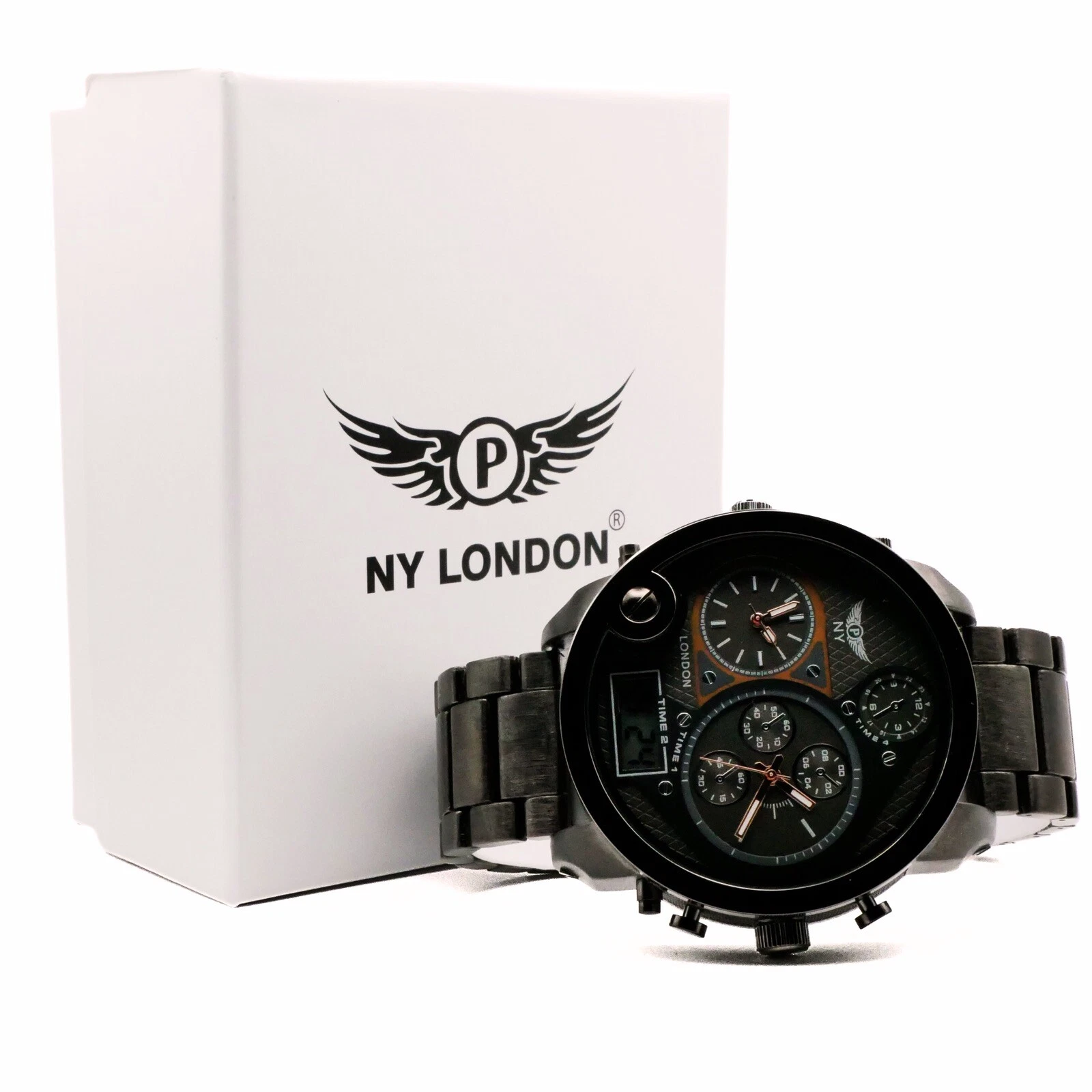 NY LONDON Black and Black face Men’s Metal Strap Date Analog and Digital Quartz