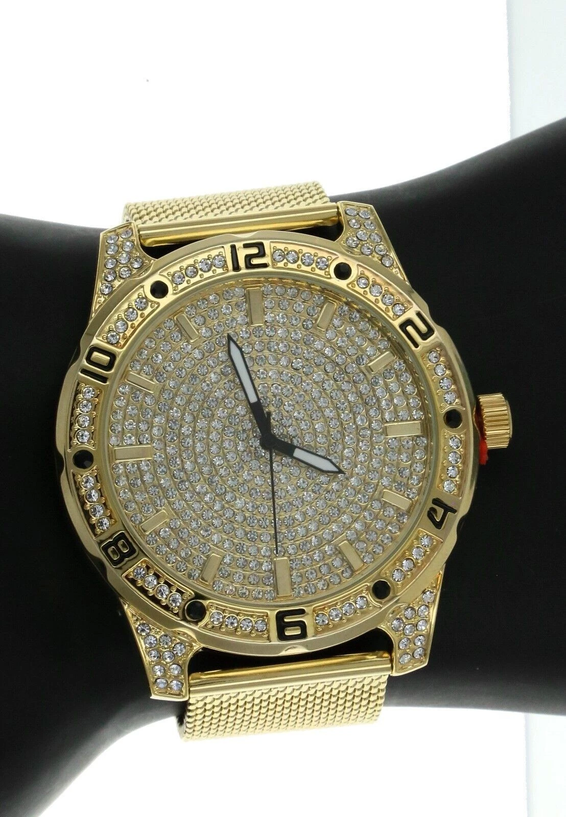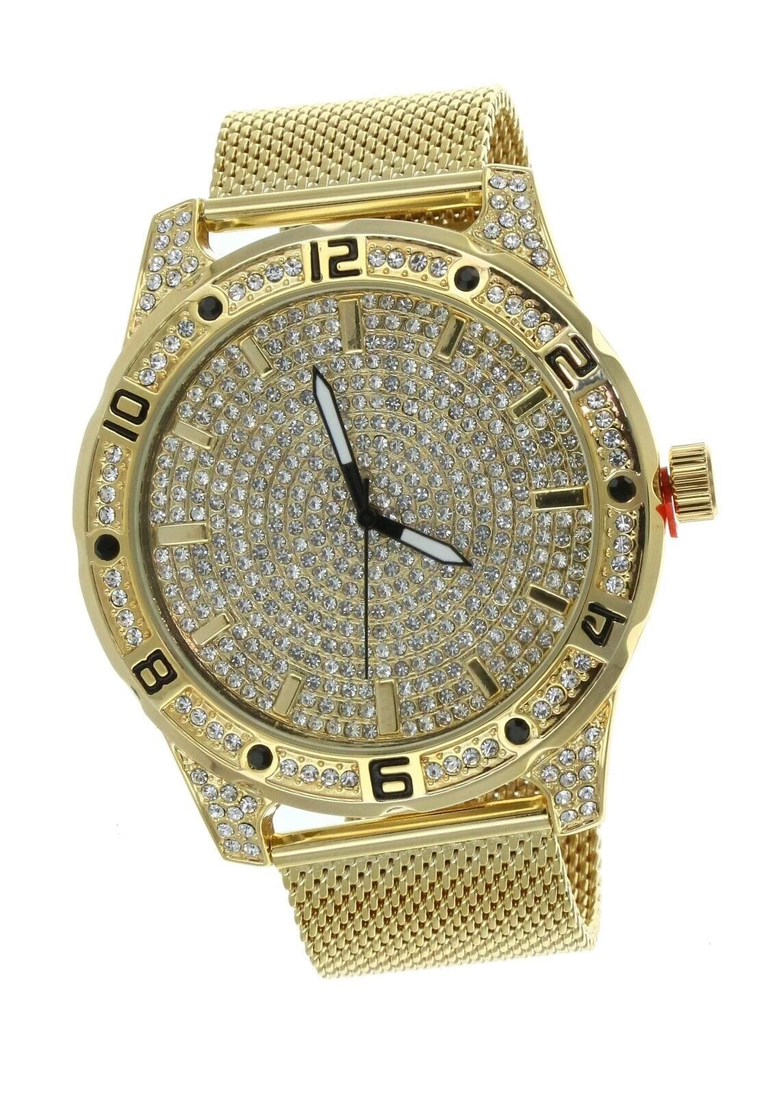 NY LONDON Men Hip-Hop Gold Plated Rapper's Metal Band C. Zirconia Luxury Watch