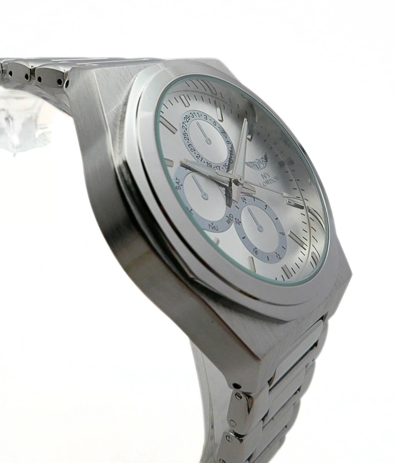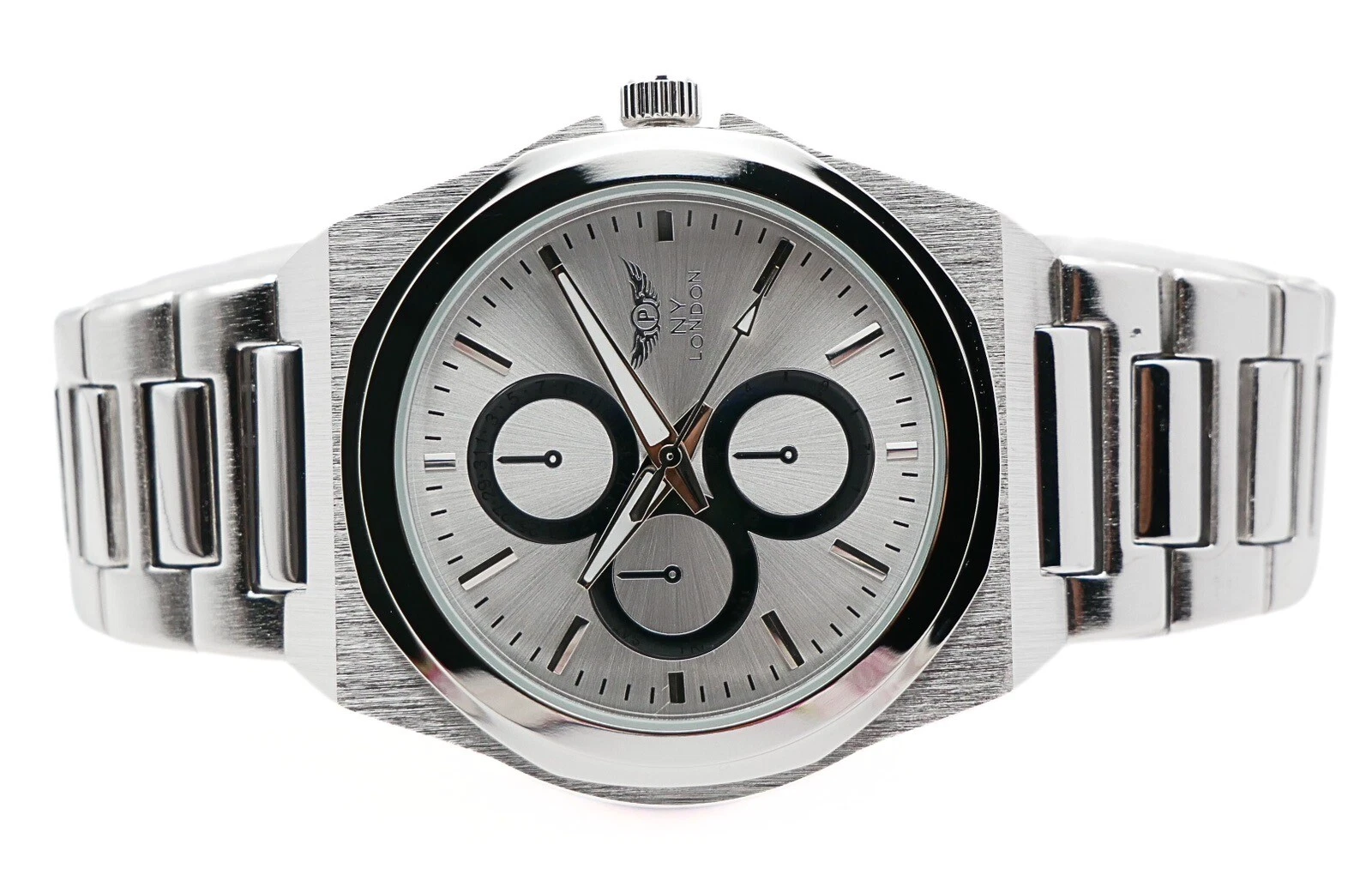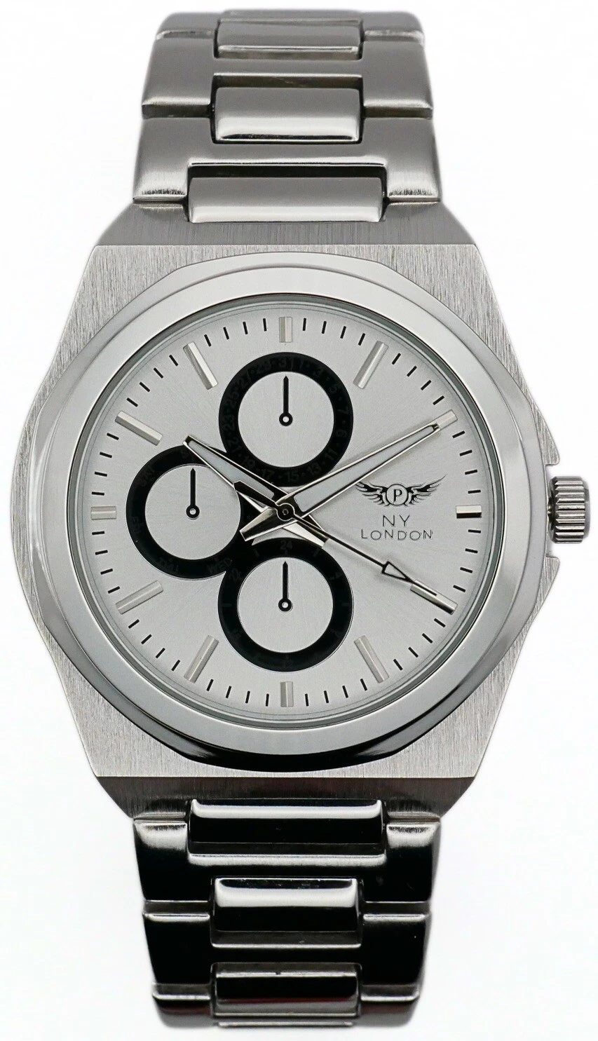 NY LONDON Silver and Silver Chronographs Dials Men’s Metal Strap Analog Quartz