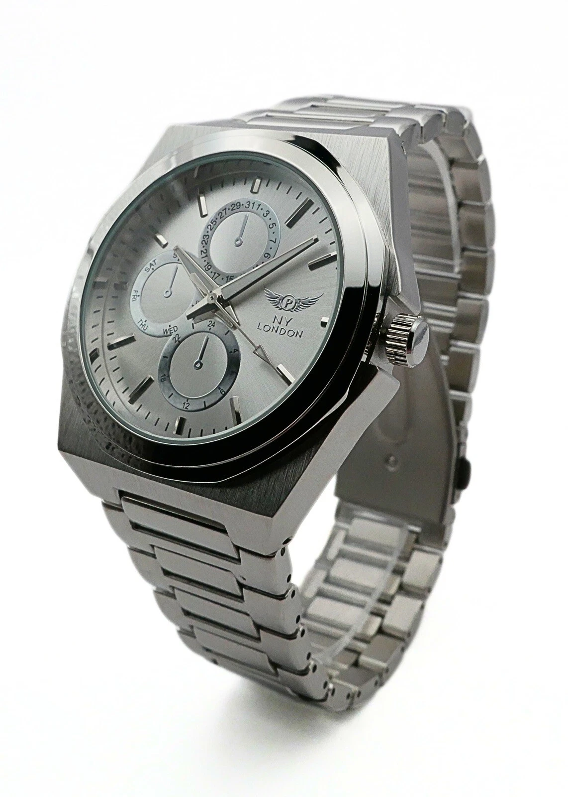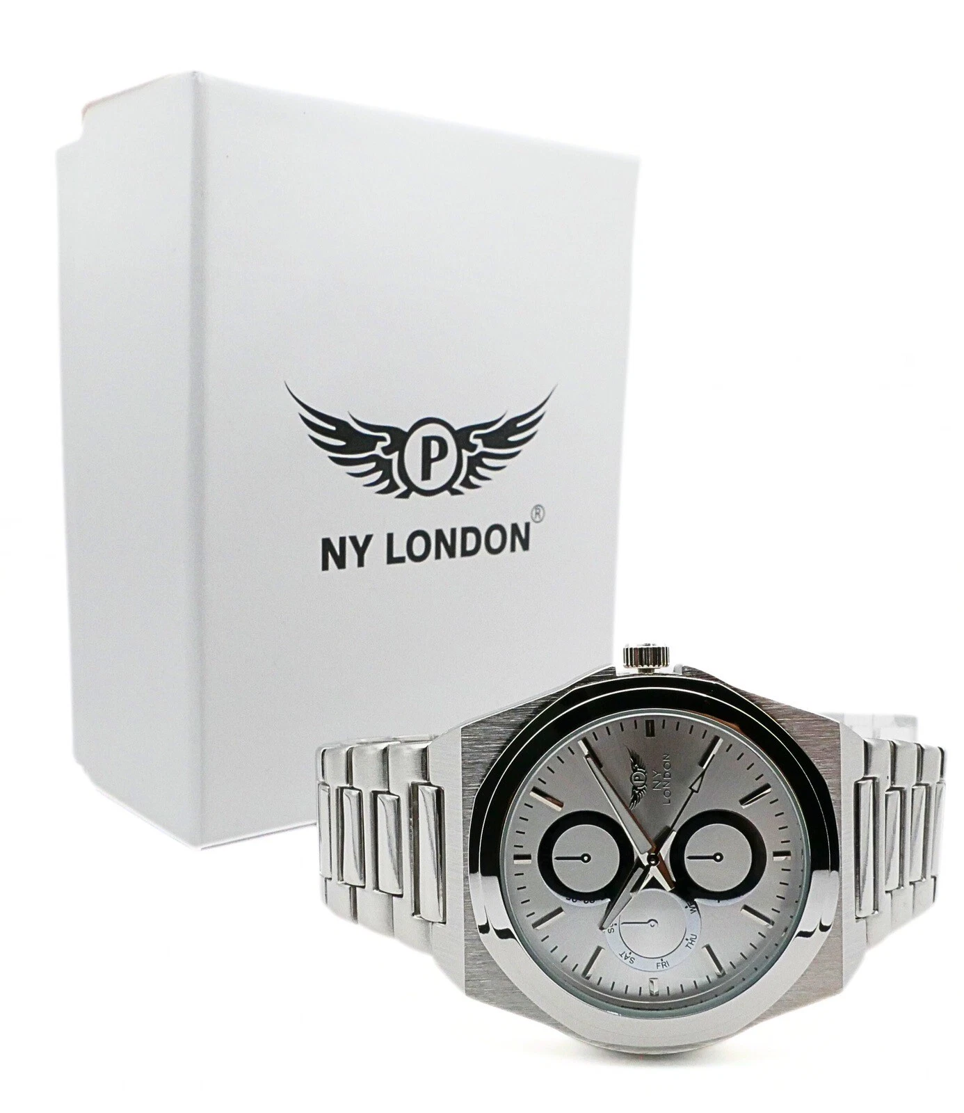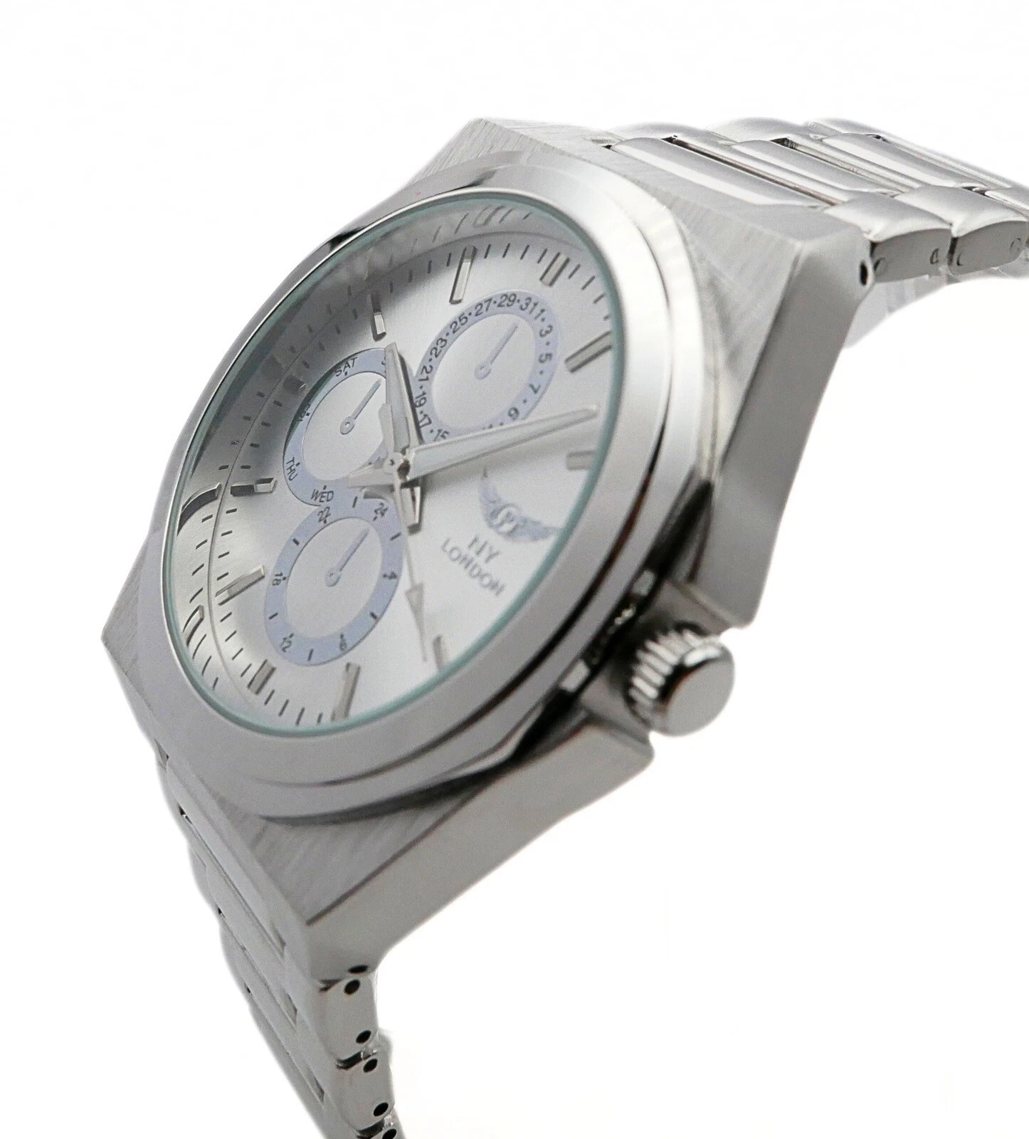 NY LONDON Silver and Silver Chronographs Dials Men’s Metal Strap Analog Quartz
