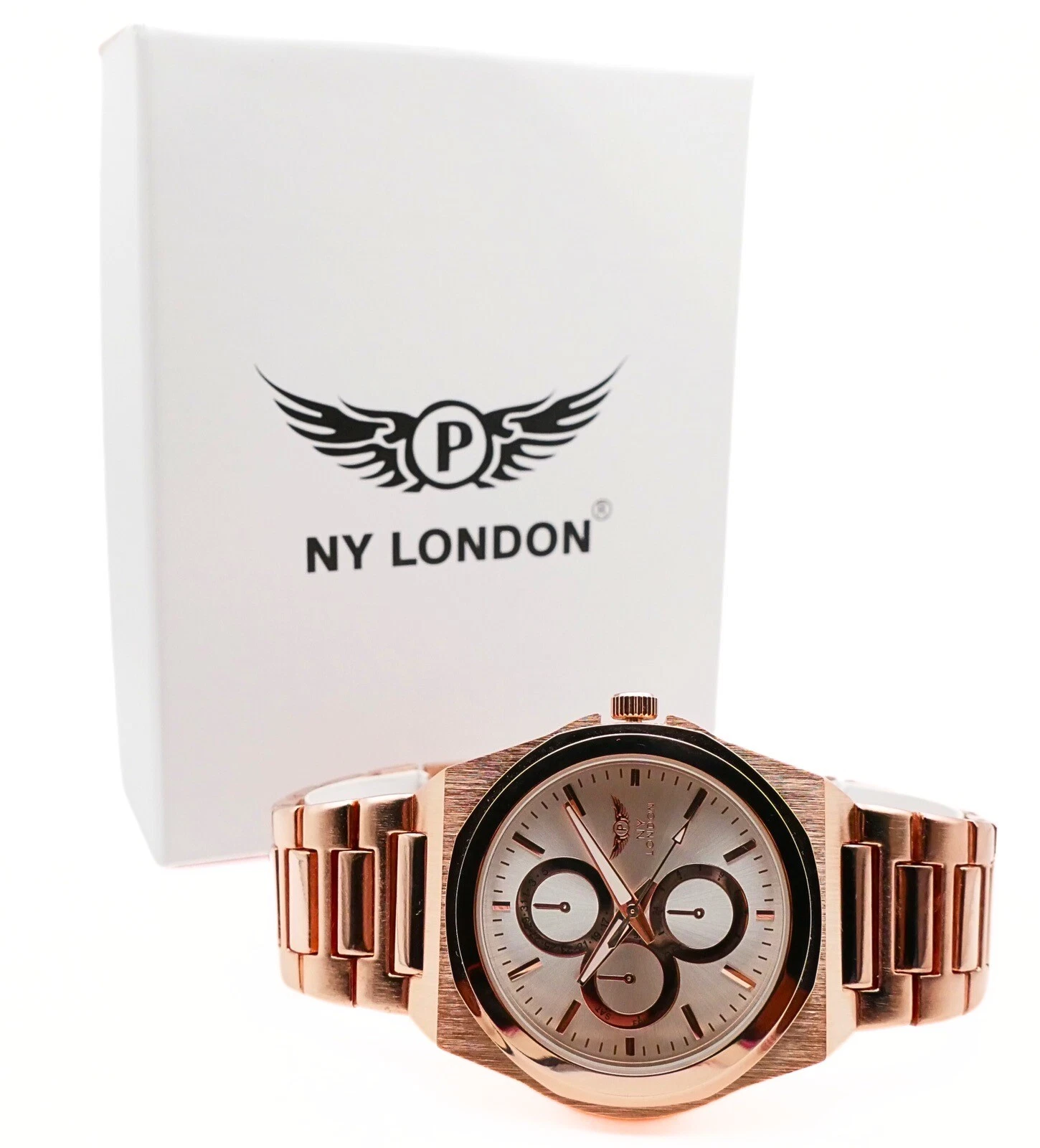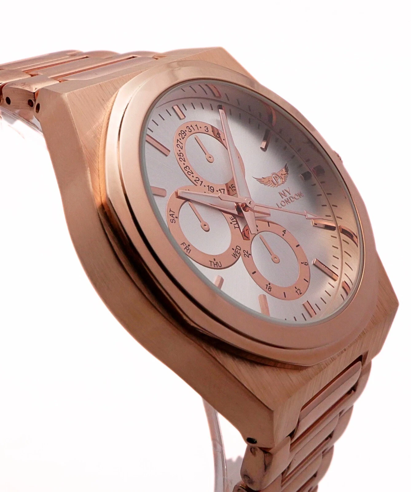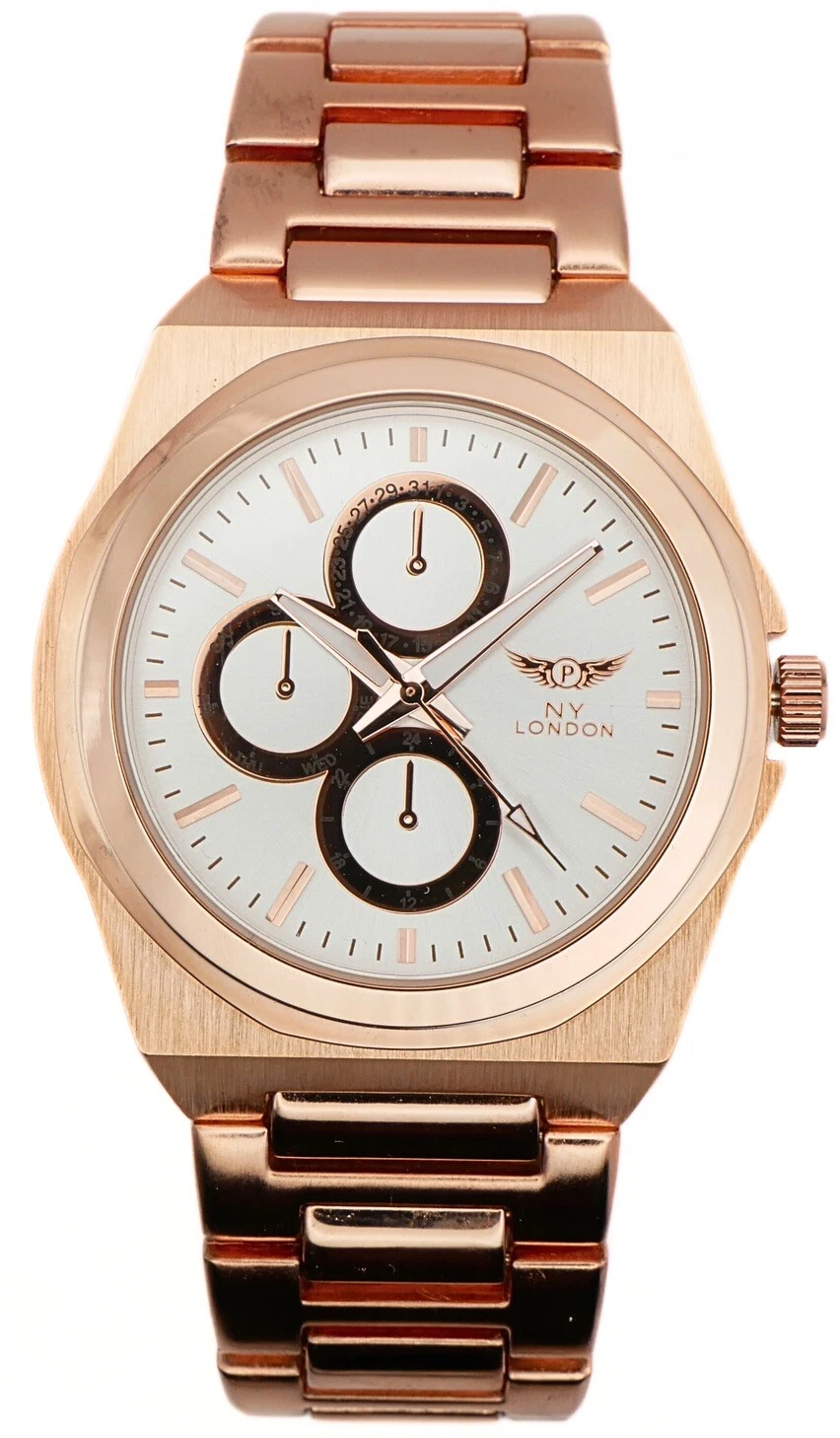 NY LONDON Rose Gold and Silver Chronographs Dials Men Metal Strap Analog Quartz
