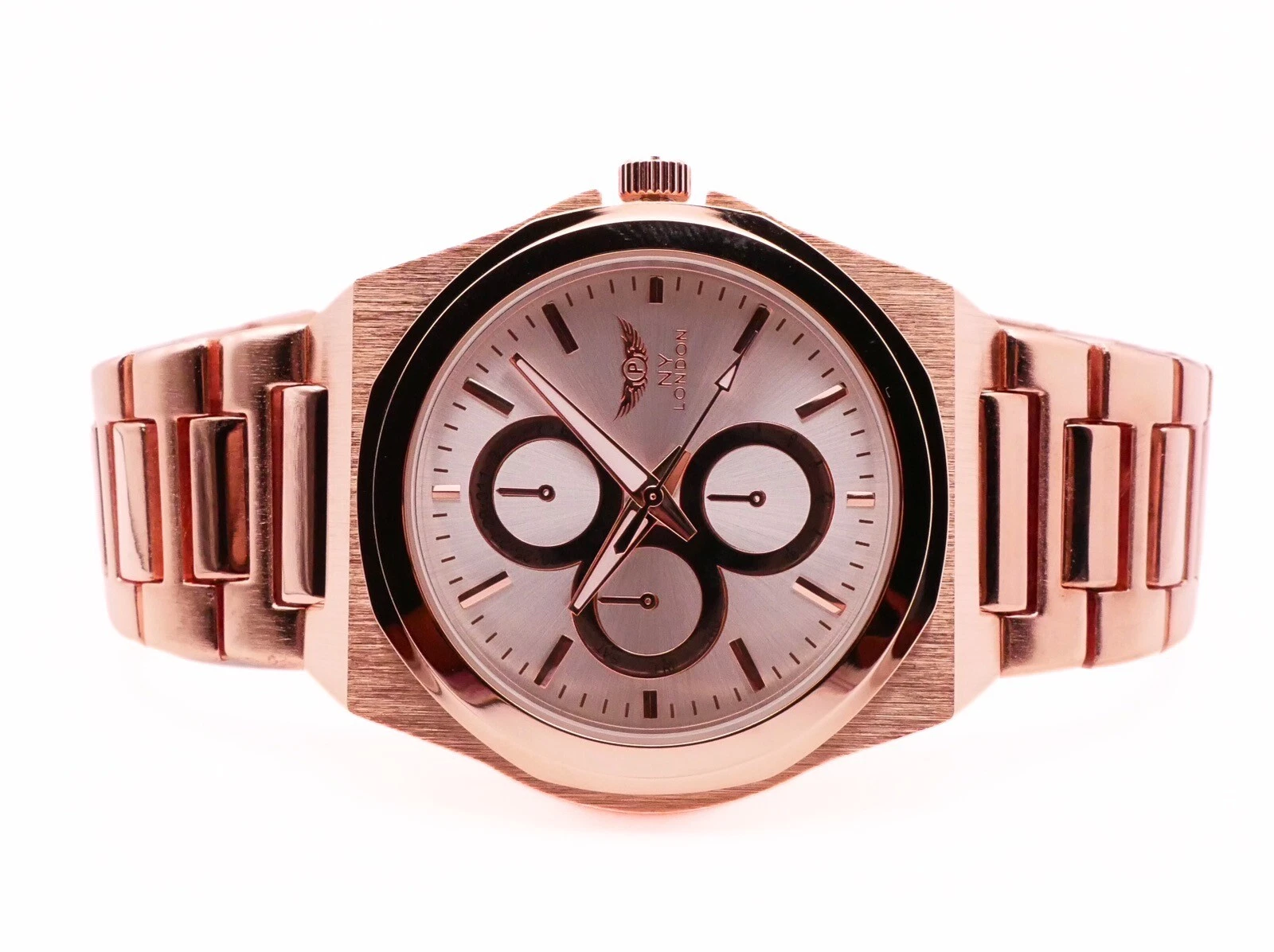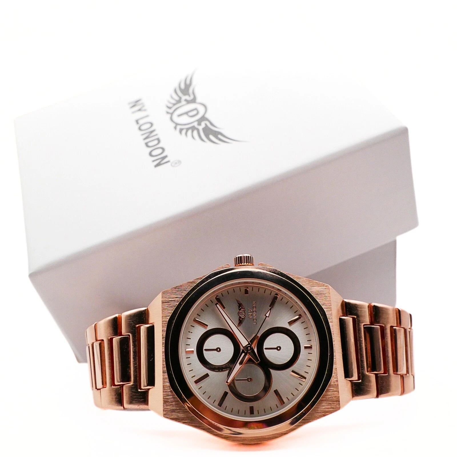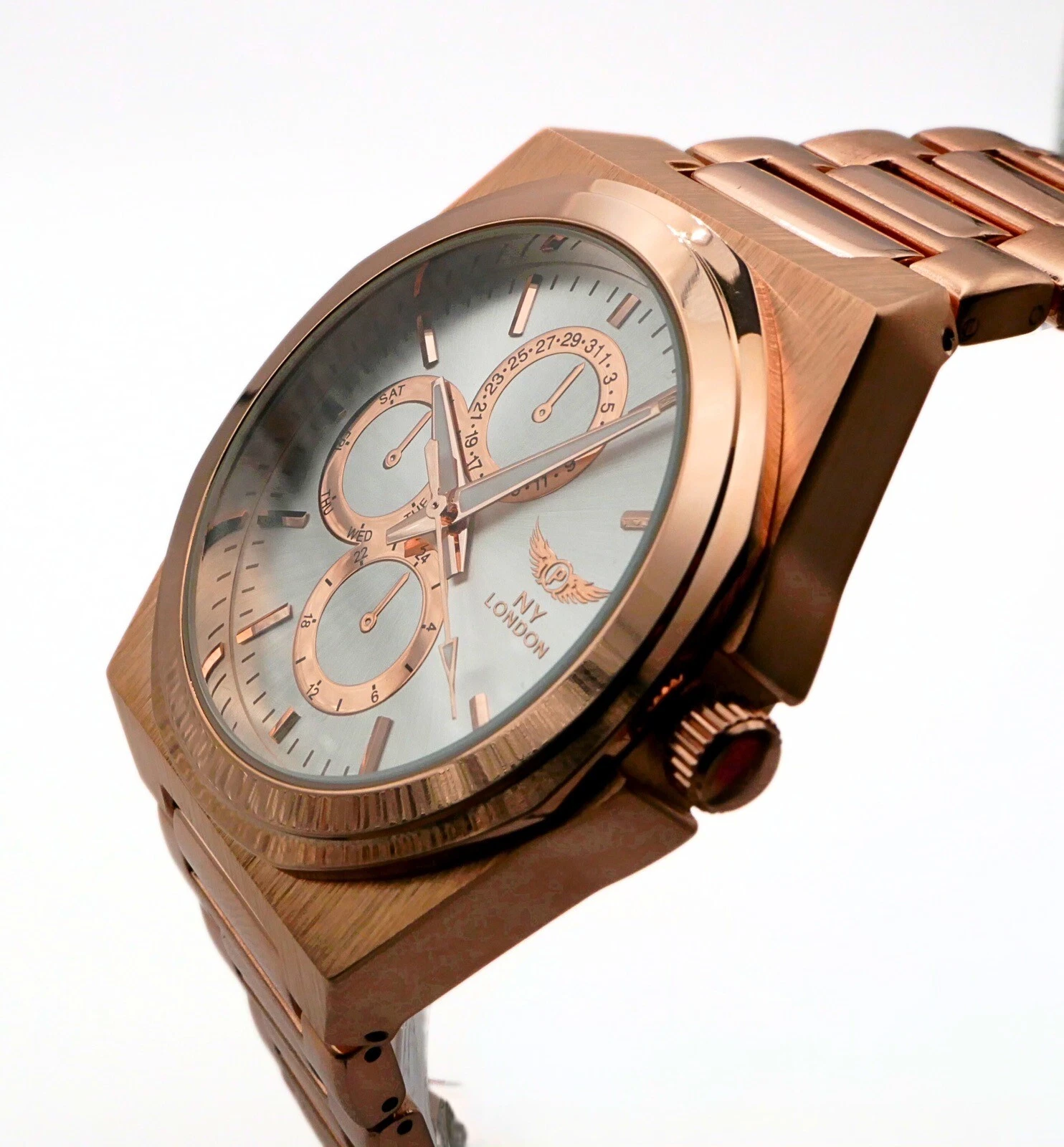 NY LONDON Rose Gold and Silver Chronographs Dials Men Metal Strap Analog Quartz