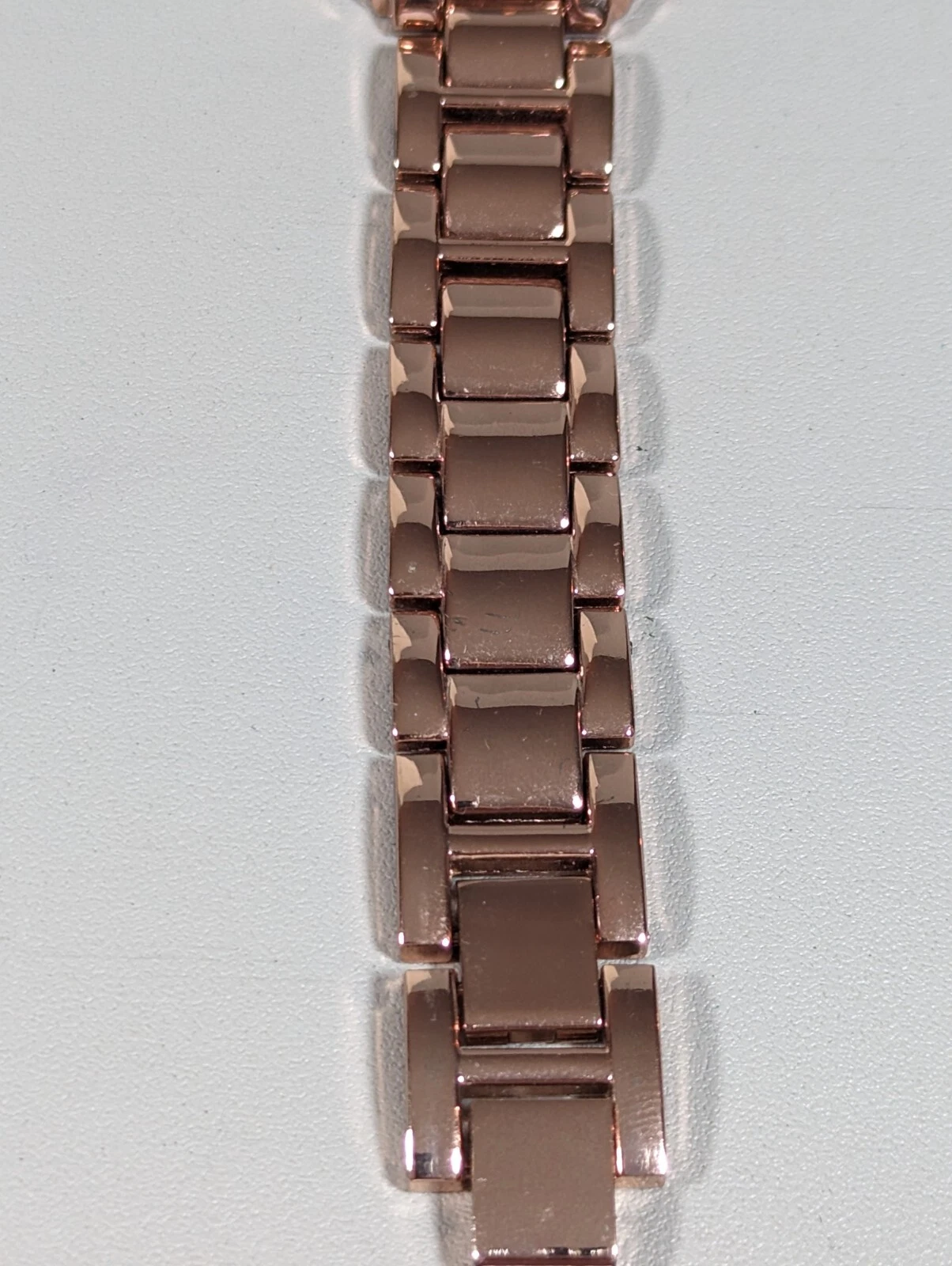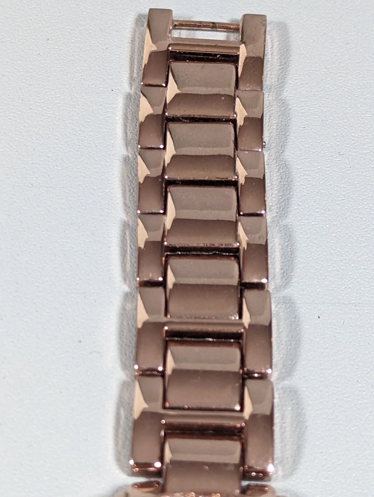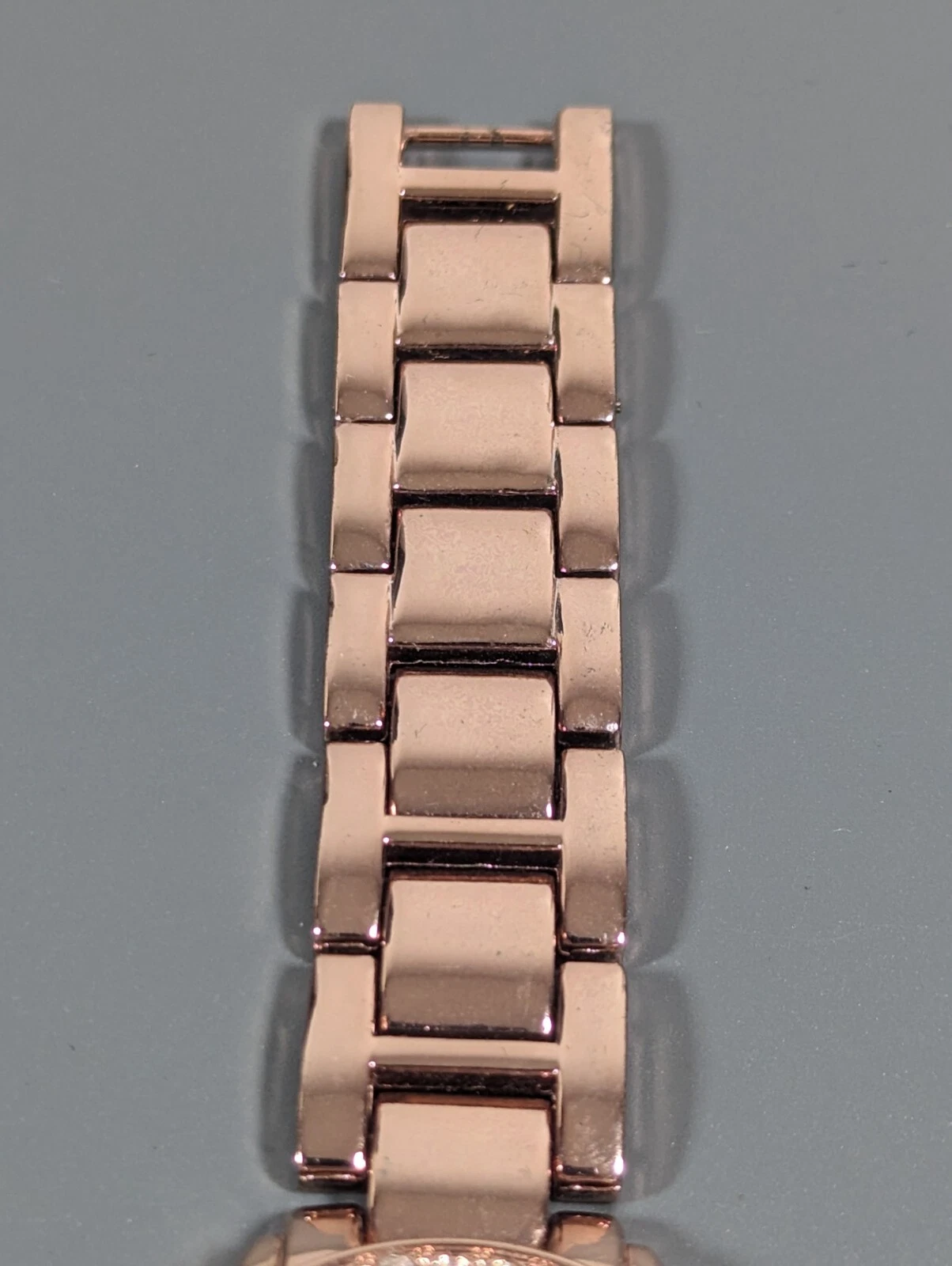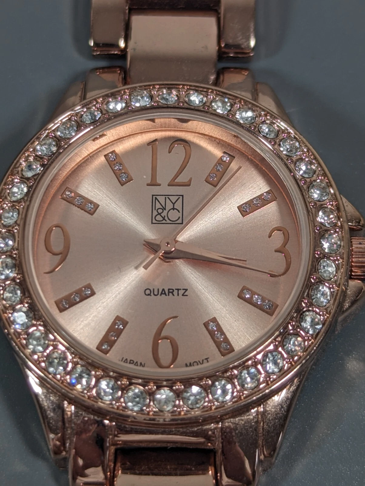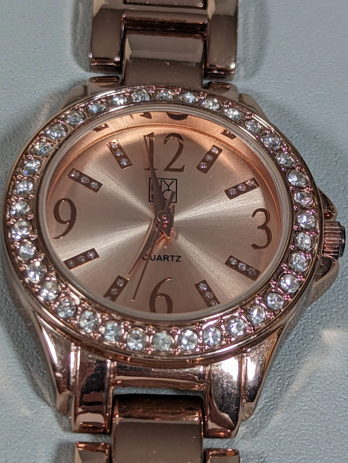 NYC Rose Gold Tone Round Crystal Accent Case Link Bracelet Band Watch Womans 8in