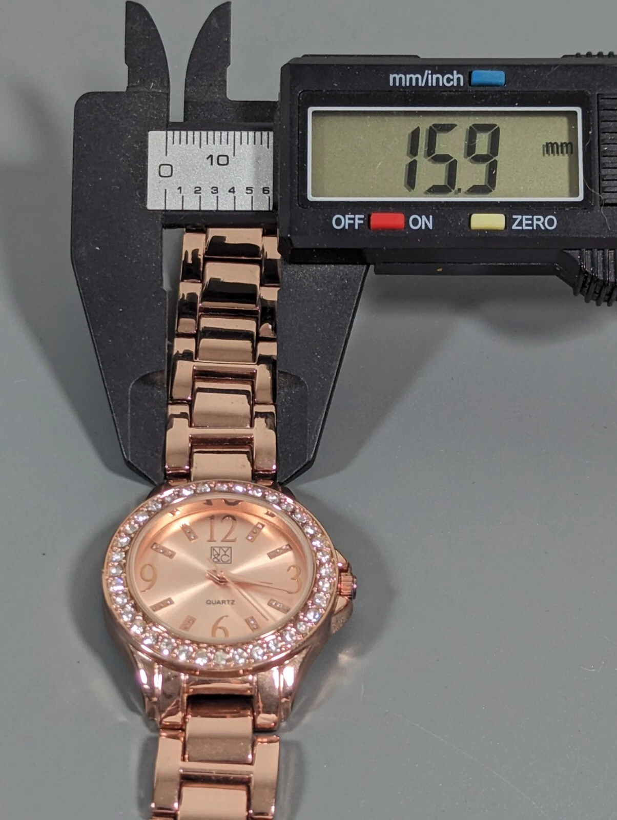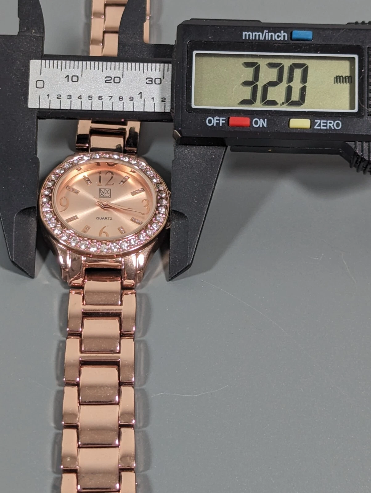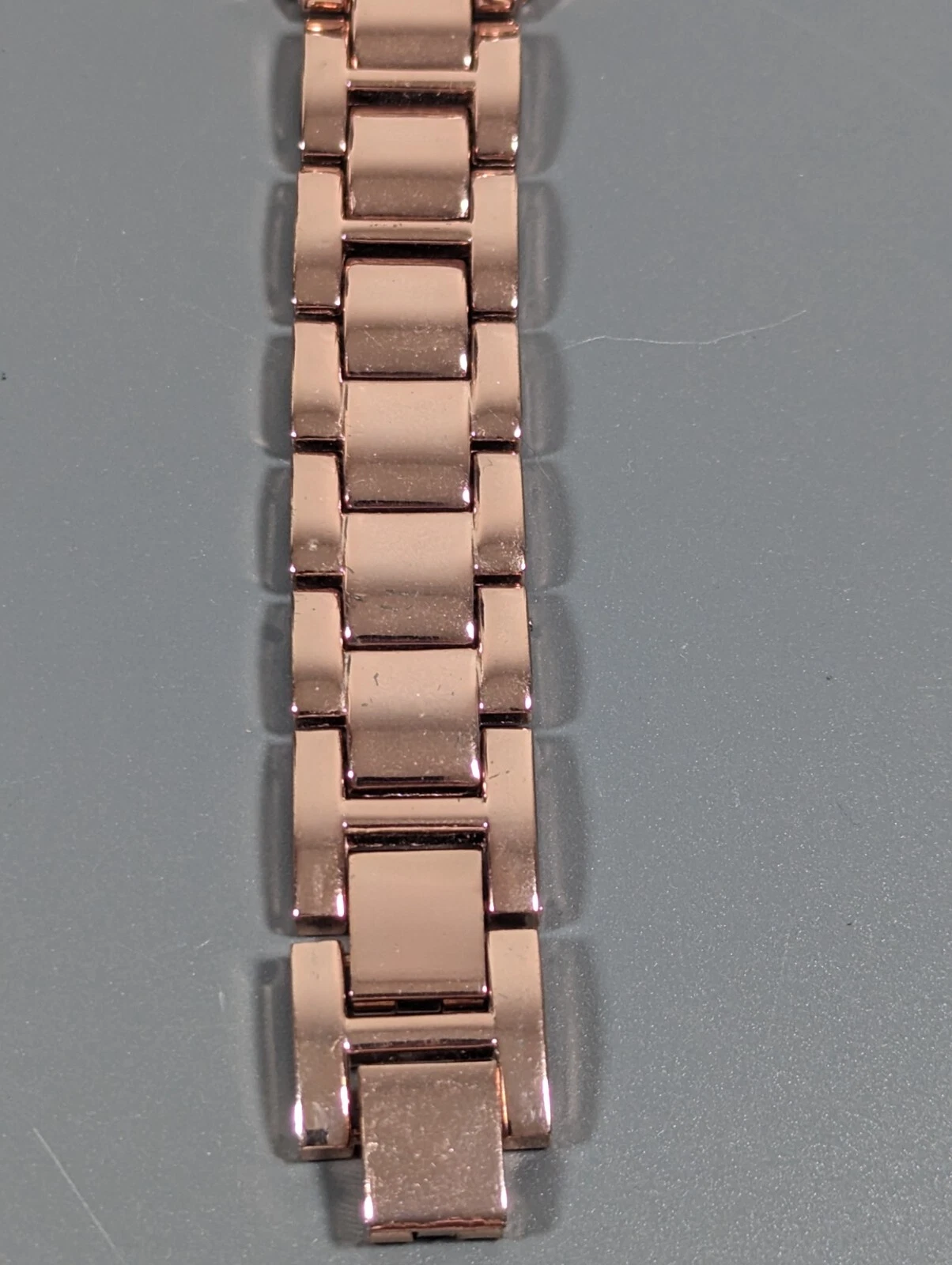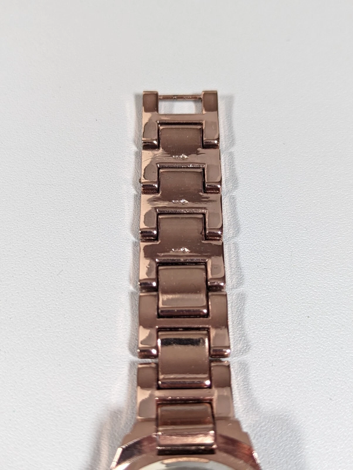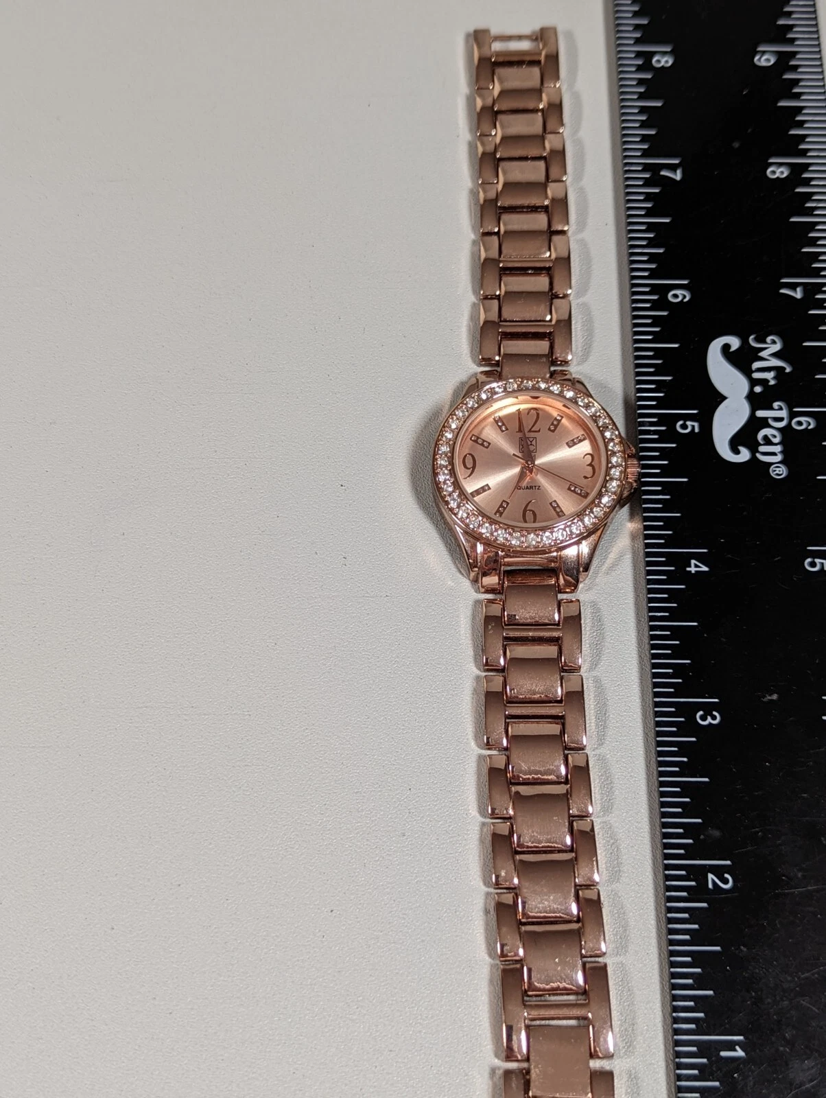 NYC Rose Gold Tone Round Crystal Accent Case Link Bracelet Band Watch Womans 8in
