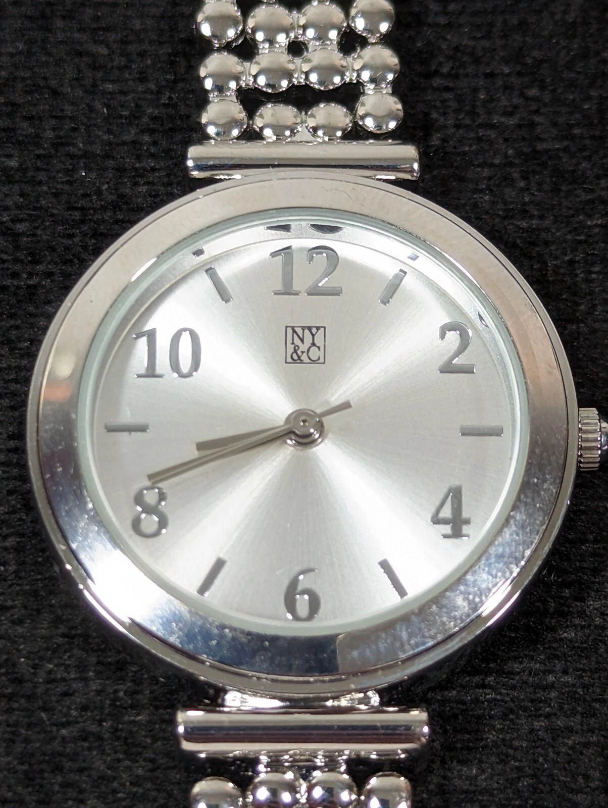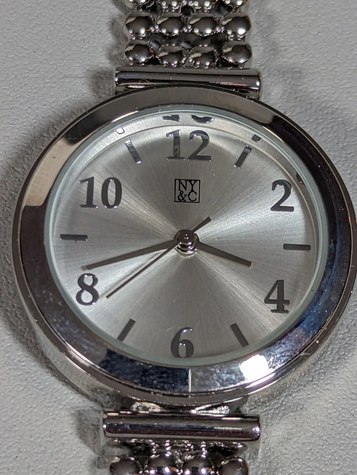 NYC Silver Tone Dial Round Case Sphere Link Bracelet Band Watch 7.5 Inch