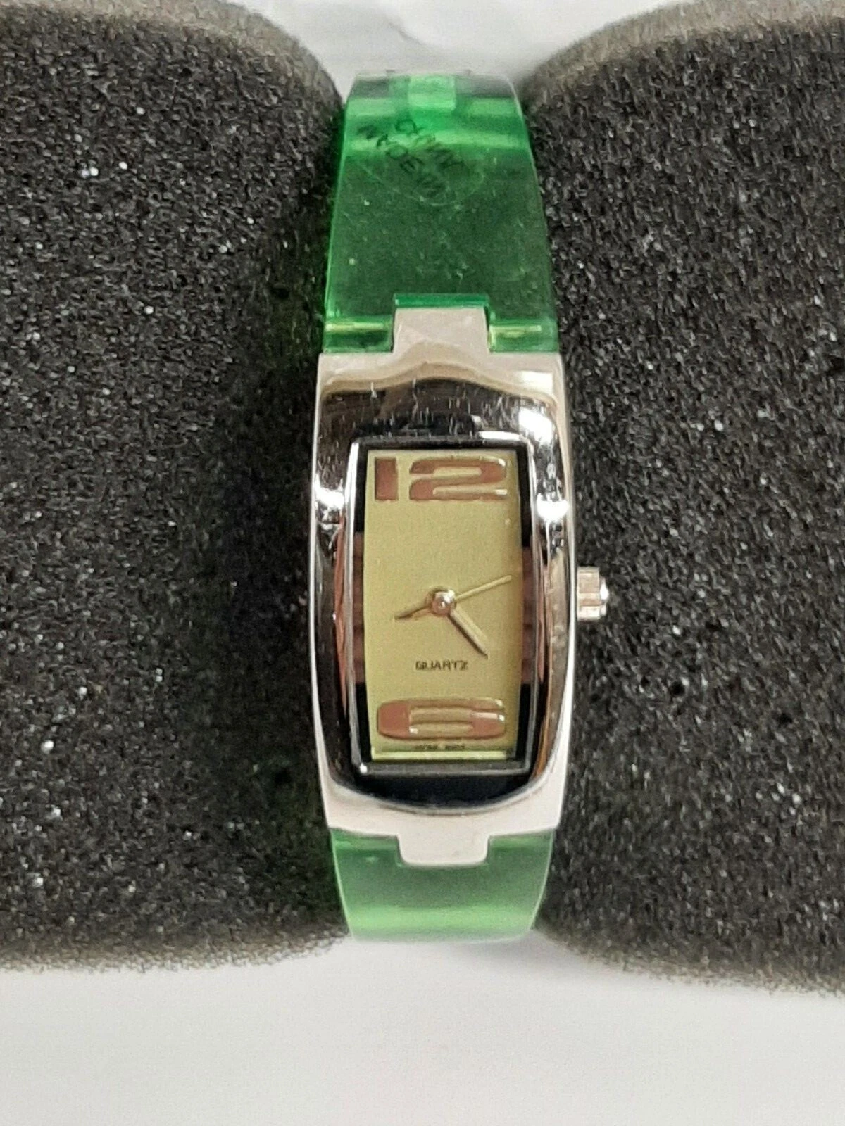 No Boundaries Ladies Watch ~ Green Acrylic Latching Bangle - WORKS (Lot 13-1163)