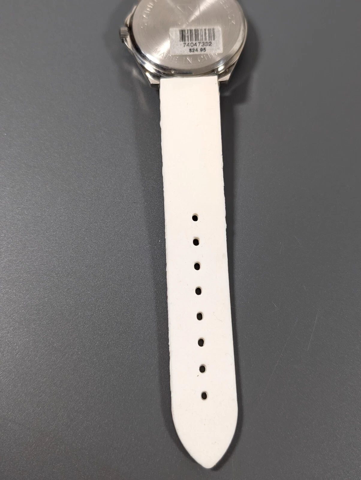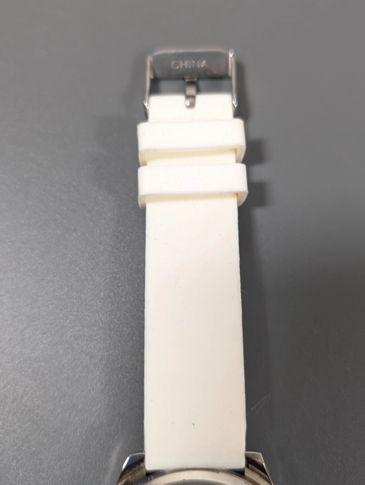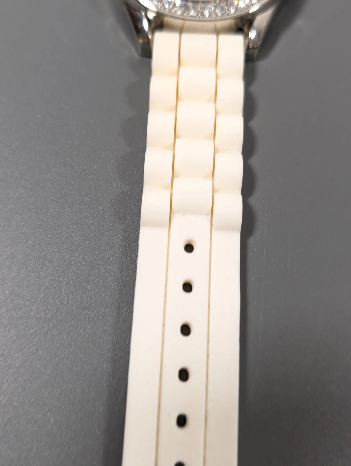 NY&C Crystal White Jelly Watch Rubber Silicone Band Silver Tone Faux Chrono