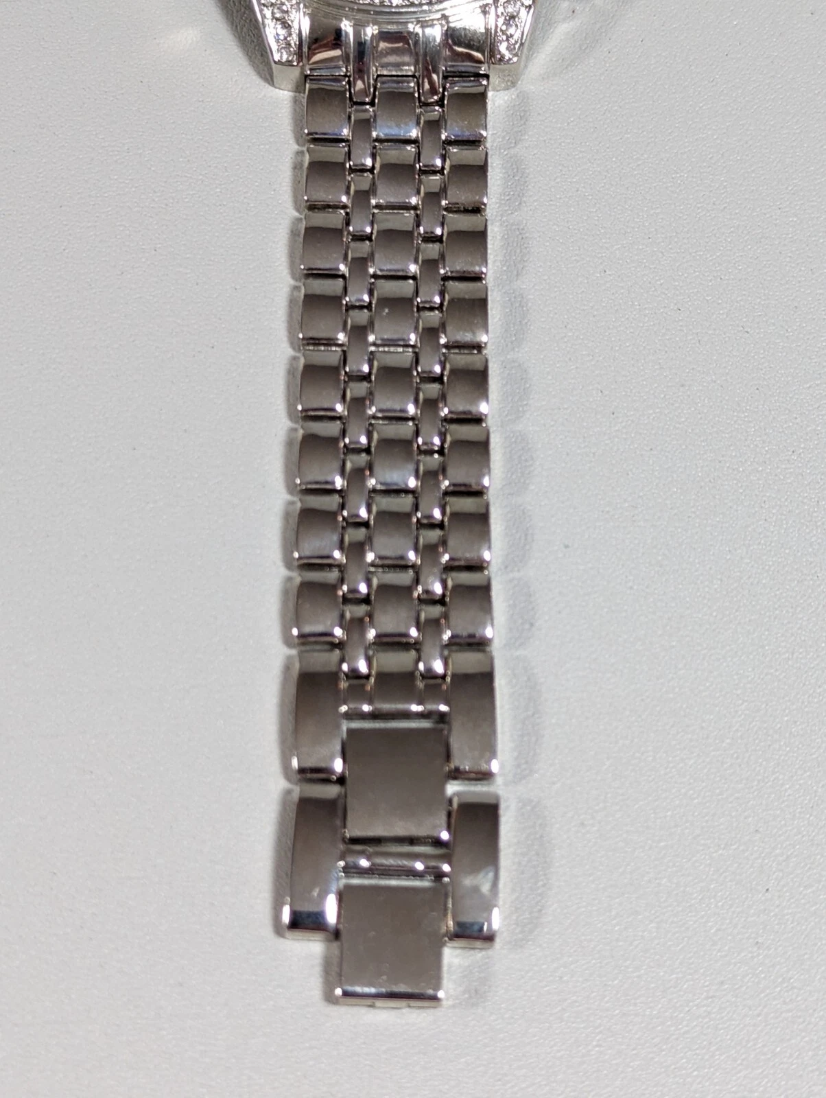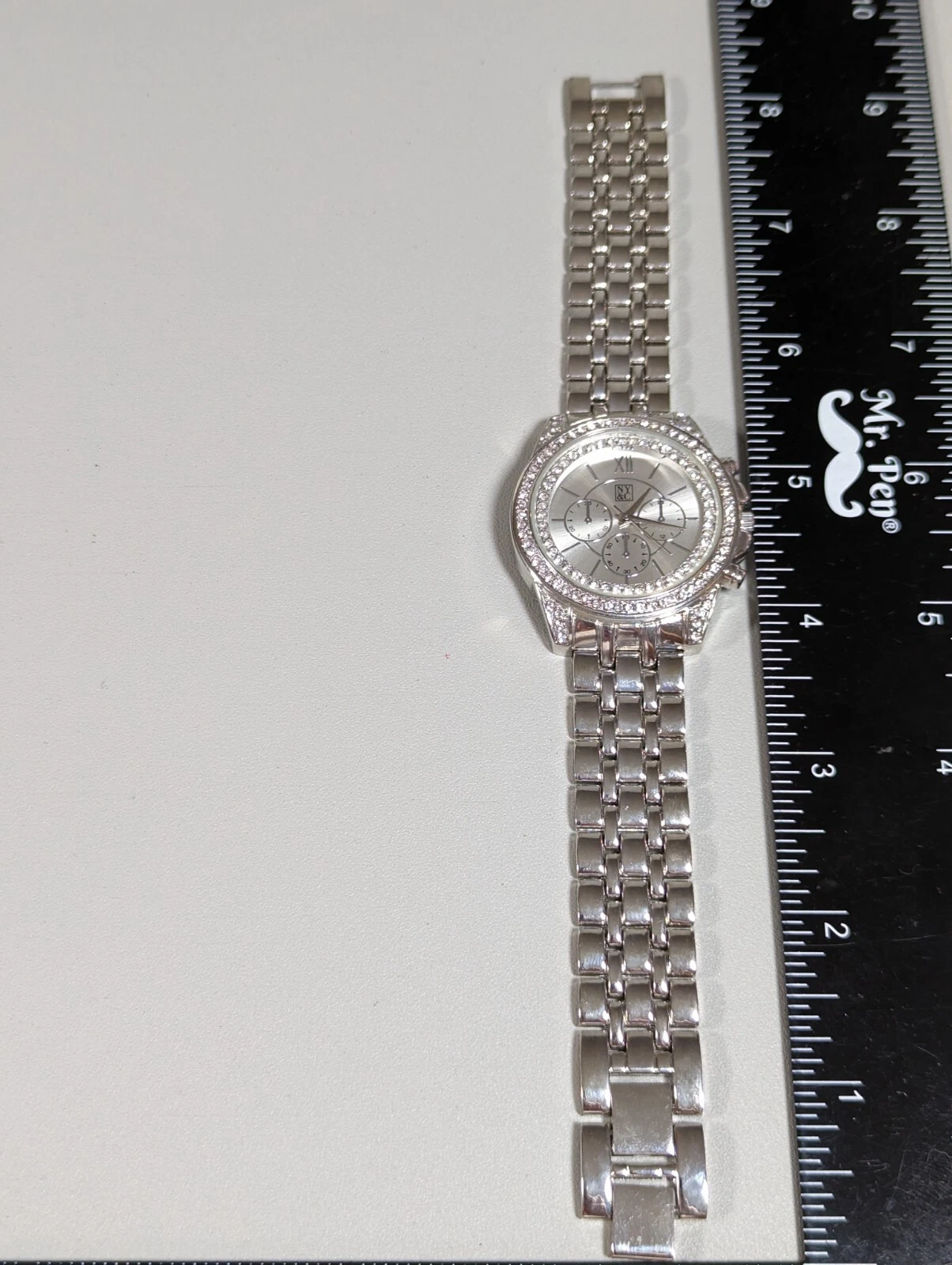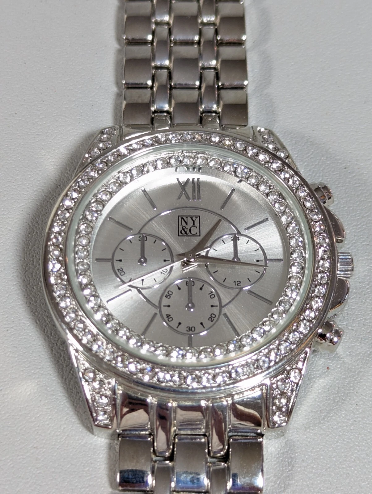 NYC Silver Tone Dial Crystal Accent Round Case Stainless Link Bracelet Watch
