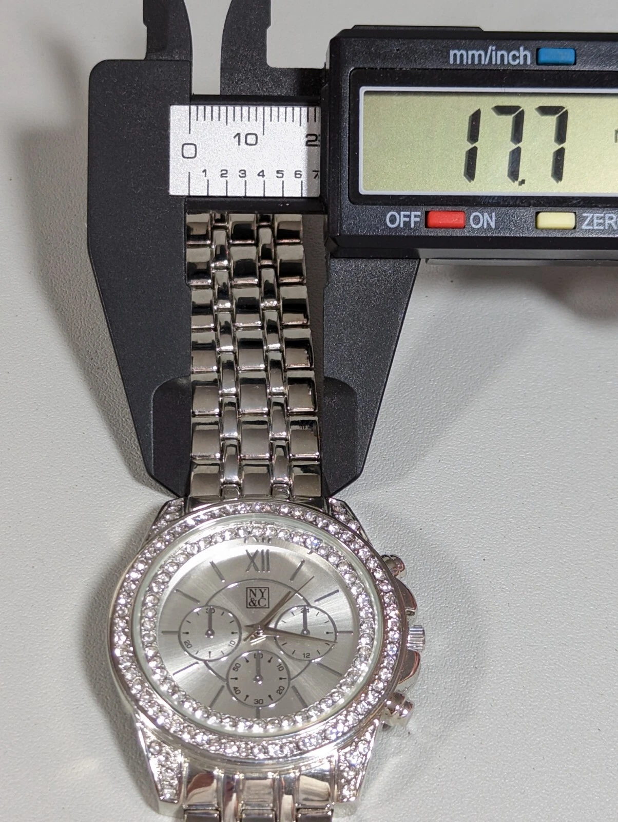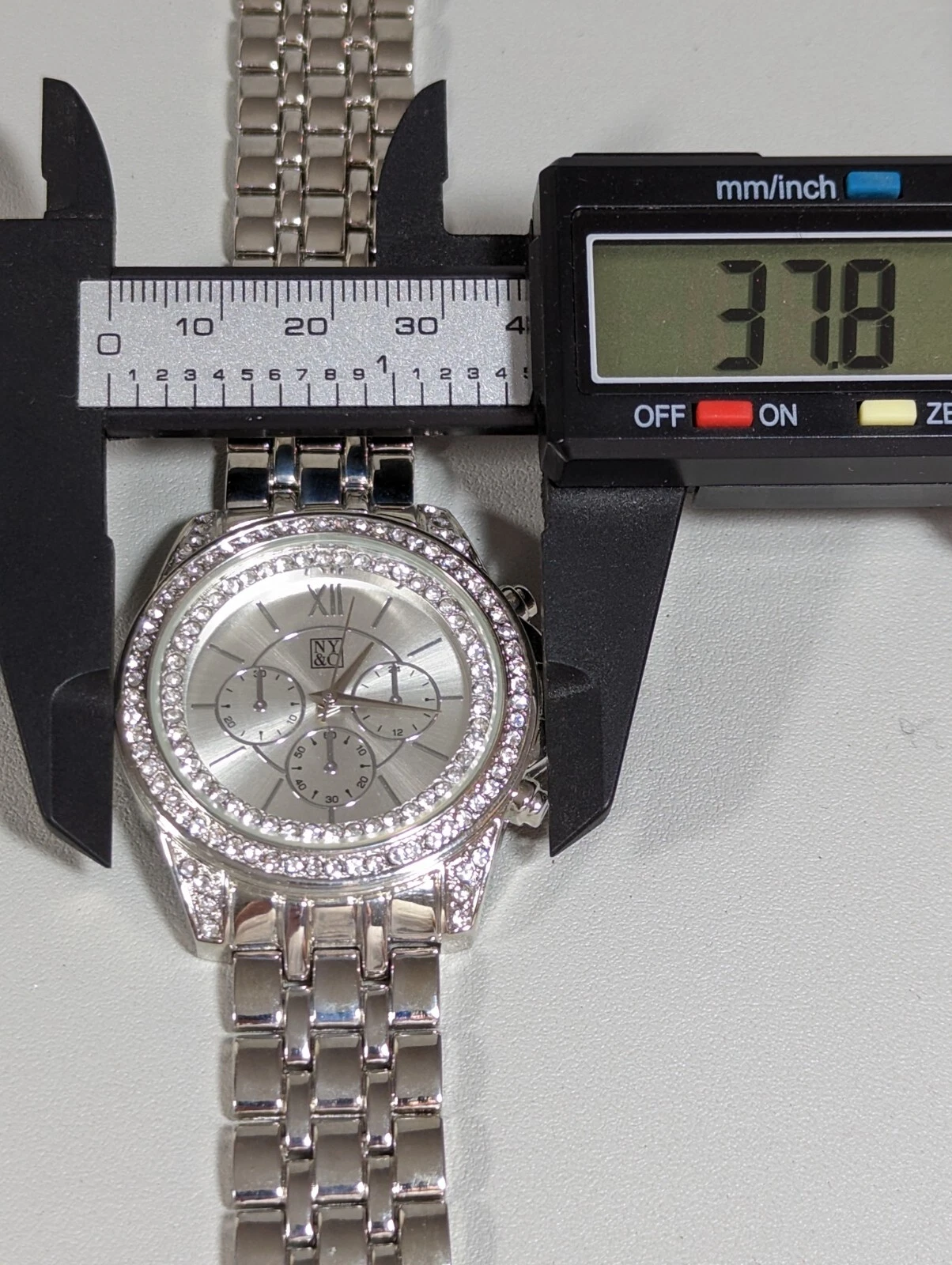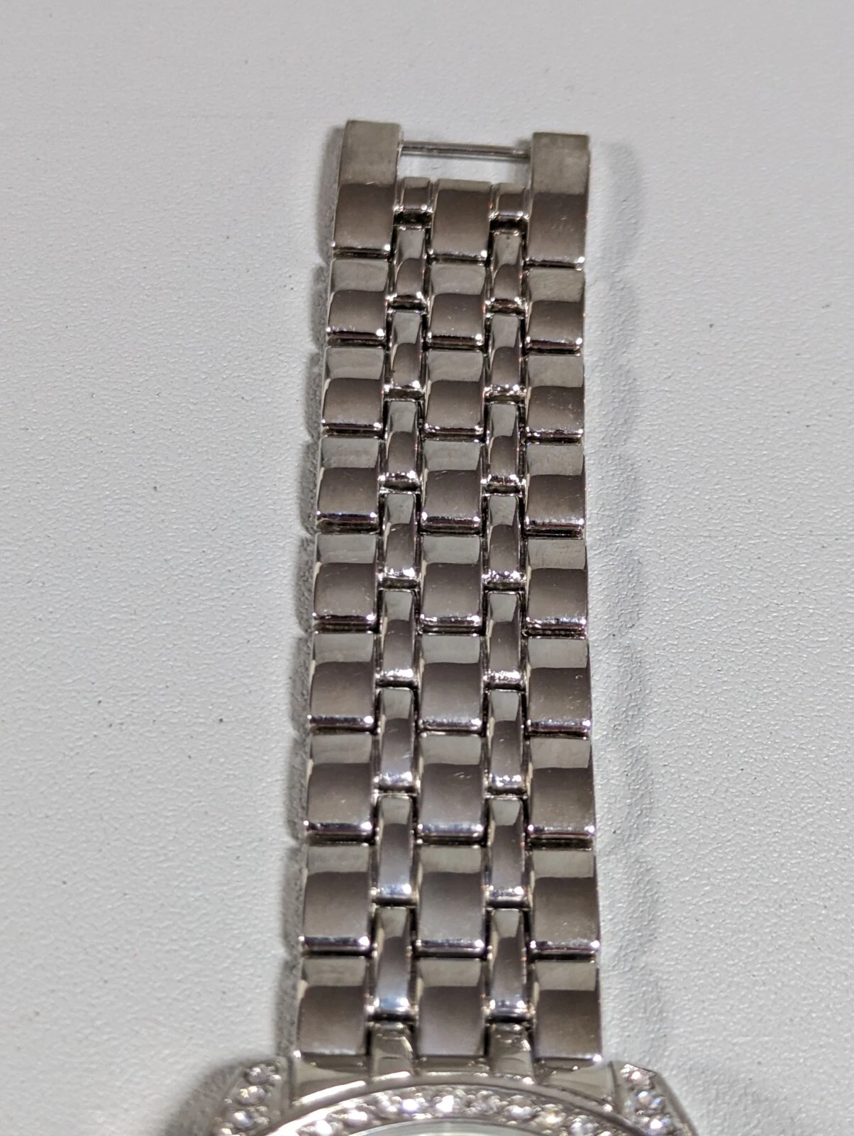 NYC Silver Tone Dial Crystal Accent Round Case Stainless Link Bracelet Watch