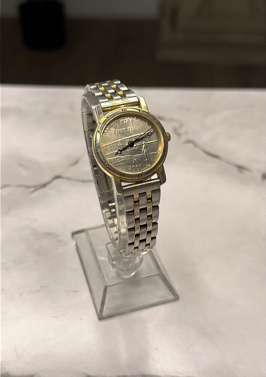 Vintage State Statehood Quarter Coin Wrist Watch 2001 North Carolina Two Tone