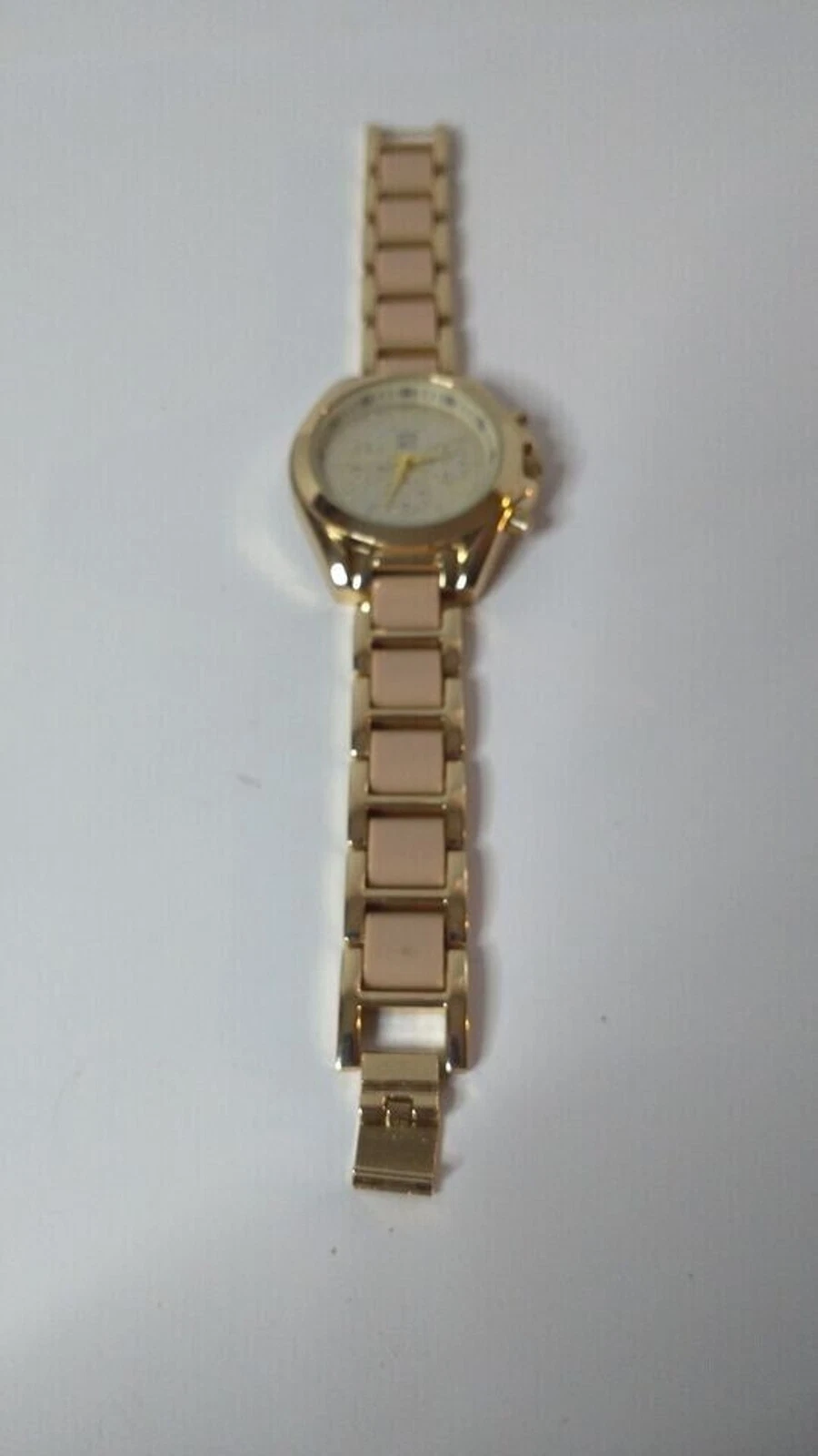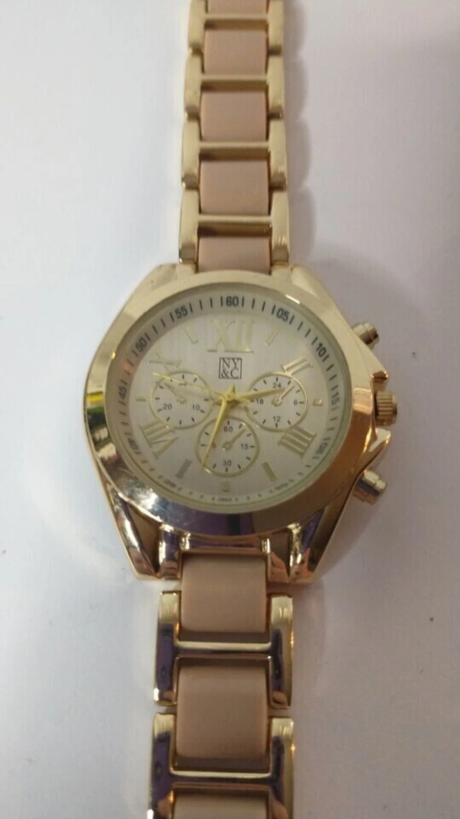 Women's 40mm Rose Gold NY&C Watch, Multifunction Look, Beige Resin Accented Band