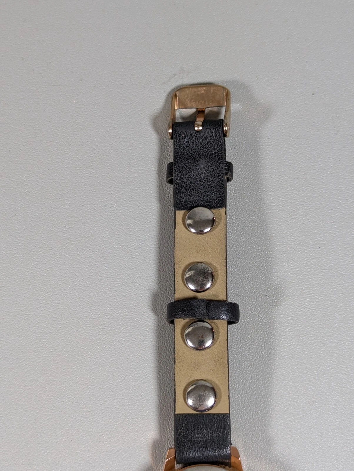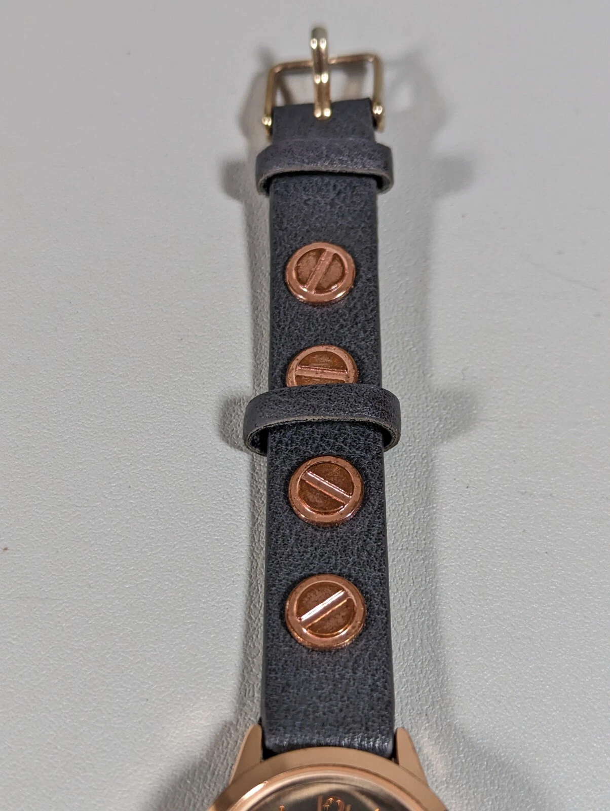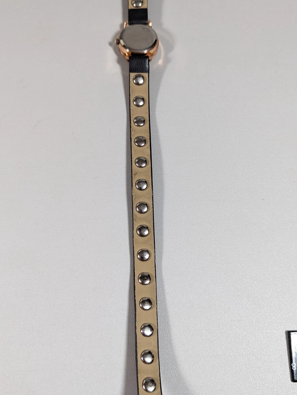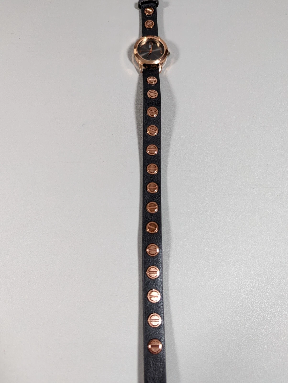 NYC Round Gold Tone Case Studded Gray Faux Leather Wrap Bracelet Band Watch 16"