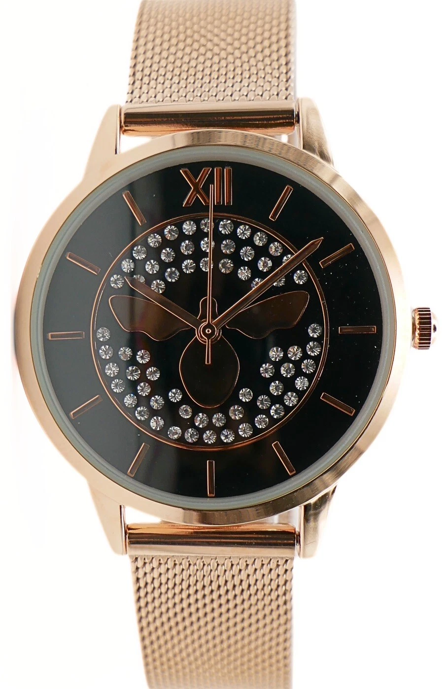 NY LONDON Ross Gold Bee women Fashion Metal Mesh Strap Date Analog Quartz Watch