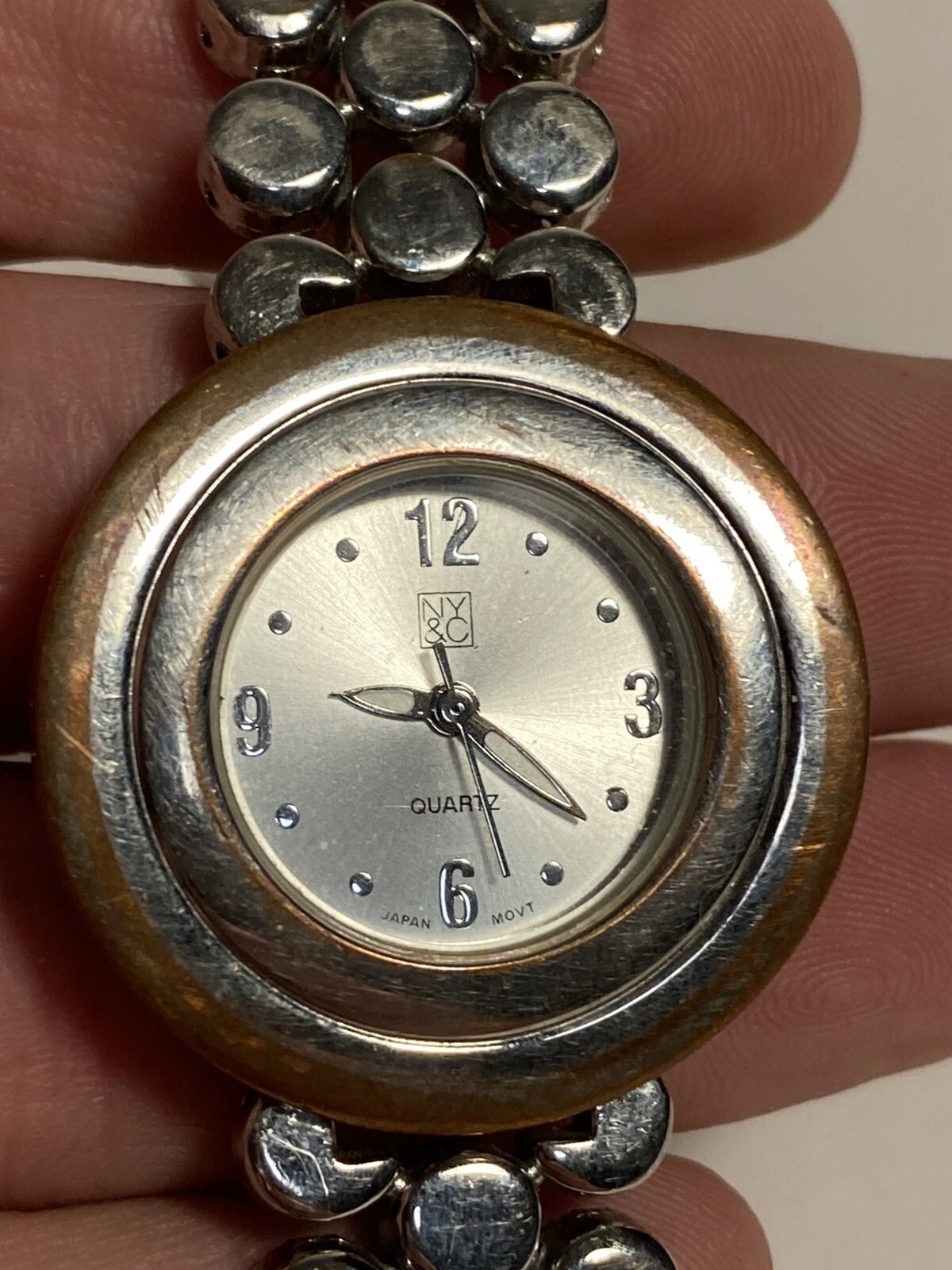 NY&C Women’s Silver Tone Wrist Watch Quartz Round Dot Link stainless steel band