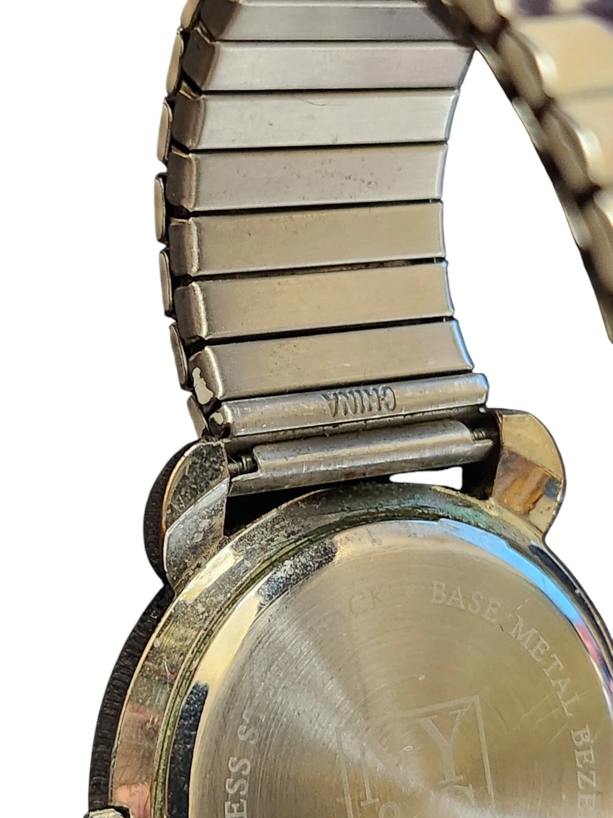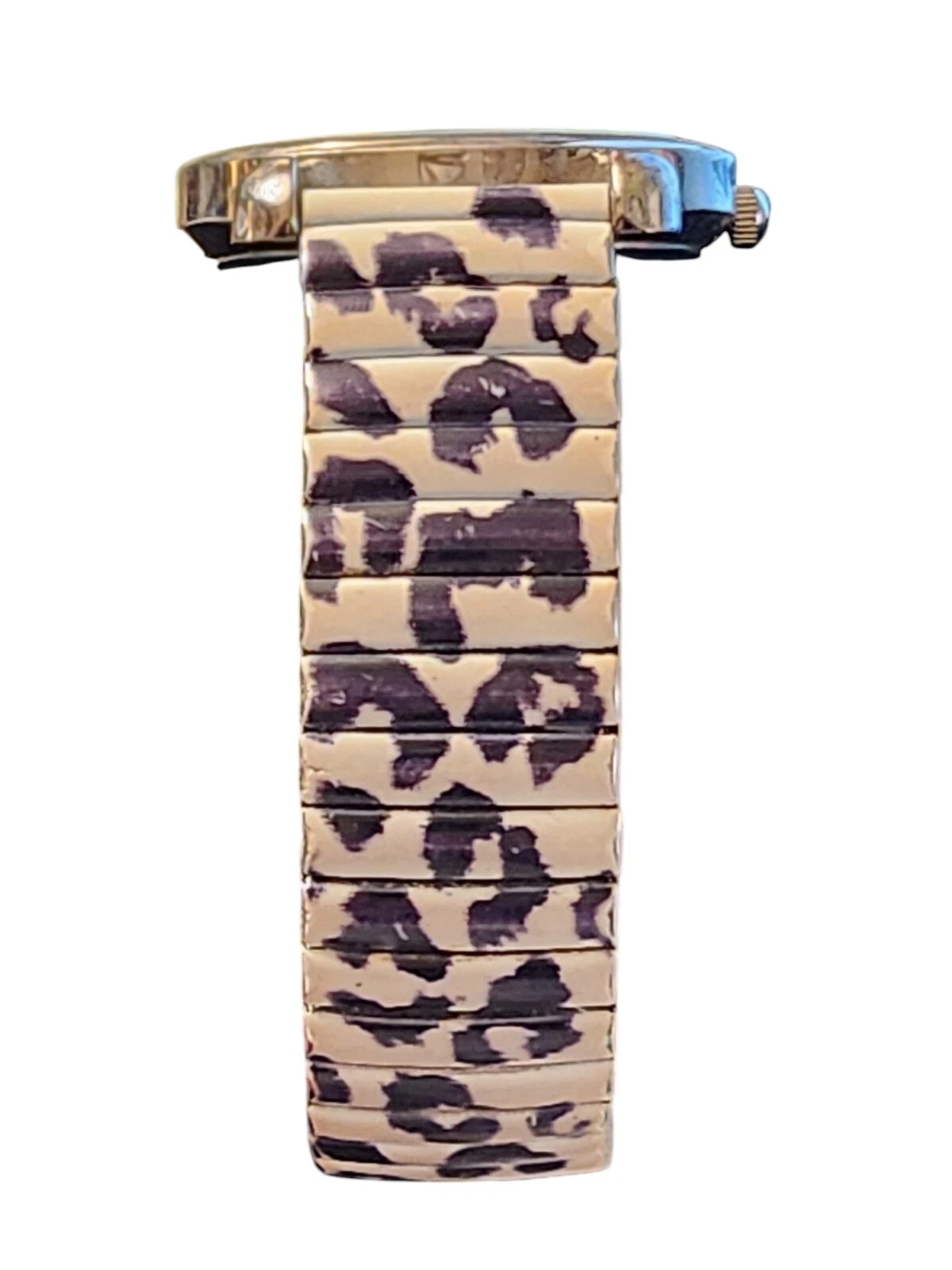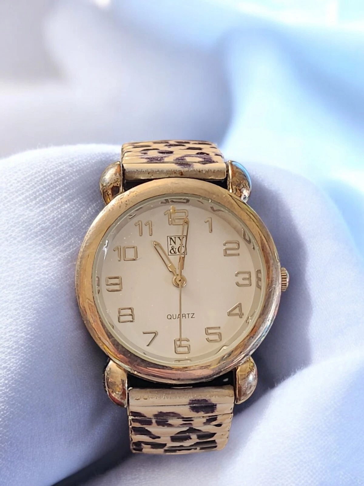 Vintage New York & Co. Quartz Silver Tone Animal Print Stretch Watch Y2K Retro