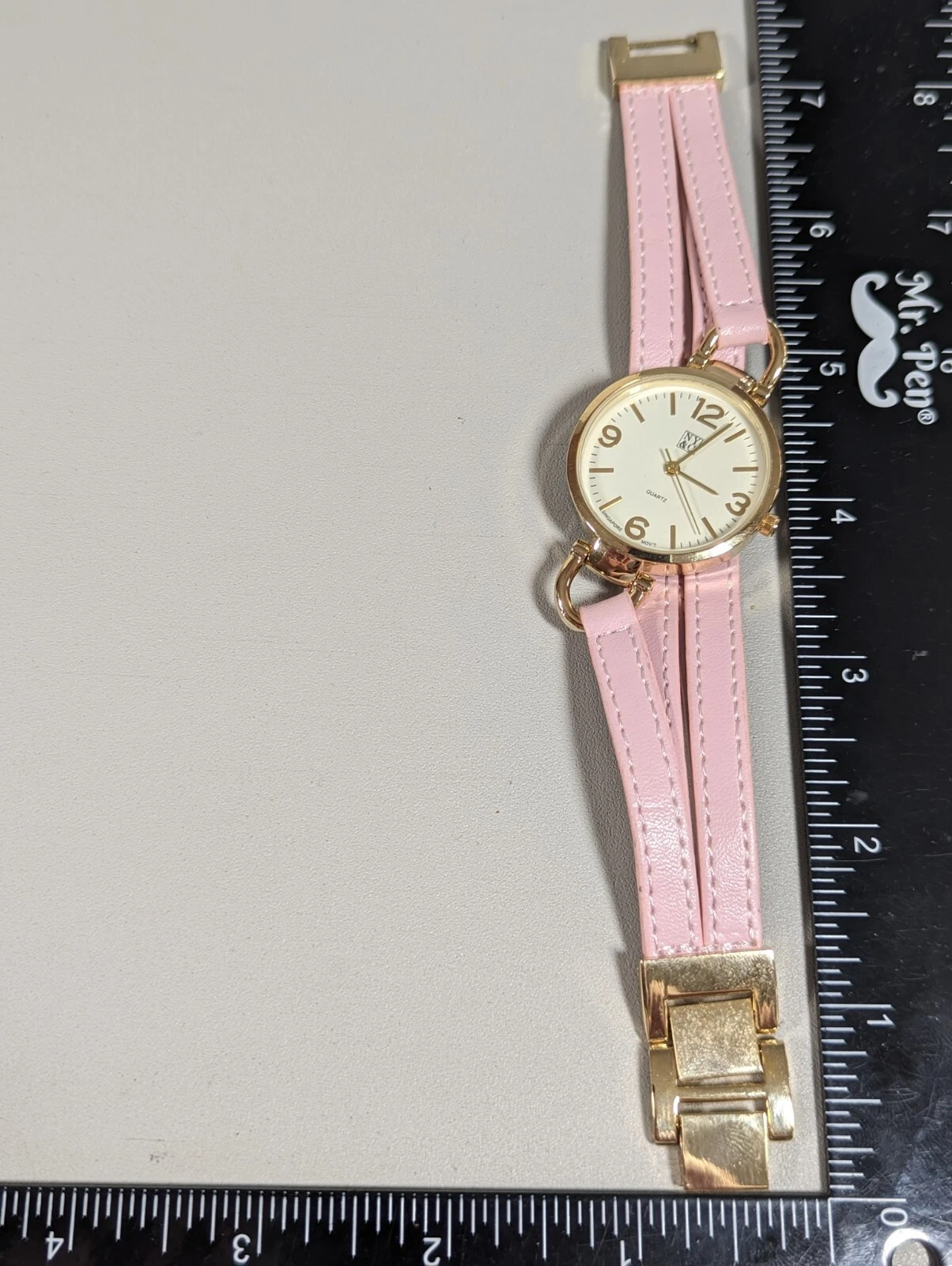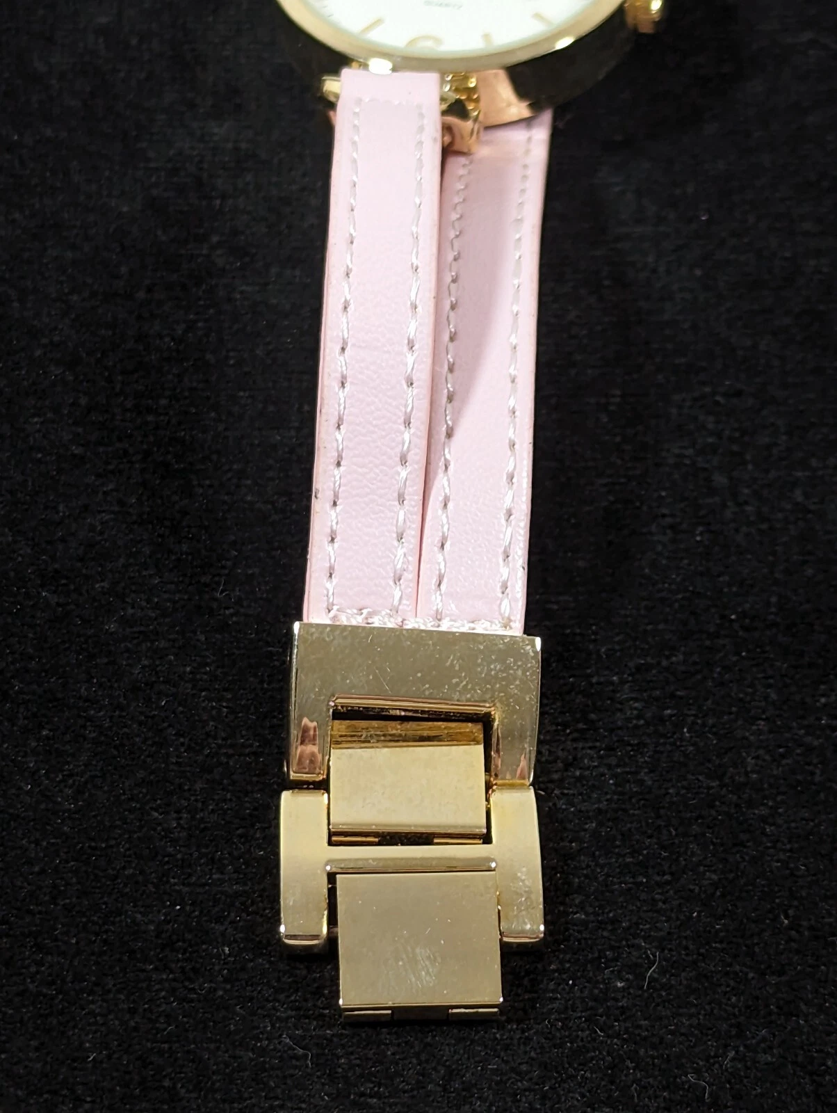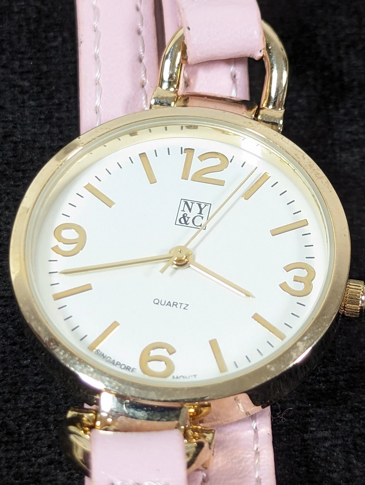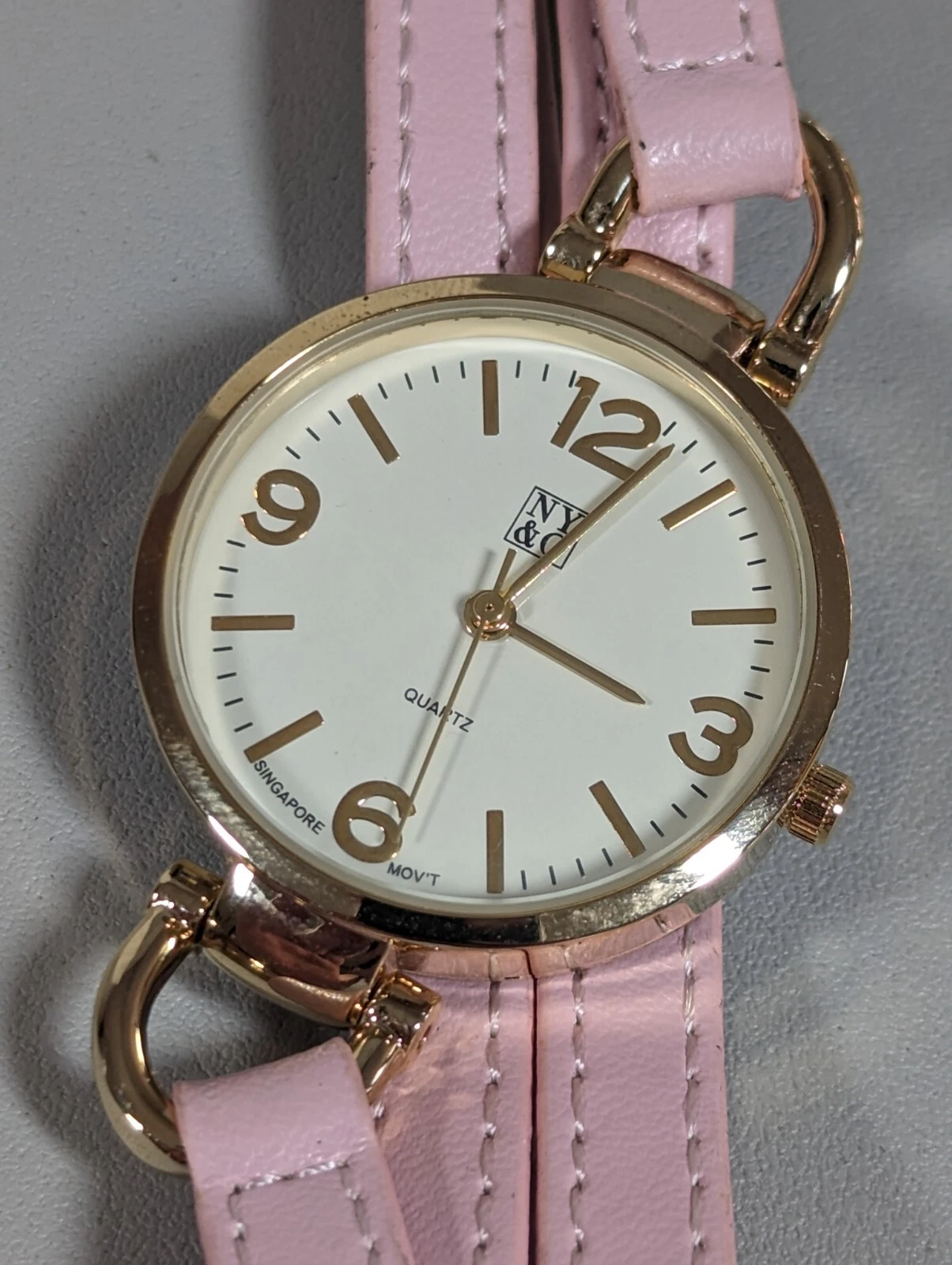 NYC White Dial Round Gold Tone Case Pink Multi Strand Faux Leather Band Watch