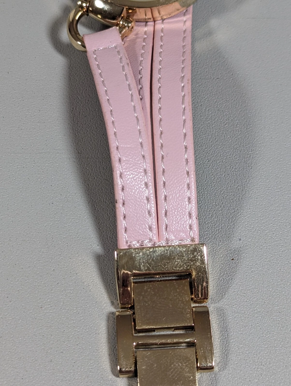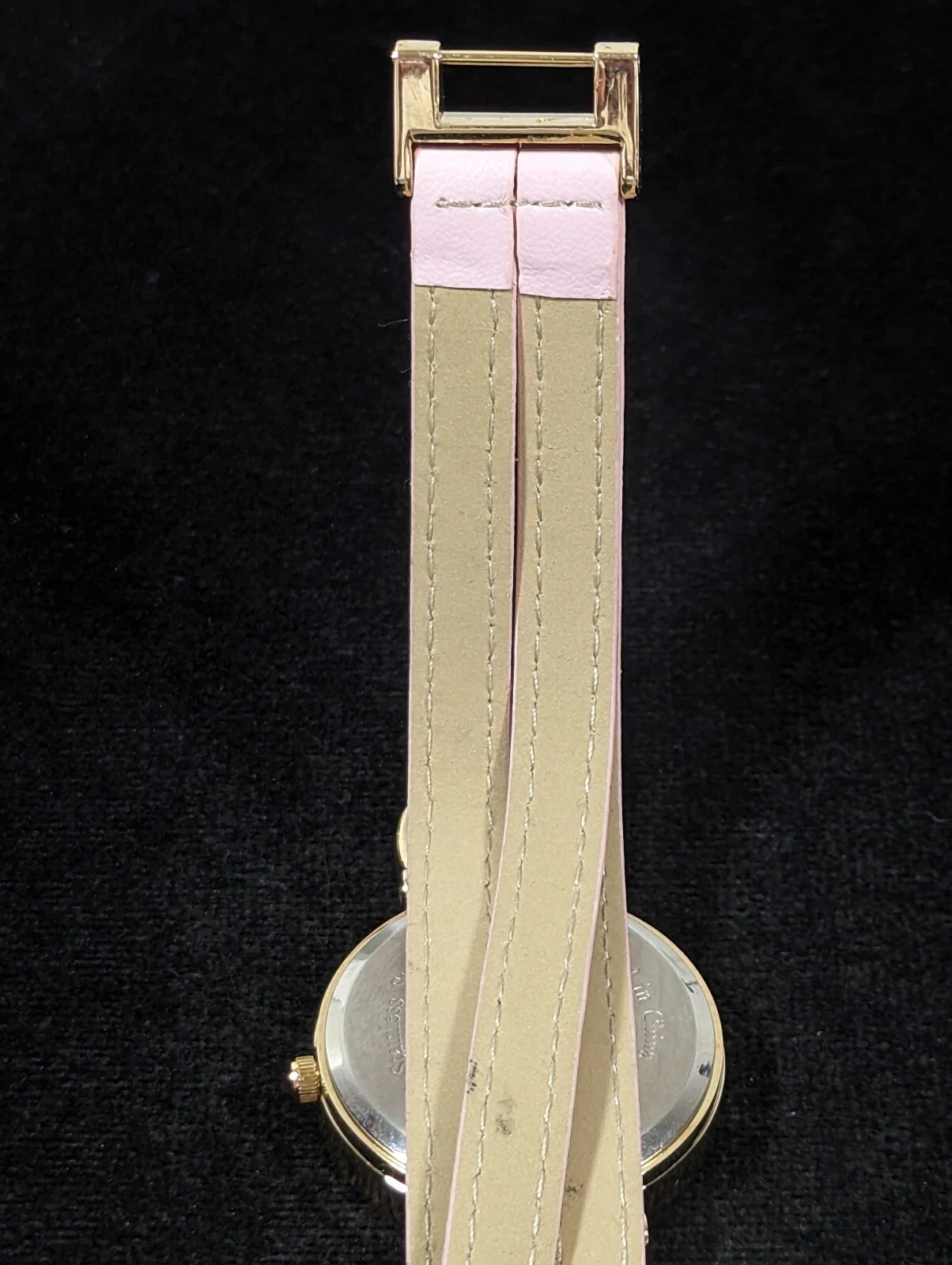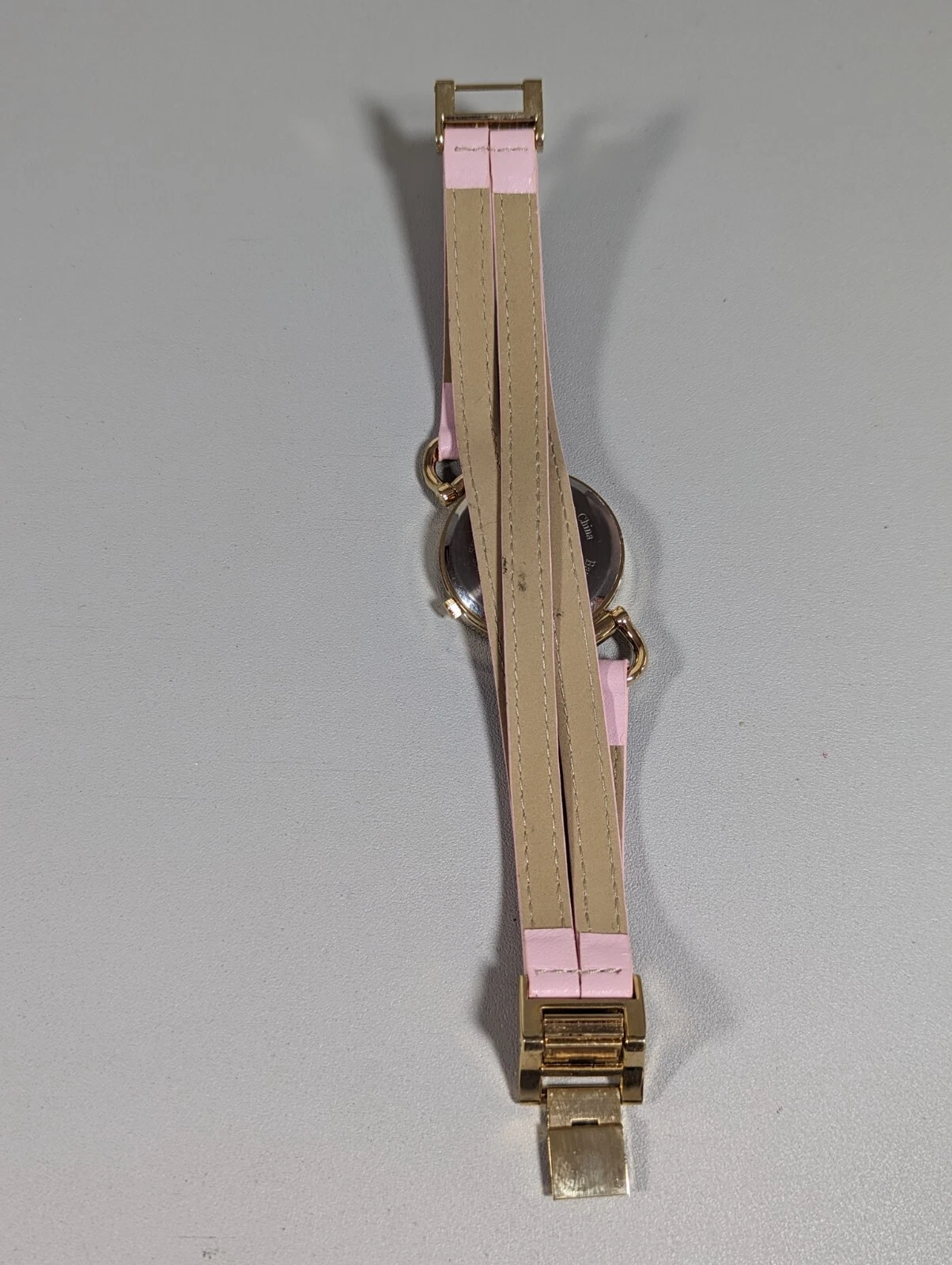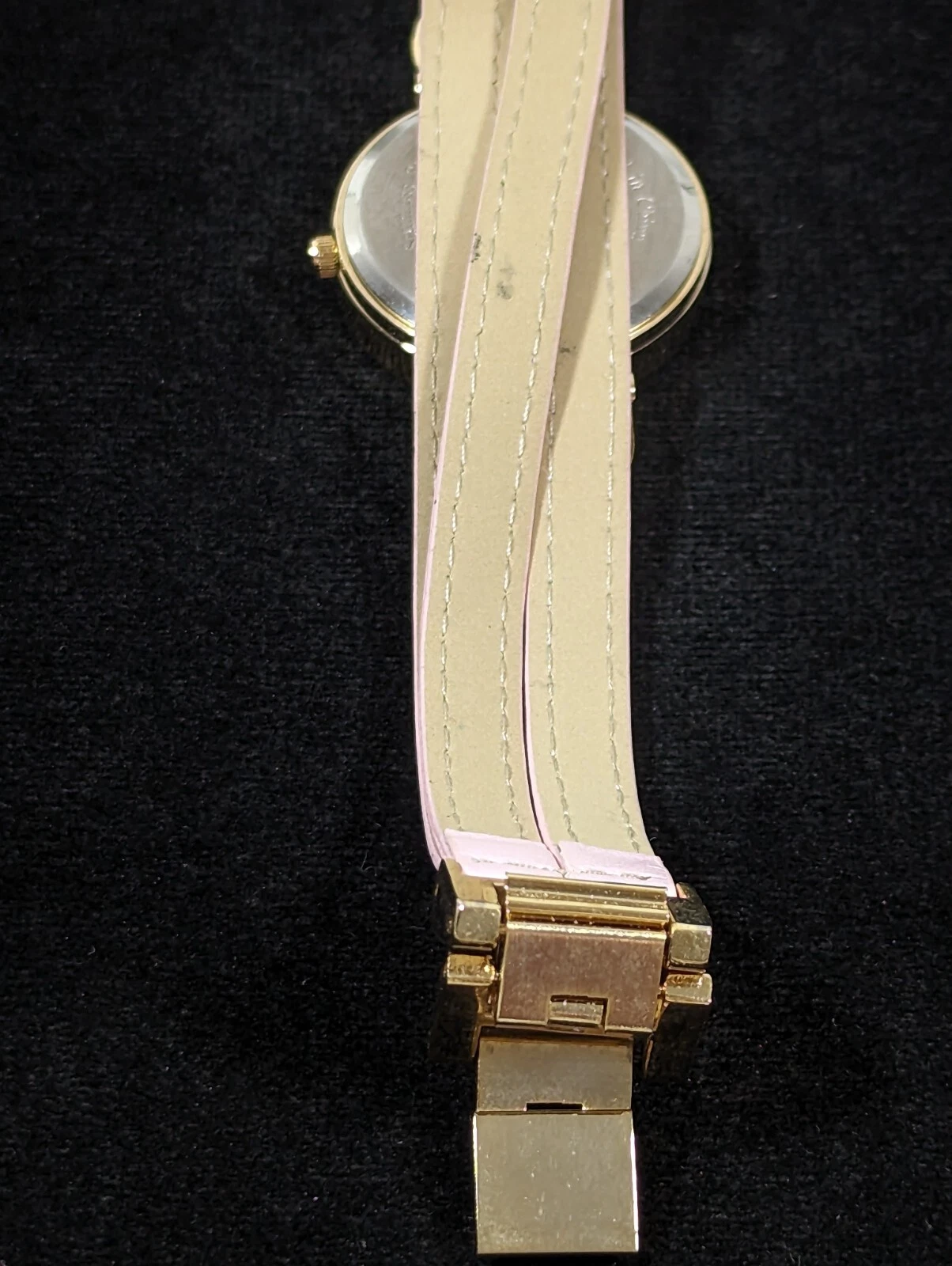 NYC White Dial Round Gold Tone Case Pink Multi Strand Faux Leather Band Watch