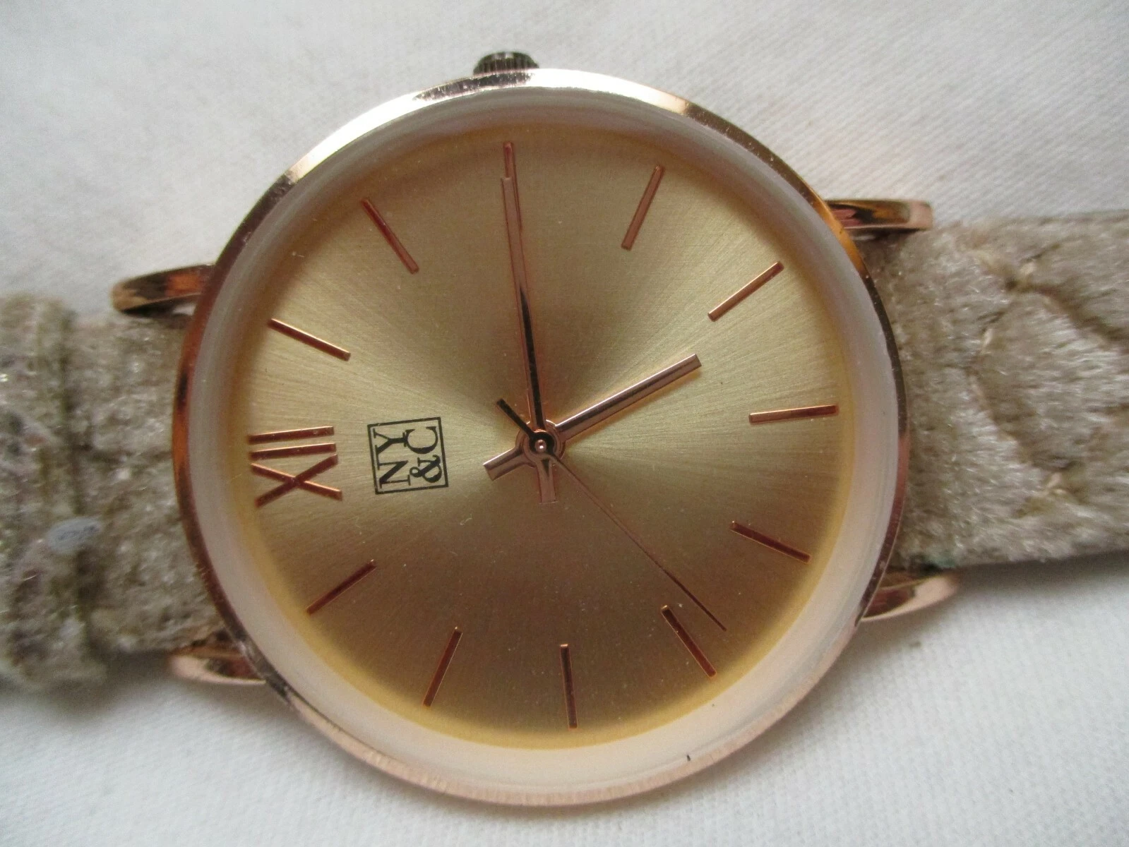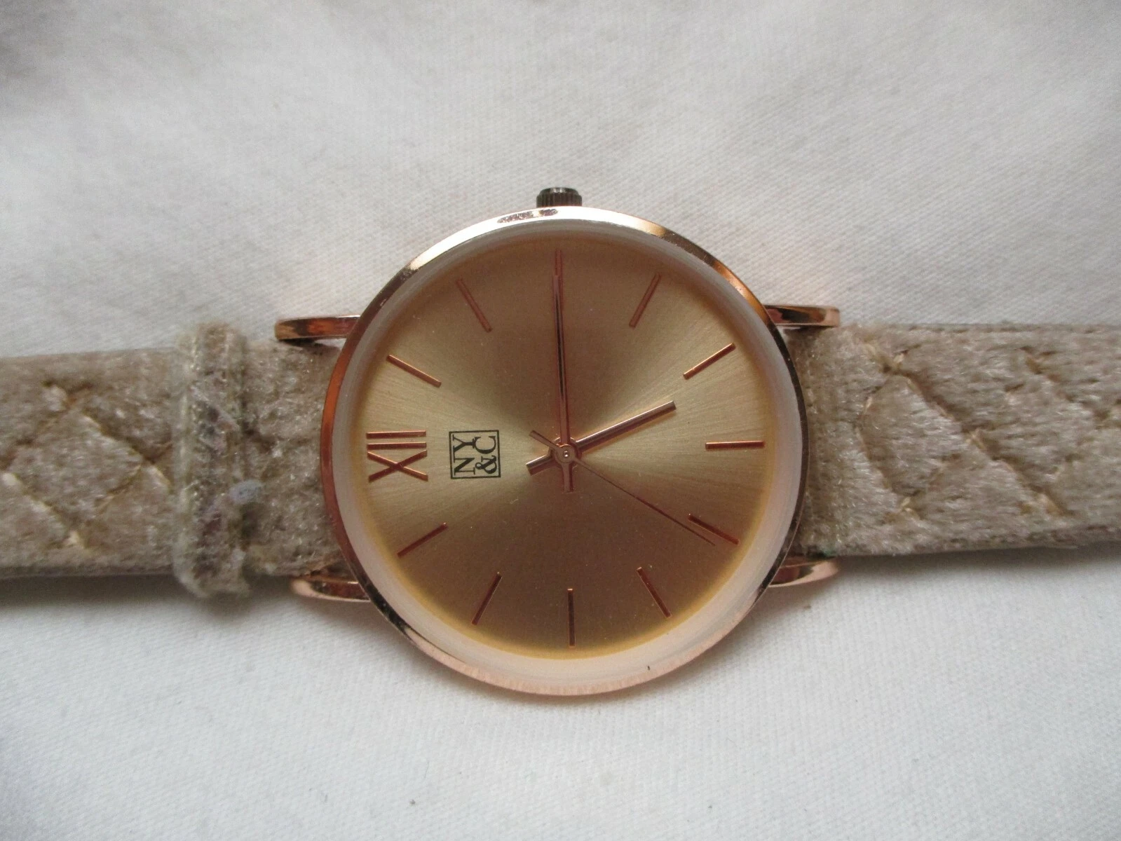 NYC Beige & Rose Gold Toned Wristwatch w/ Adjustable Buckle Band