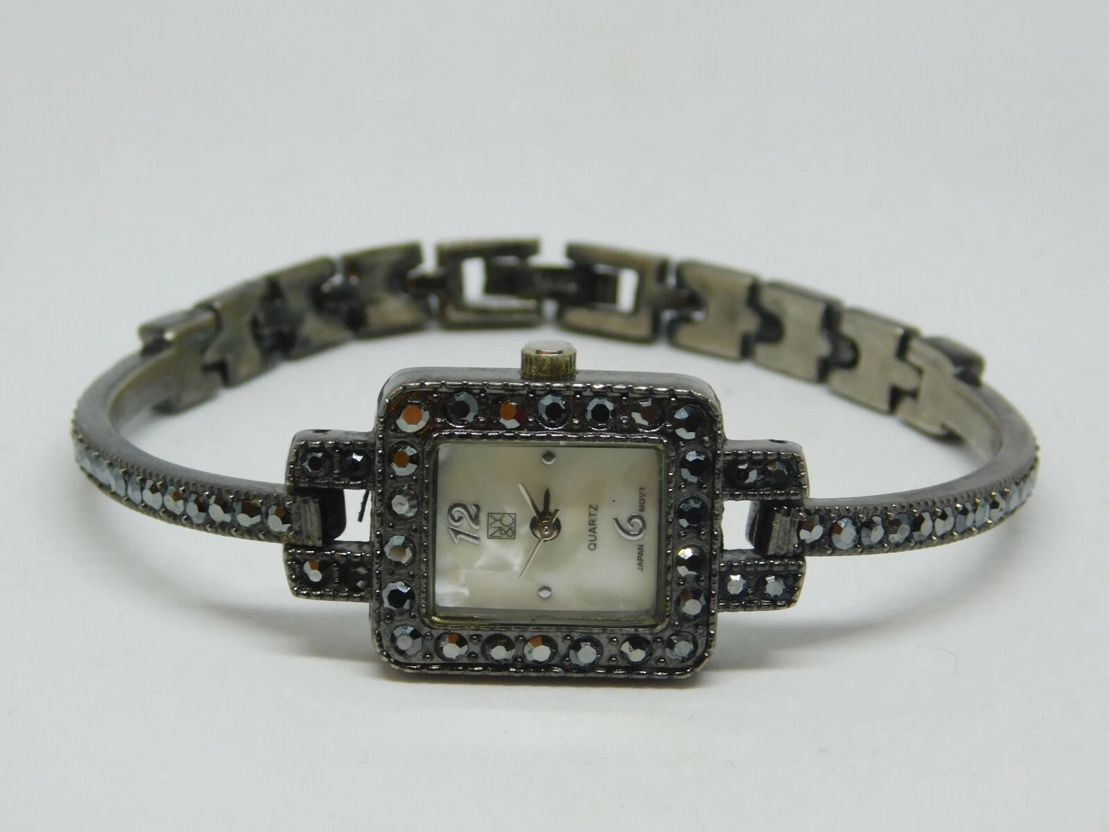 NY&C Marcasite's Dark Tone Quartz Analog Women's Watch Sz. 6 1/2" New Battery