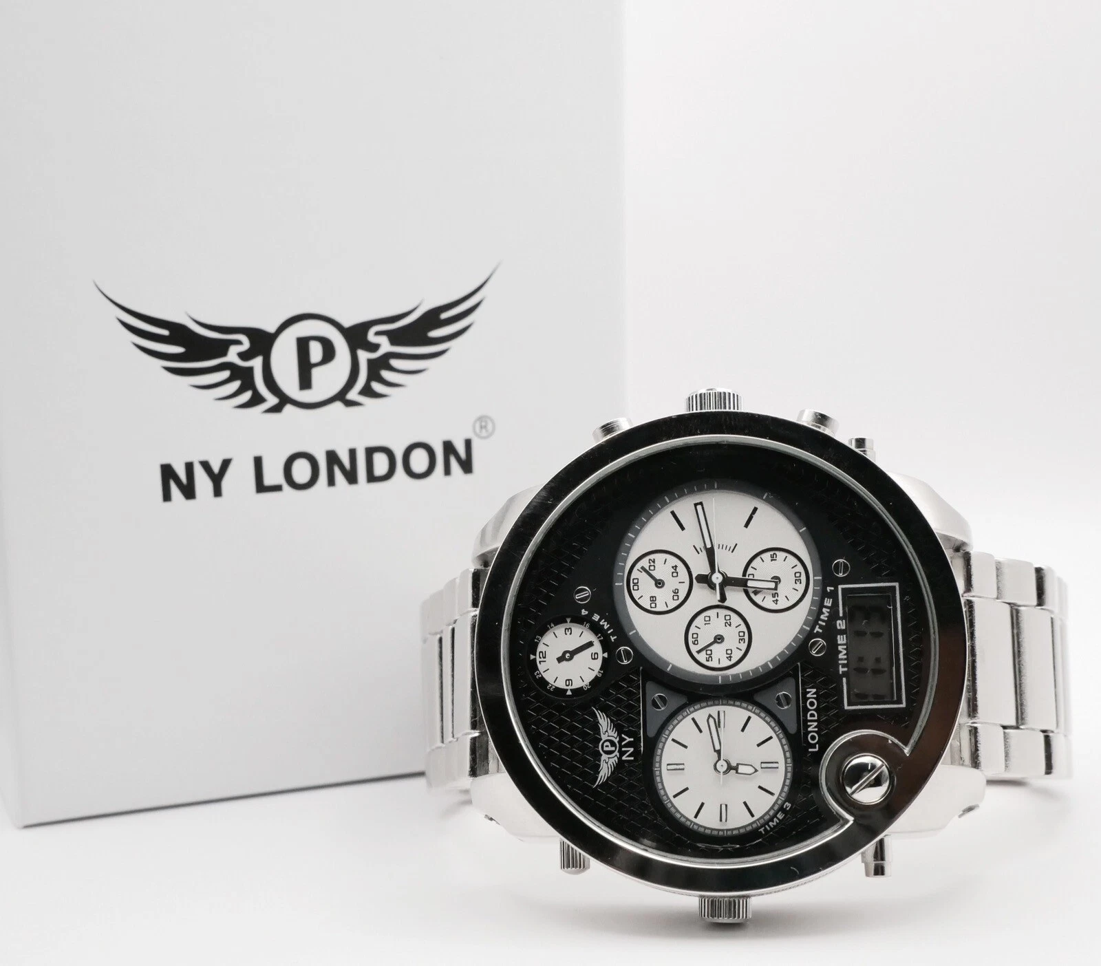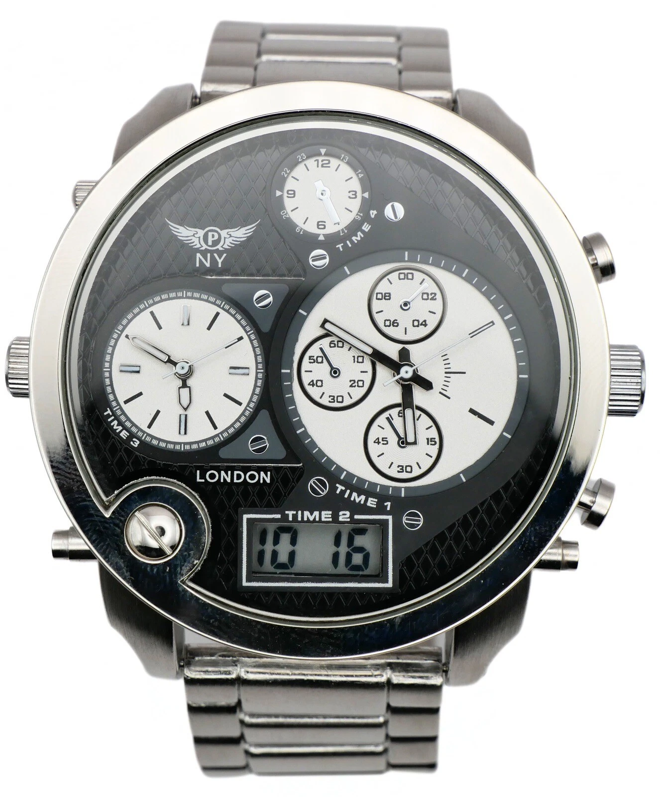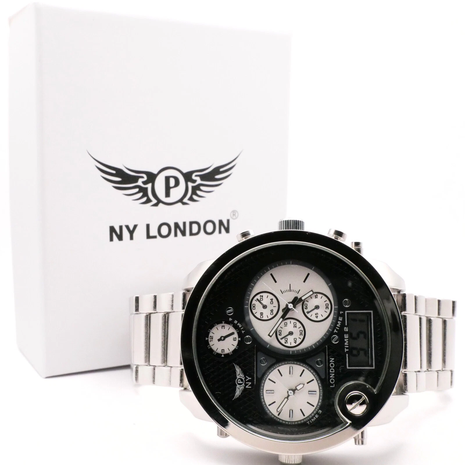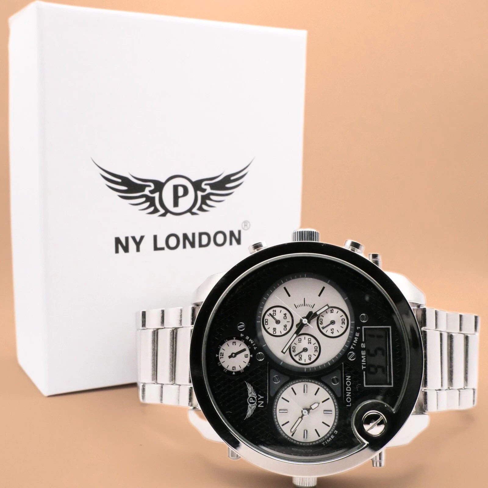 NY LONDON Silver and Black face Men’s Metal Strap Date Analog and Digital Quartz