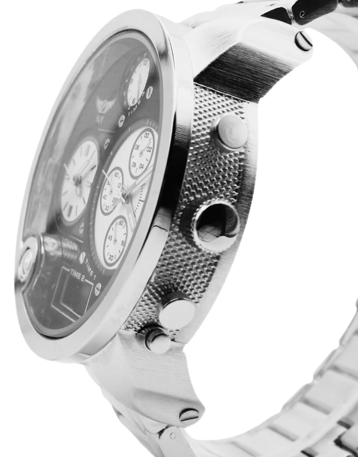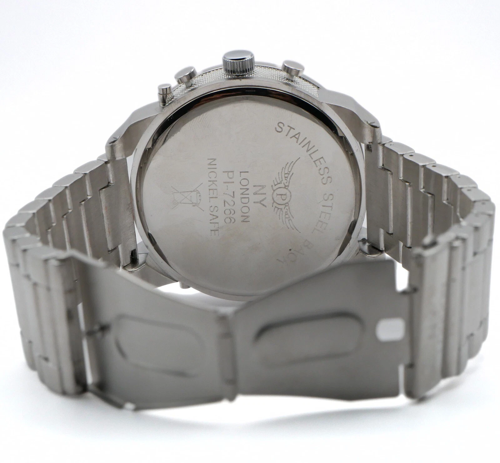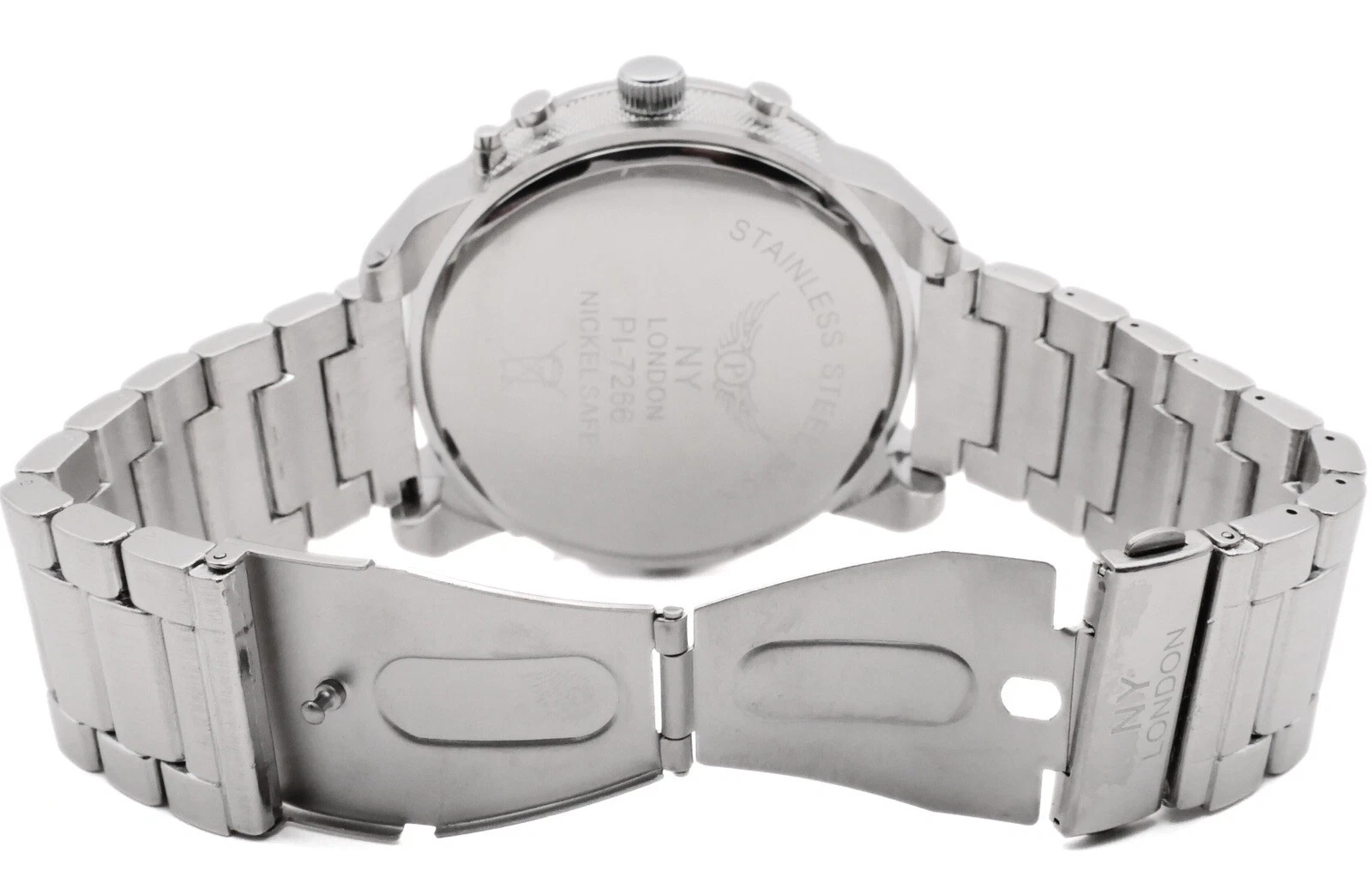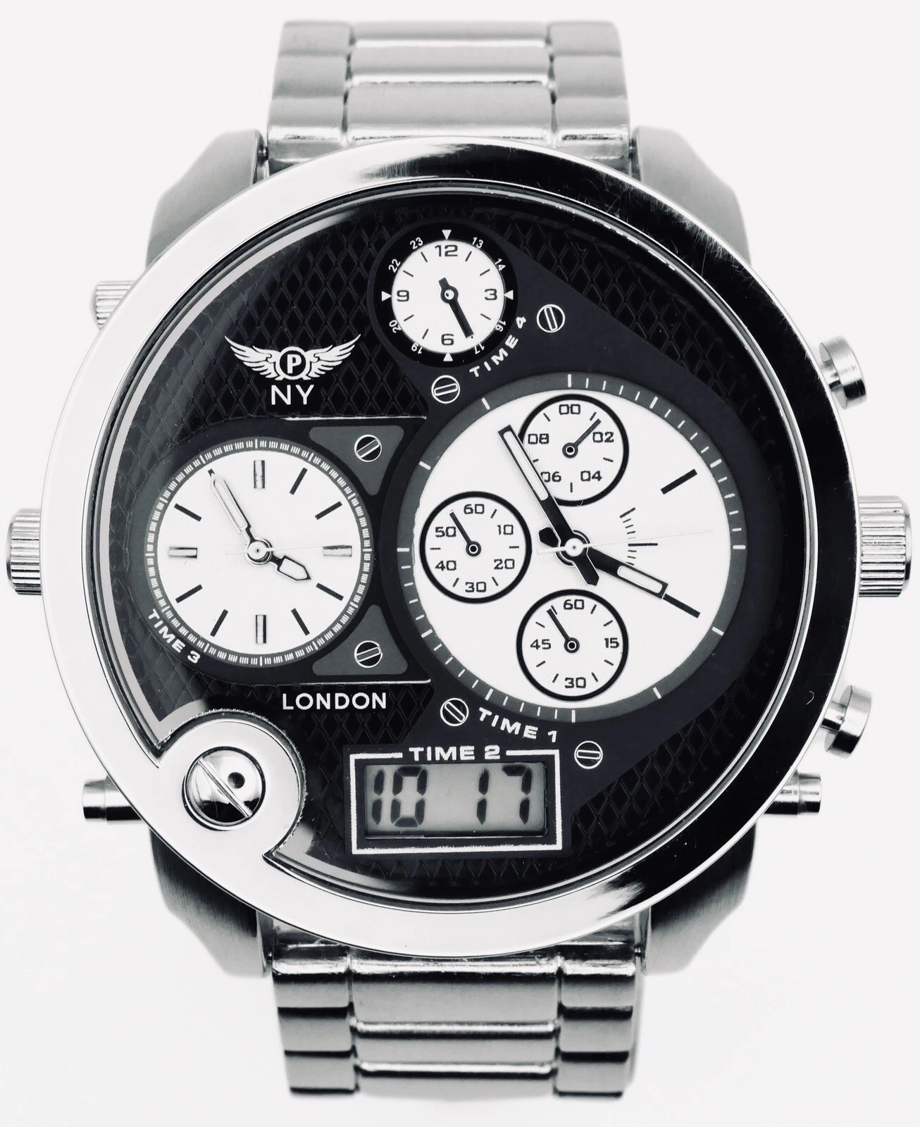 NY LONDON Silver and Black face Men’s Metal Strap Date Analog and Digital Quartz