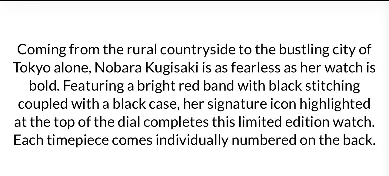 New Meister MSTR JuJuTsu Kaisen Limited Edition Watch Nobra Kugisaki Crunchyroll