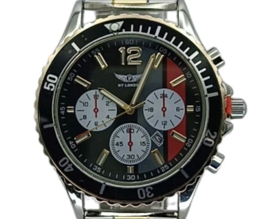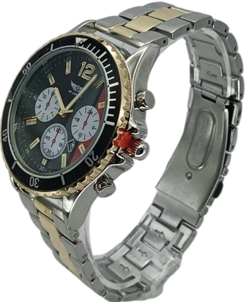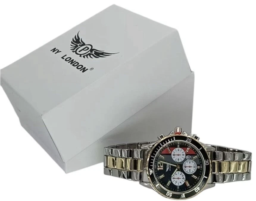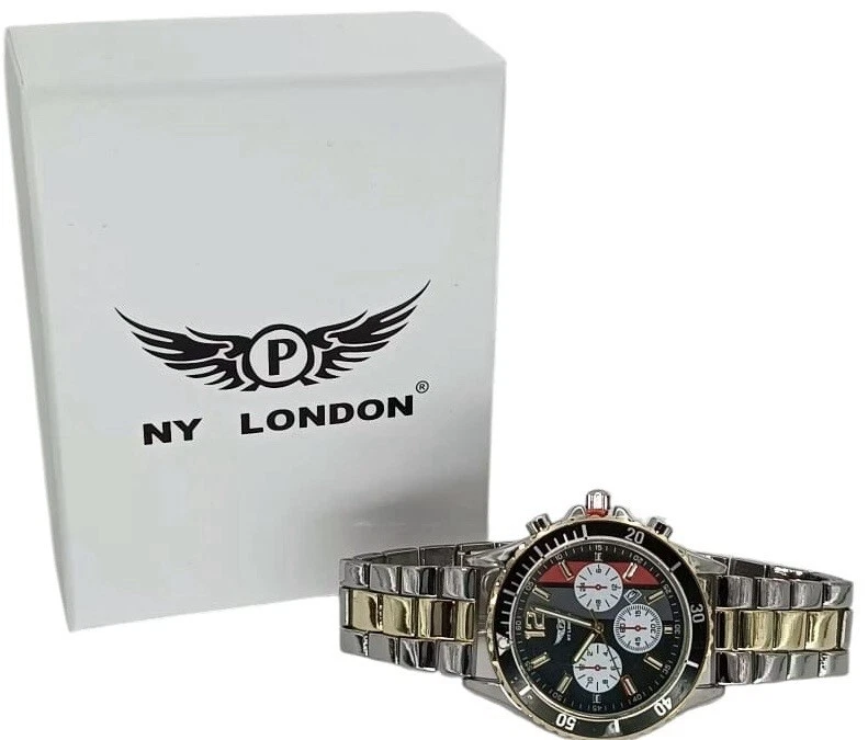 NY LONDON Gold & Silver WithFace Chronographs Dial Men Metal Strap Analog Quarts