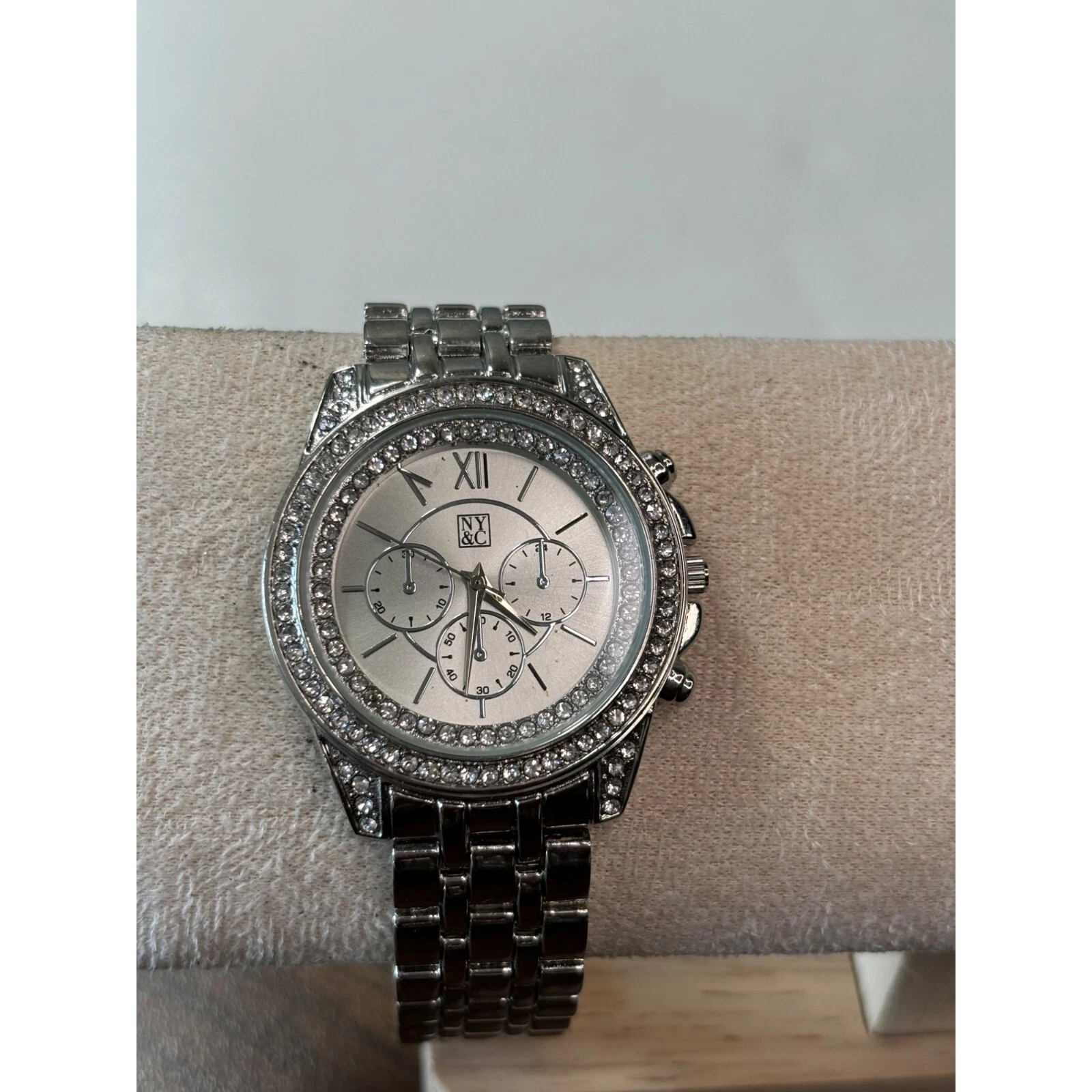 Women's NY&C Chronograph Watch Silver-Tone Stainless Steel Crystal-Accented Beze
