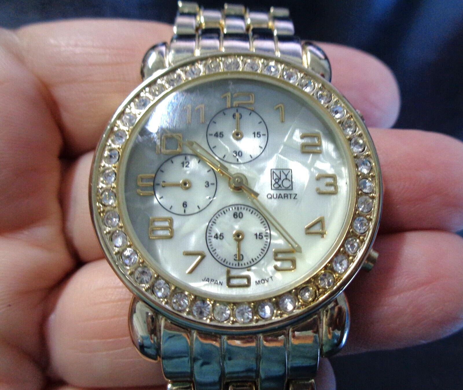 NY&C, Gold Tone, Rhinestones, MOP Dial, Women Watch.