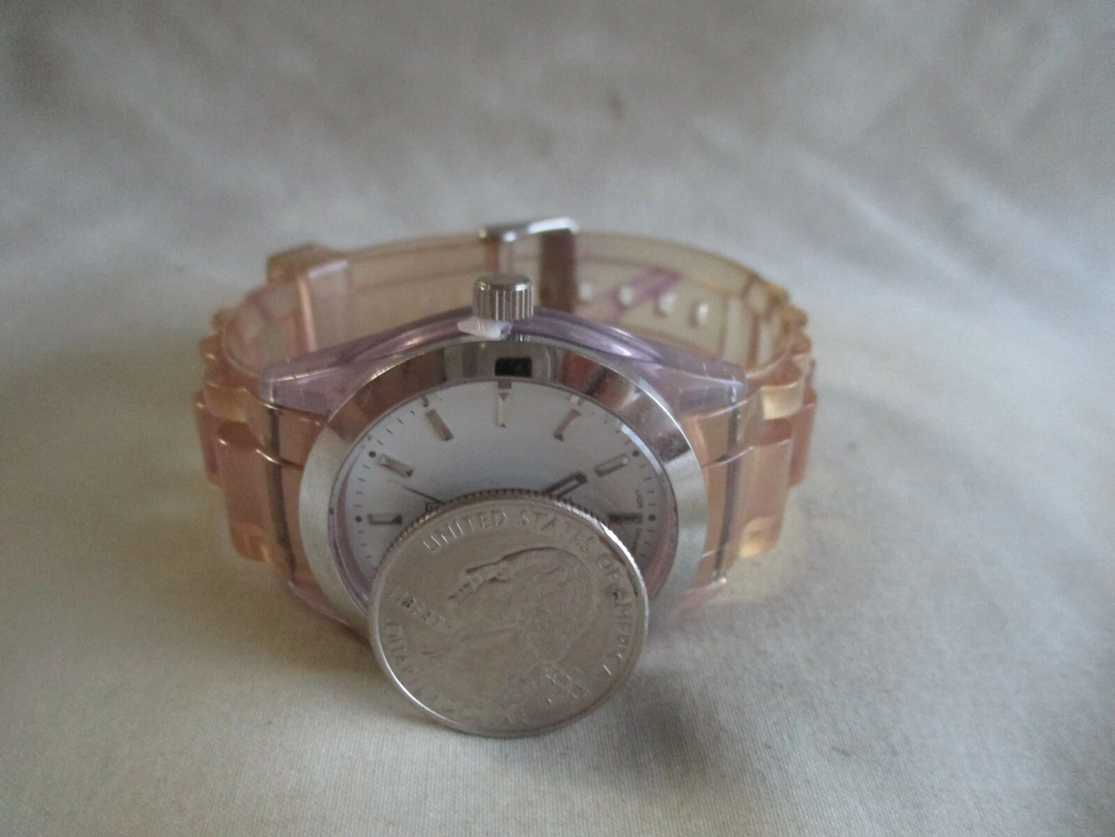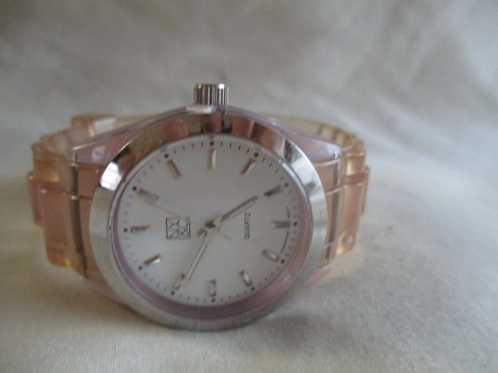 NY&C Wristwatch Pink Buckle Band Round White Face Silver Tone Stylish